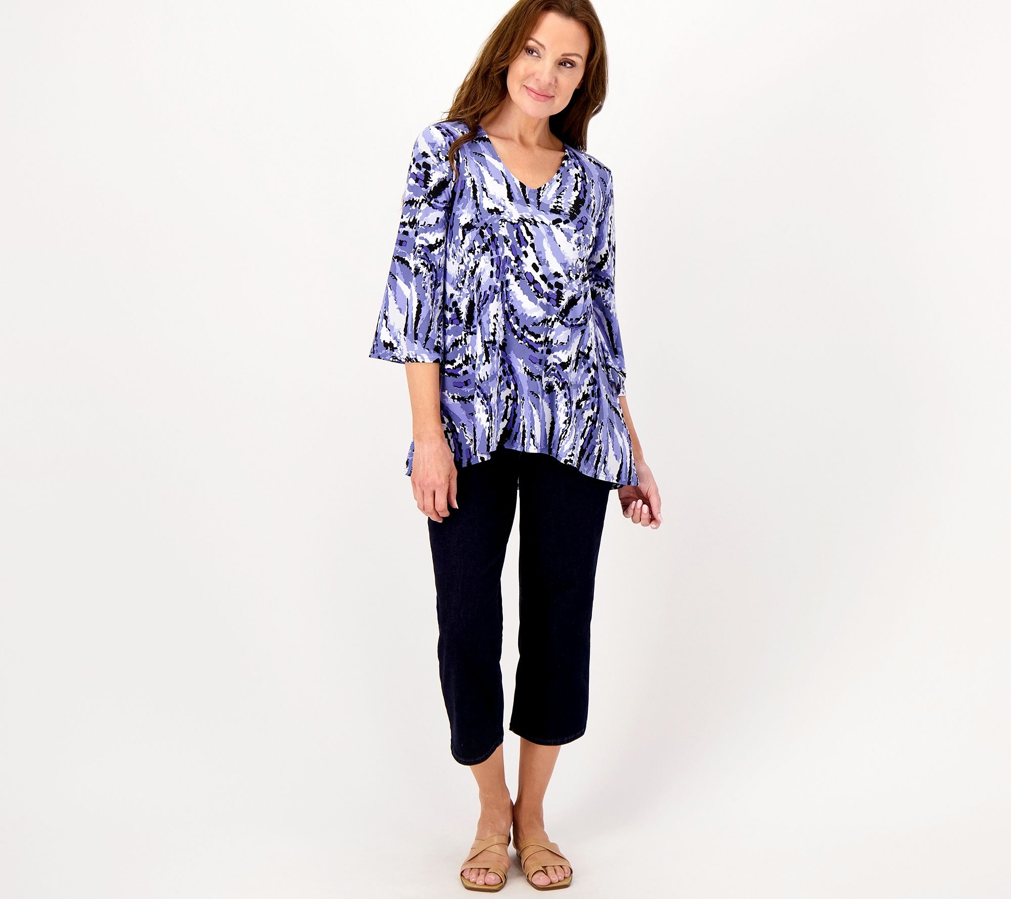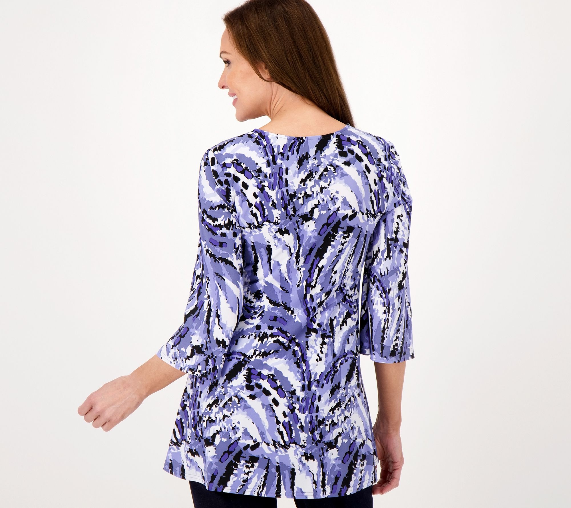 • Features: printed, 3/4-length sleeves, scoop neckline, high-low flare hem, on-seam pockets