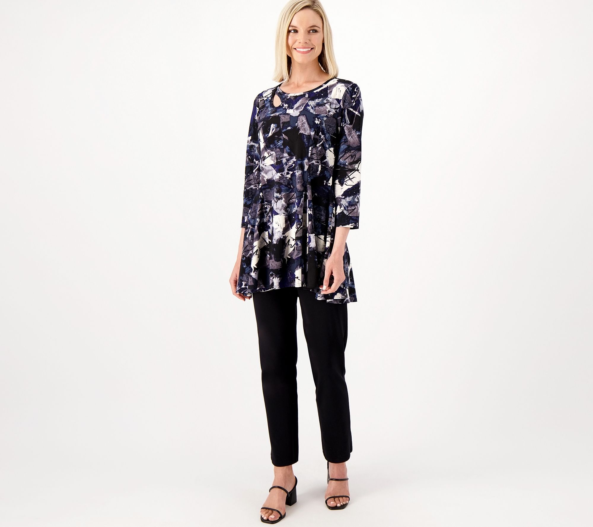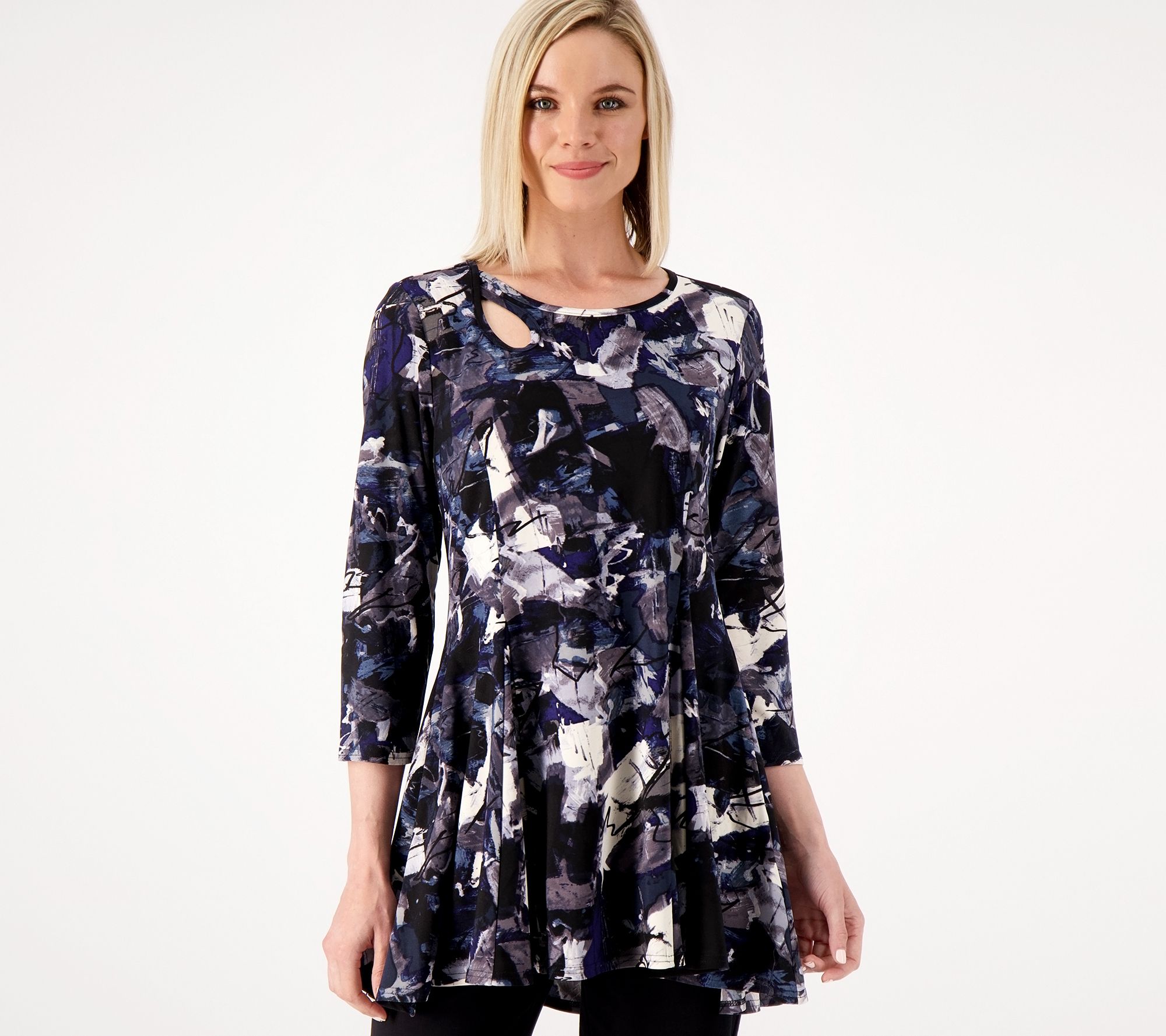 • Features: keyhole at right front neck, on-seam pockets, 3/4-length sleeves