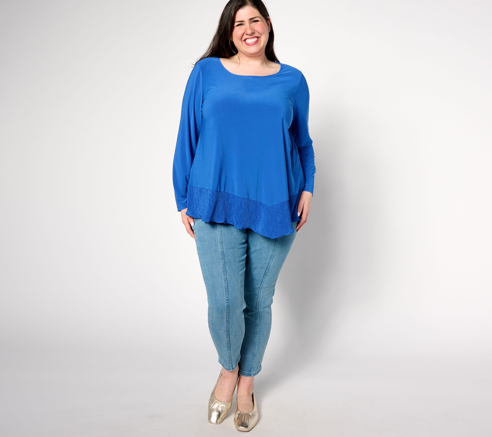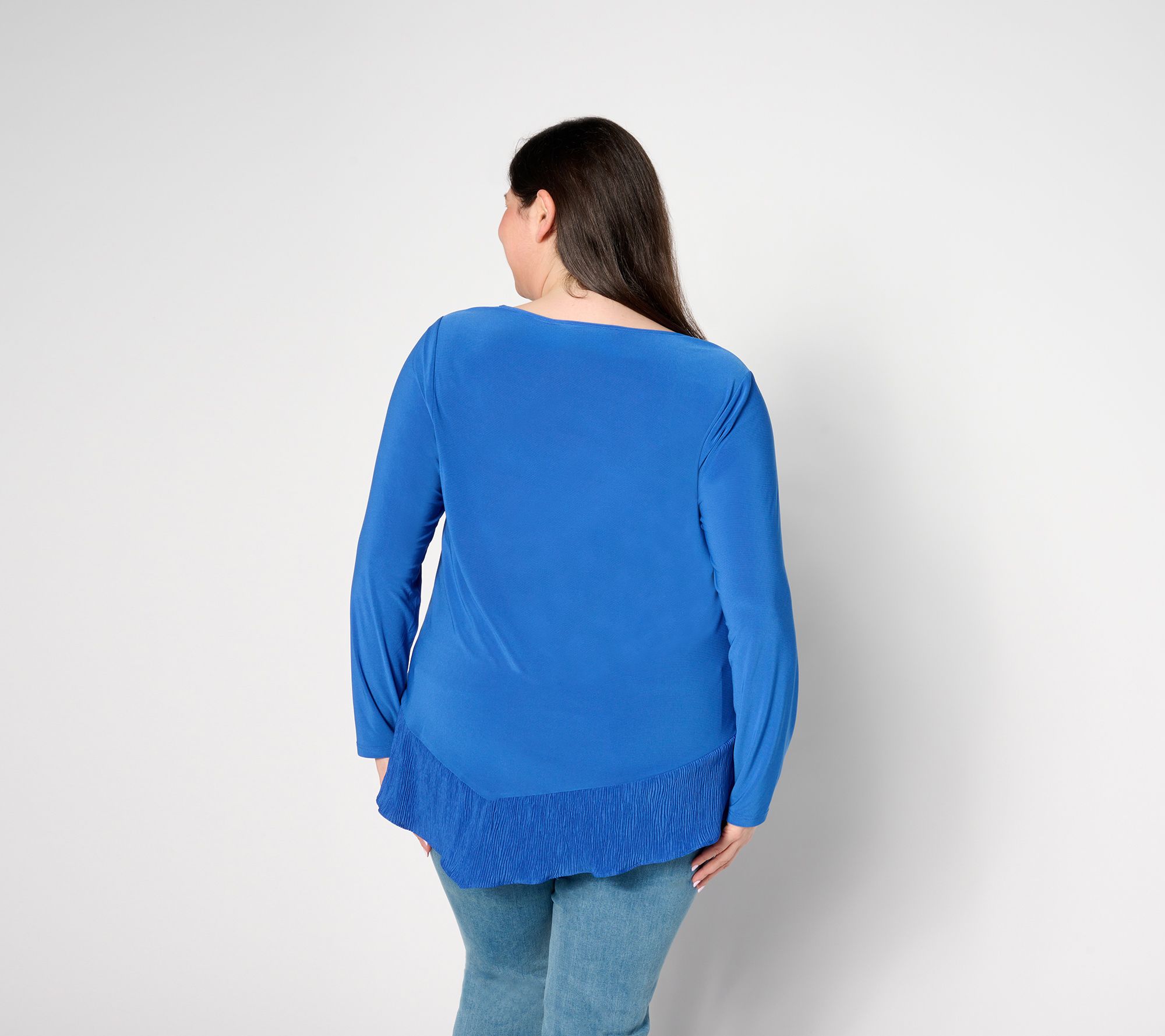 Made you look! A flowy pleated hem makes this Como Jersey mixed-media top as eye-catching as it is effortless to pair with any bottoms you please. From Women with Control®.