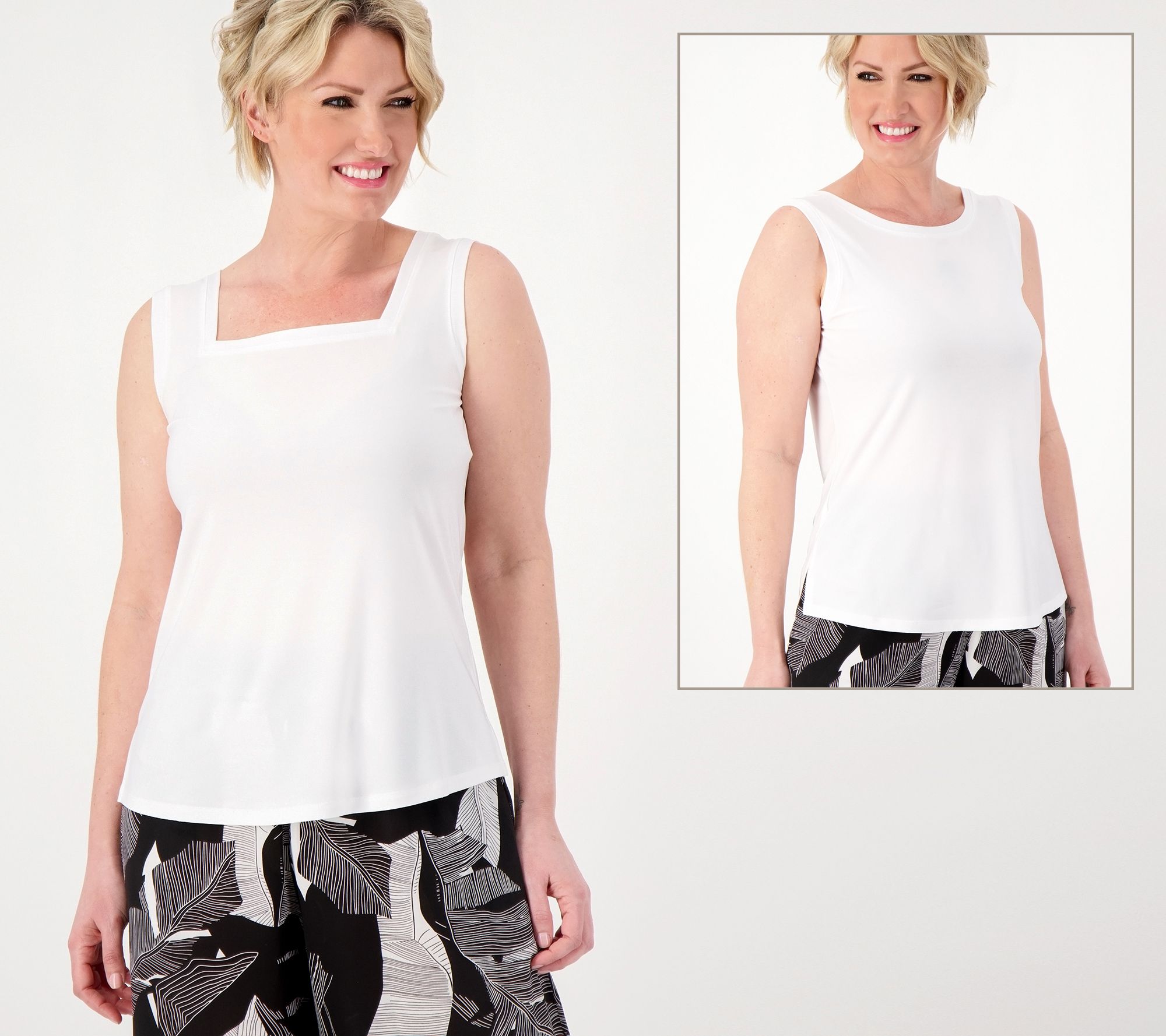 You'll flip for this two-in-one tank that adds versatility to your wardrobe basics. A layering essential, the reversible design has a scoop neckline on one side and a square neckline on the other. From Women with Control®.