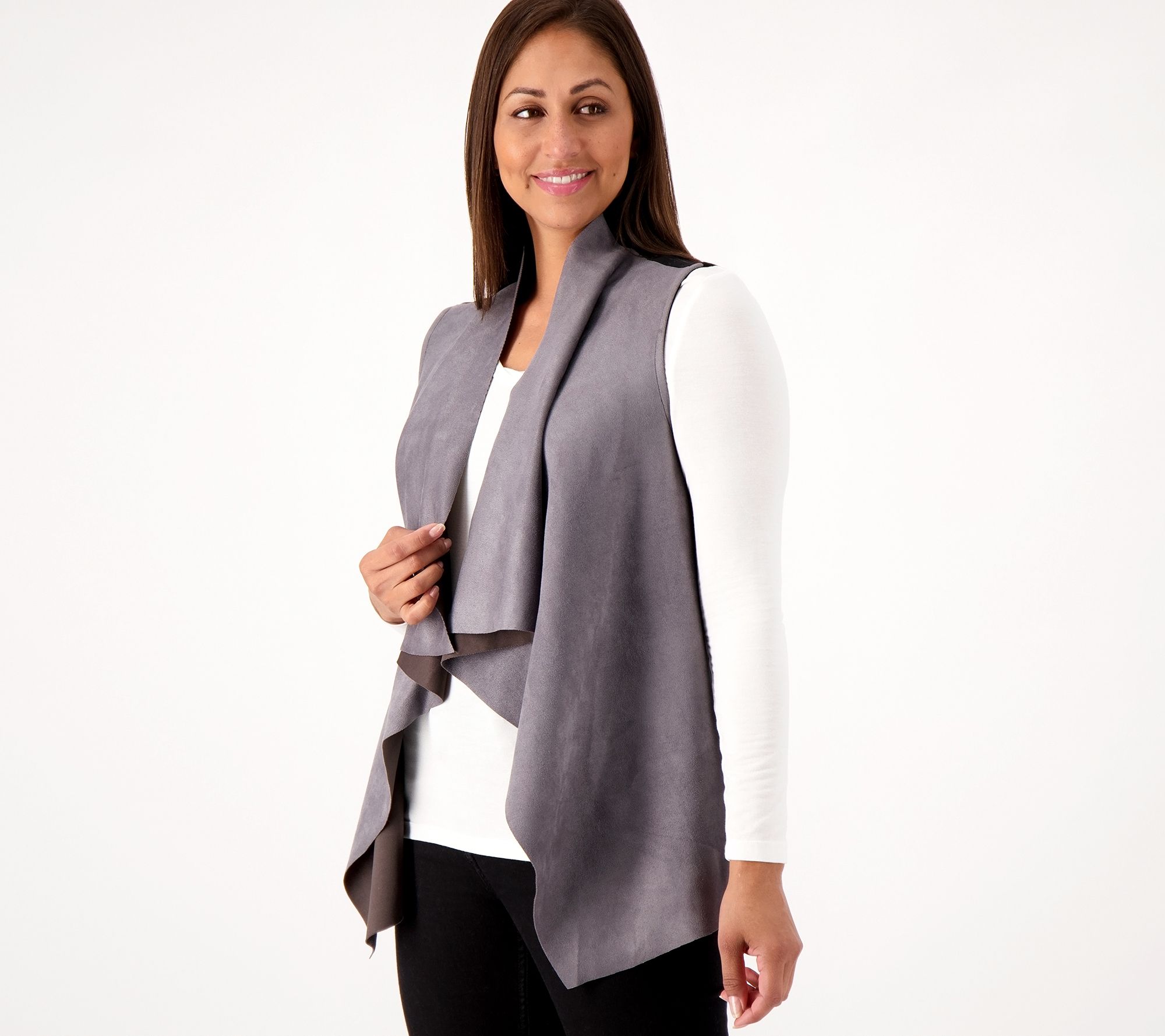 Yes, yes, yes. That's all we can say about this delightfully designed draped vest. We're pairing it over fitted turtlenecks and laid-back long sleeves all season long, for a finishing touch that brings on the style. (Add a pair of knee-high lace-up boots to win all the extra fashion points!) From Women with Control®.