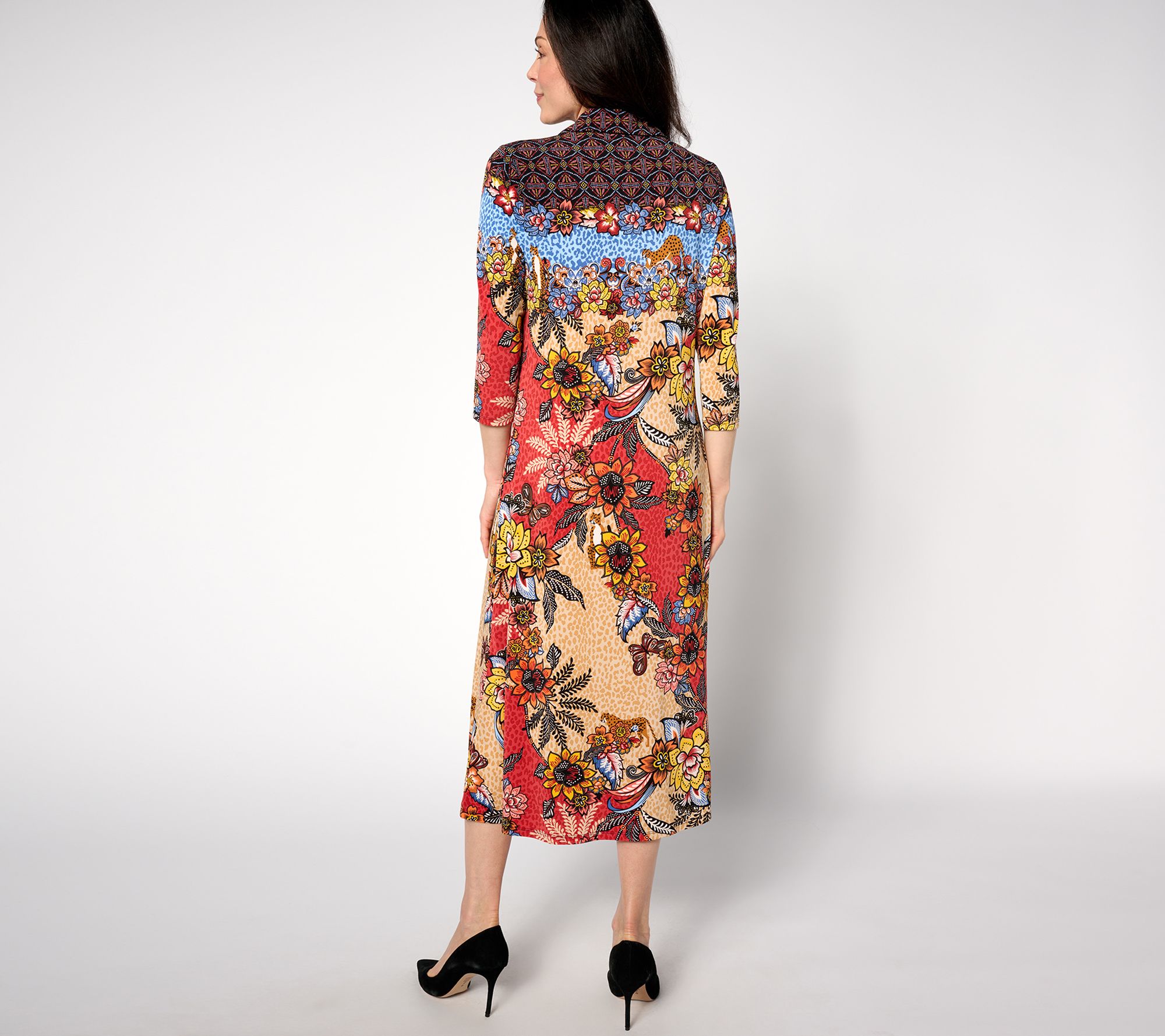 It's your day to make a statement. Work the room with this button-front border print dress and let 'em know who's boss. From Women with Control®.