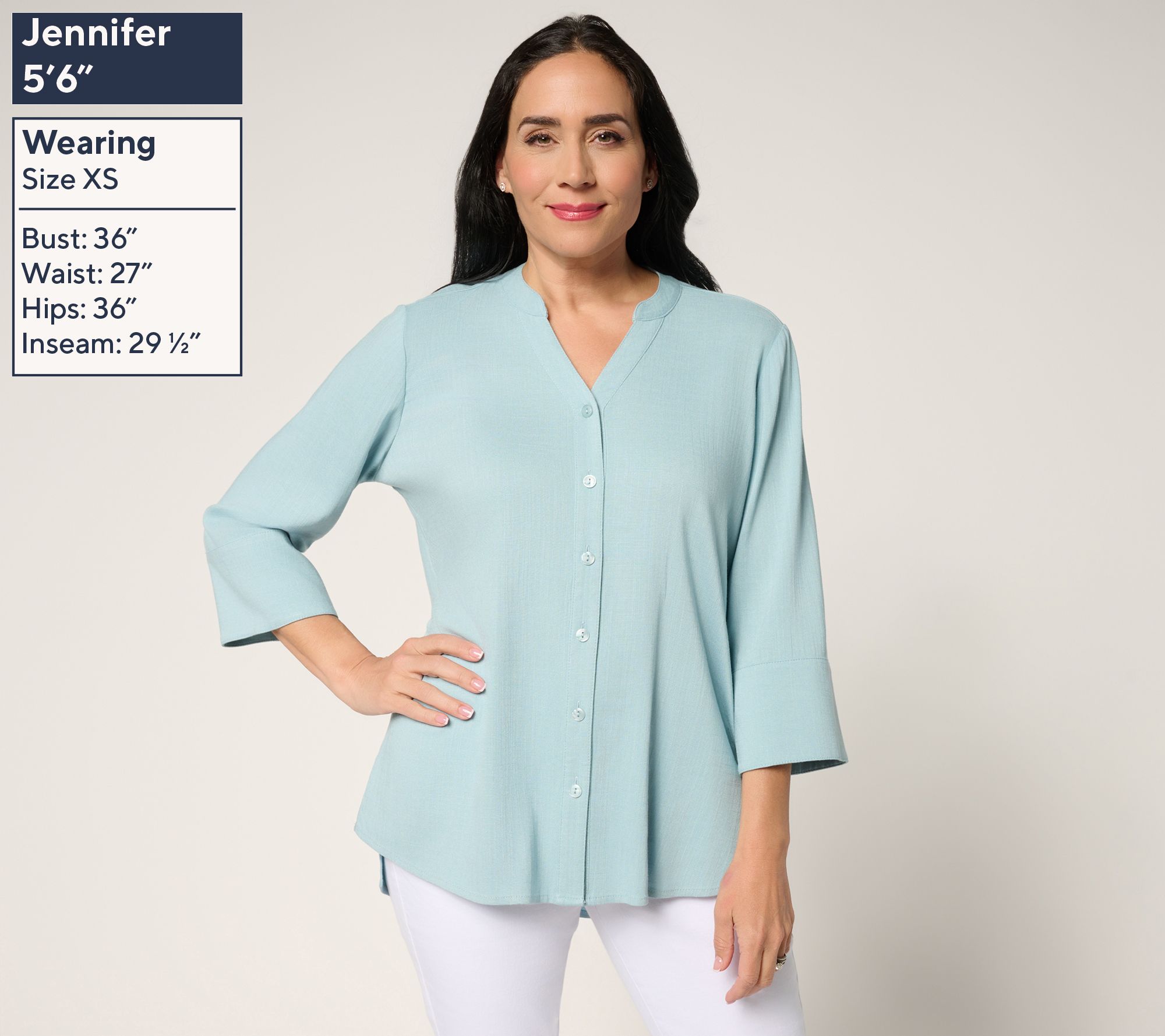 Freshen up your look with this stretch-woven button-front tunic, designed for easygoing days and crisp moments alike. The collar and cuffs add a tailored finish, while a separate placket and side slits deliver breathing room and subtle sophistication to your outfit rotation. Pair it with slim pants for a polished vibe or keep it casual with jeans and flats. From Women with Control®.