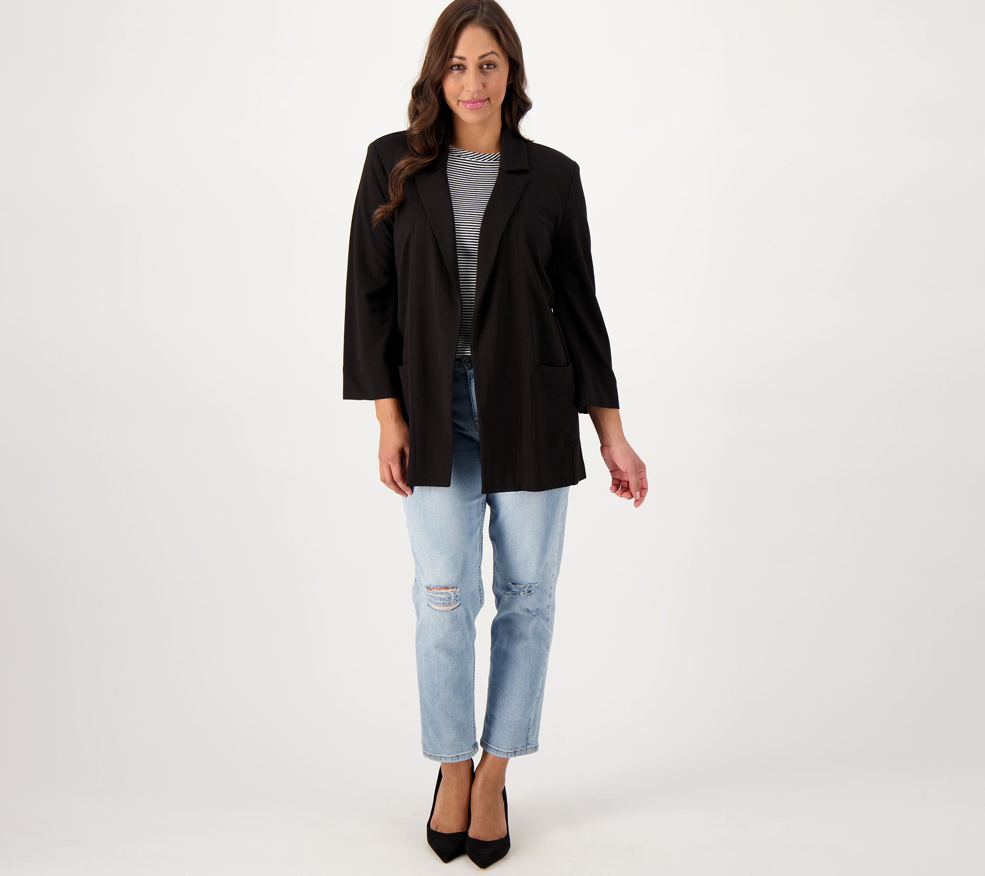 Once you experiment with all the chic ways to wear this relaxed girlfriend blazer -- over jeans and a simple tee, with wide-leg pants and a pretty blouse, or coupled with a knit dress -- you won't want to leave home without it. From Women with Control®.
