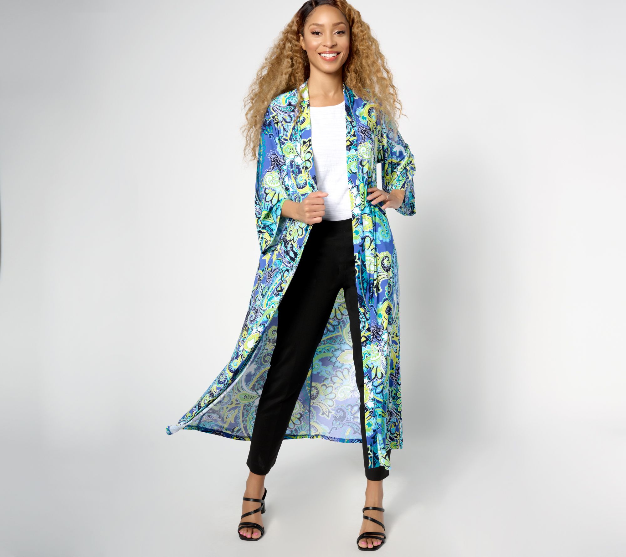 Layer this vivacious Como Jersey duster over all your closet basics for that life-of-the-party look. From Women with Control®.