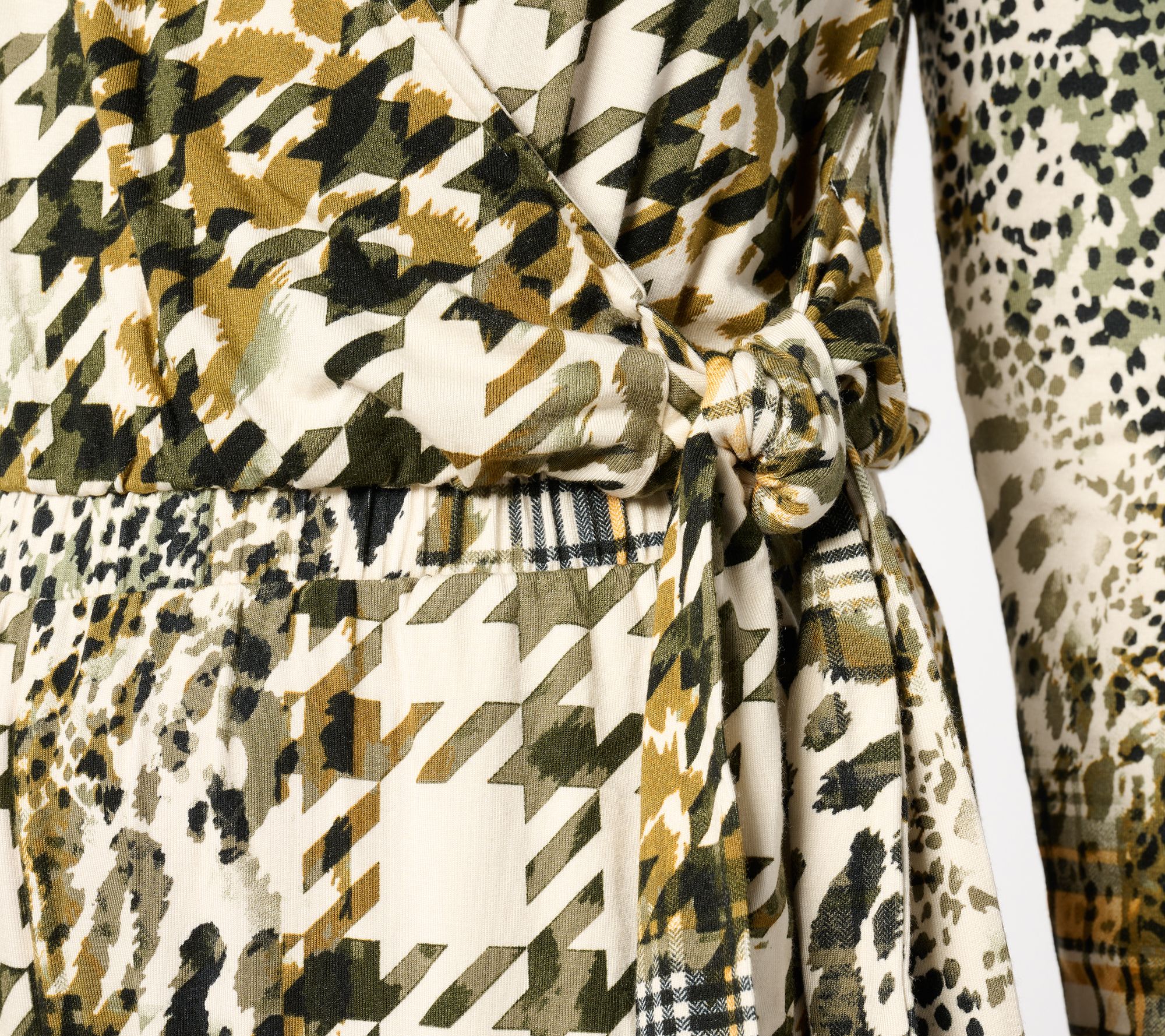 • Features: long sleeves, V-neckline, wrap design