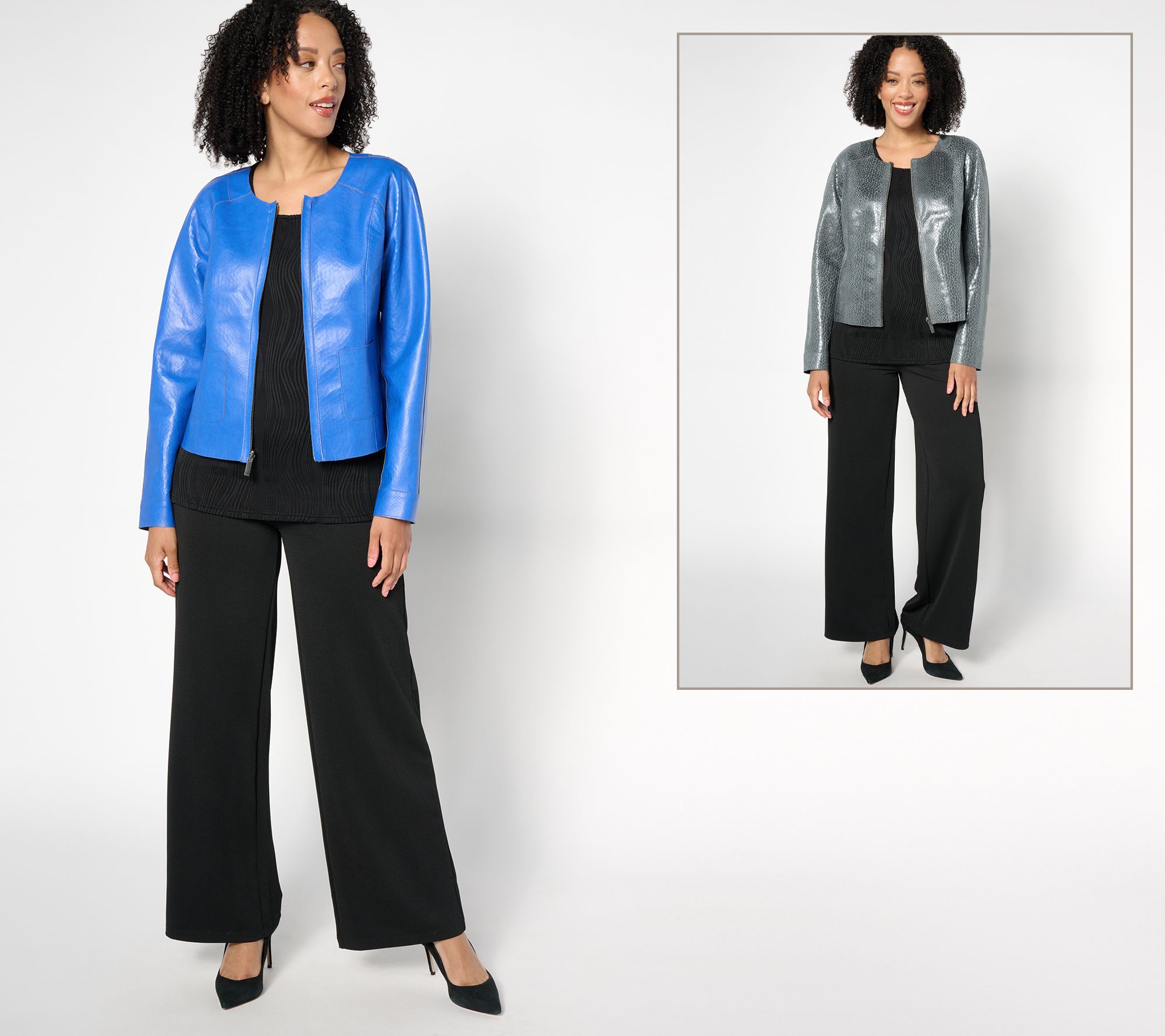 There's more than one side to your personality (and your style) -- this faux-leather Renee’s ReversiblesTM jacket follows suit! Sport the solid-colored side over vibrant prints and textures, then let the reverse foiled animal embossing shine over everyday closet neutrals, popping the sleeve cuffs for some cool (or spicy) contrast as needed! From Women with Control®.