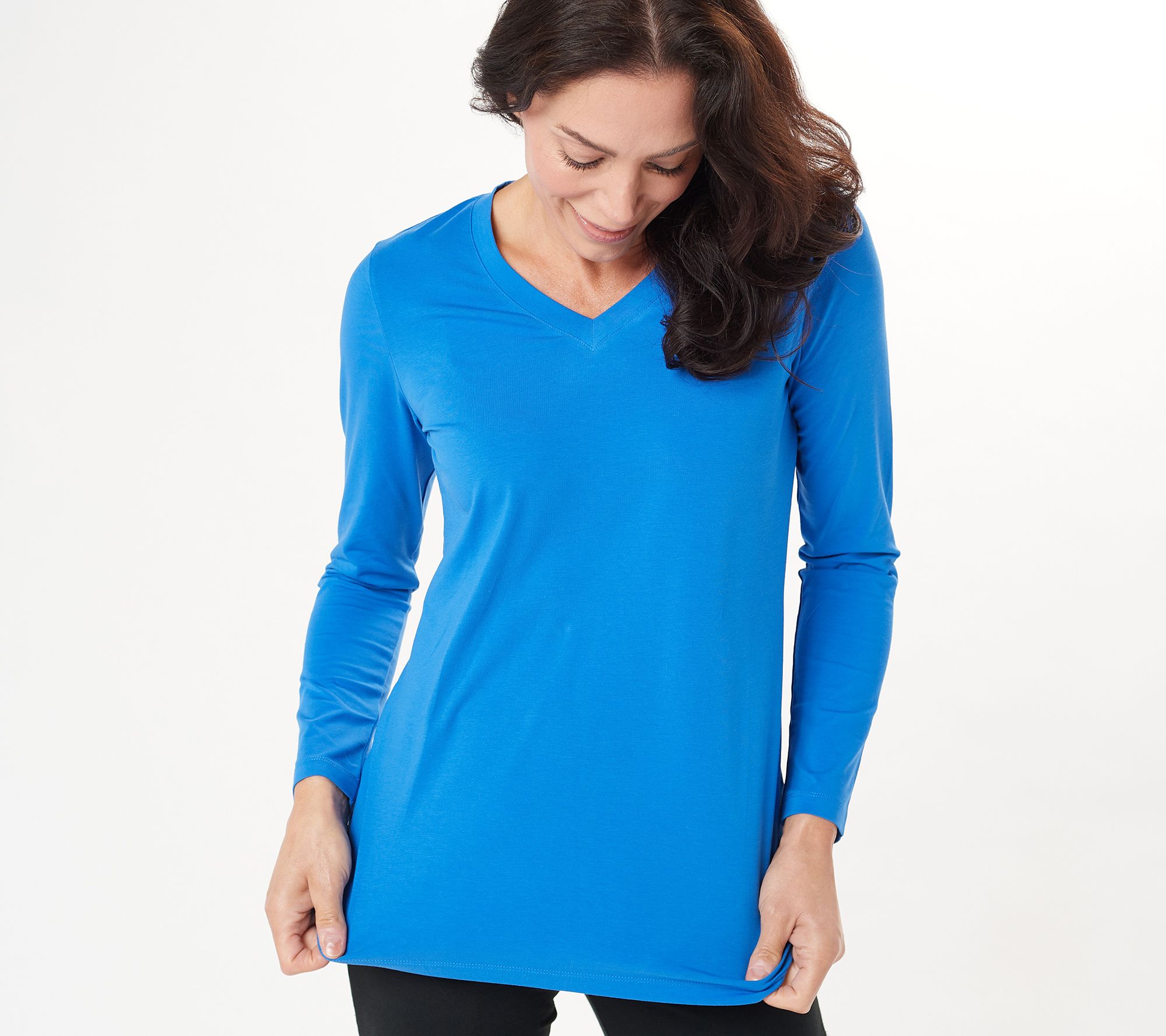 From running errands to dinner parties at home, this smooth and stretchy washed jersey V-neck shirt works as a great foundation for layering or a standalone top. From Women with Control®.