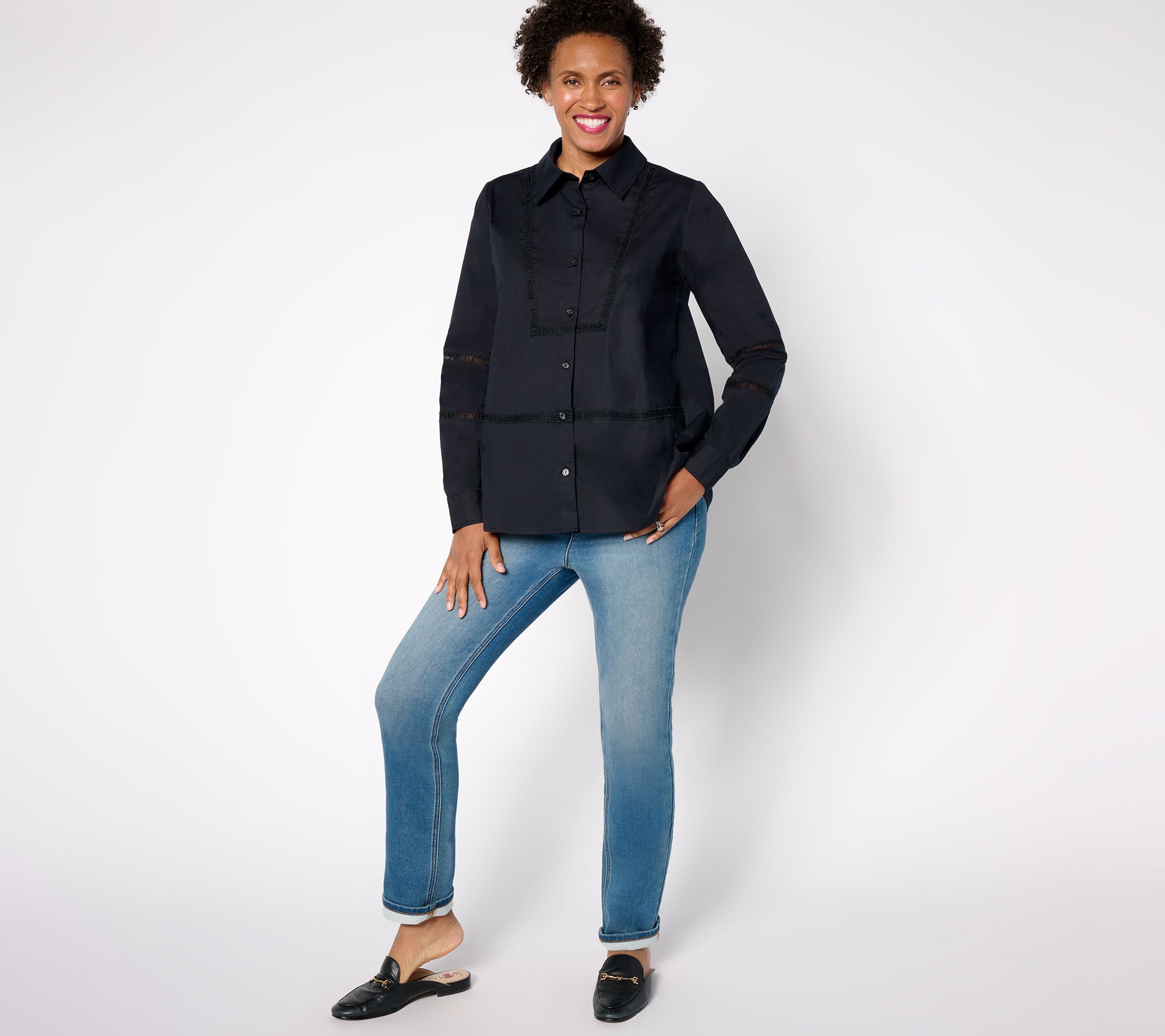 Lace up and go in this versatile button-front! The relaxed, no-need-to-tuck design is as charming with denim and fashion sneakers as it is ponte trousers and heels. From Women with Control®