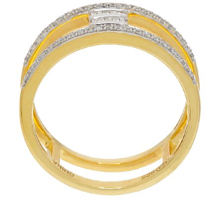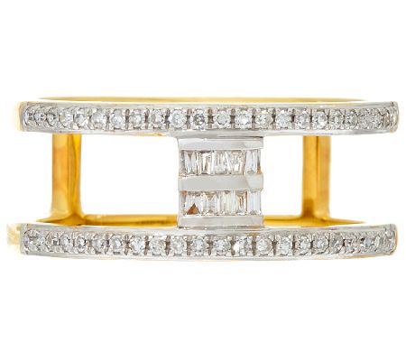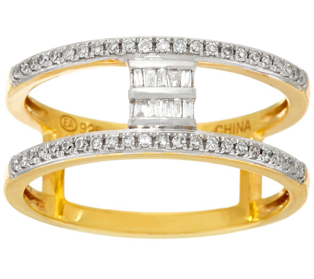 Find your center. This stunning sterling silver ring from Affinity boasts a beautiful center bar adorned with channel-set, baguette-shaped diamonds. Two open rows of round, pave-set diamonds complete the design to perfection on this polished beauty. From Affinity(R) Diamond Jewelry.