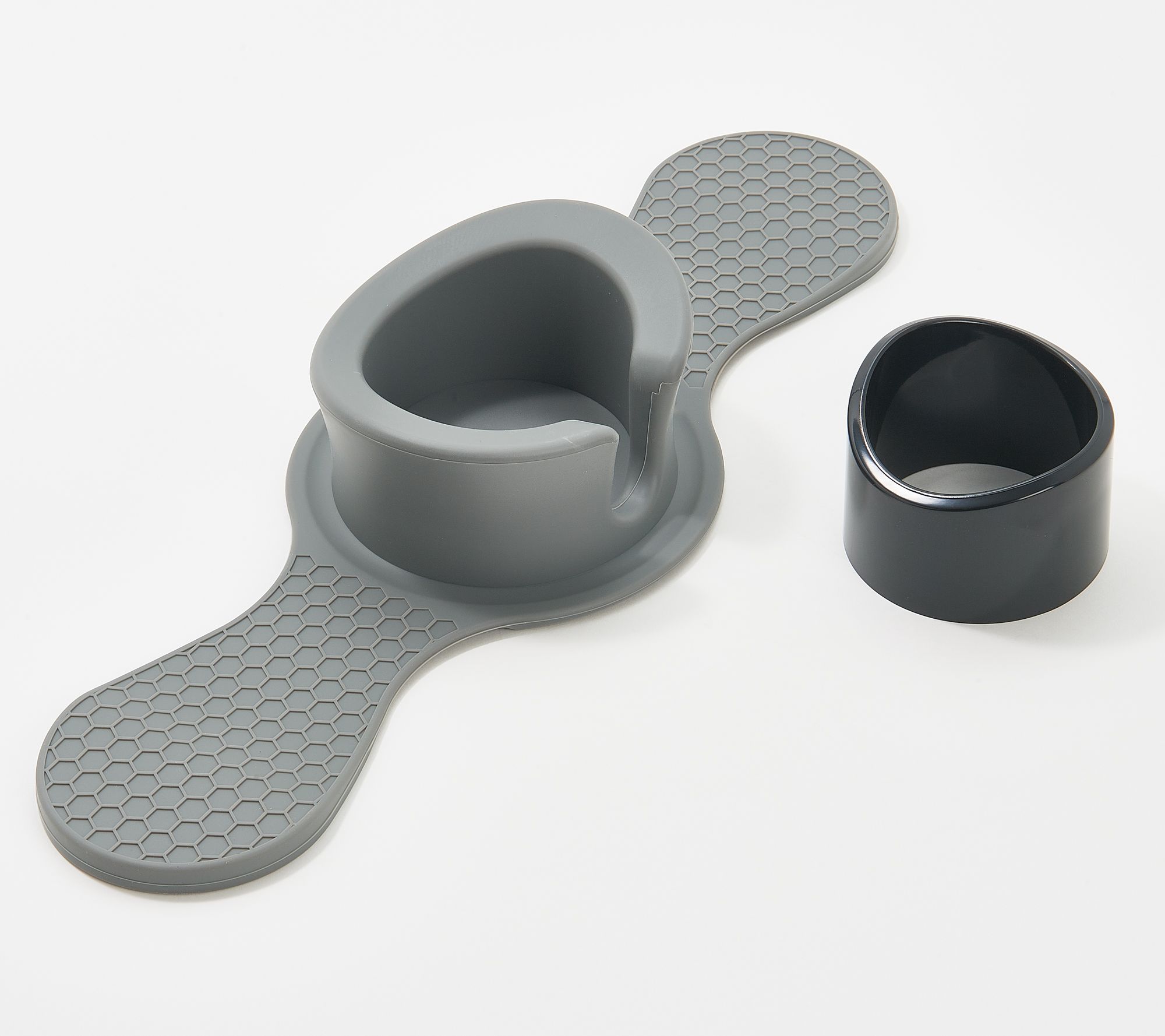 • Flexible silicone base with cup holder