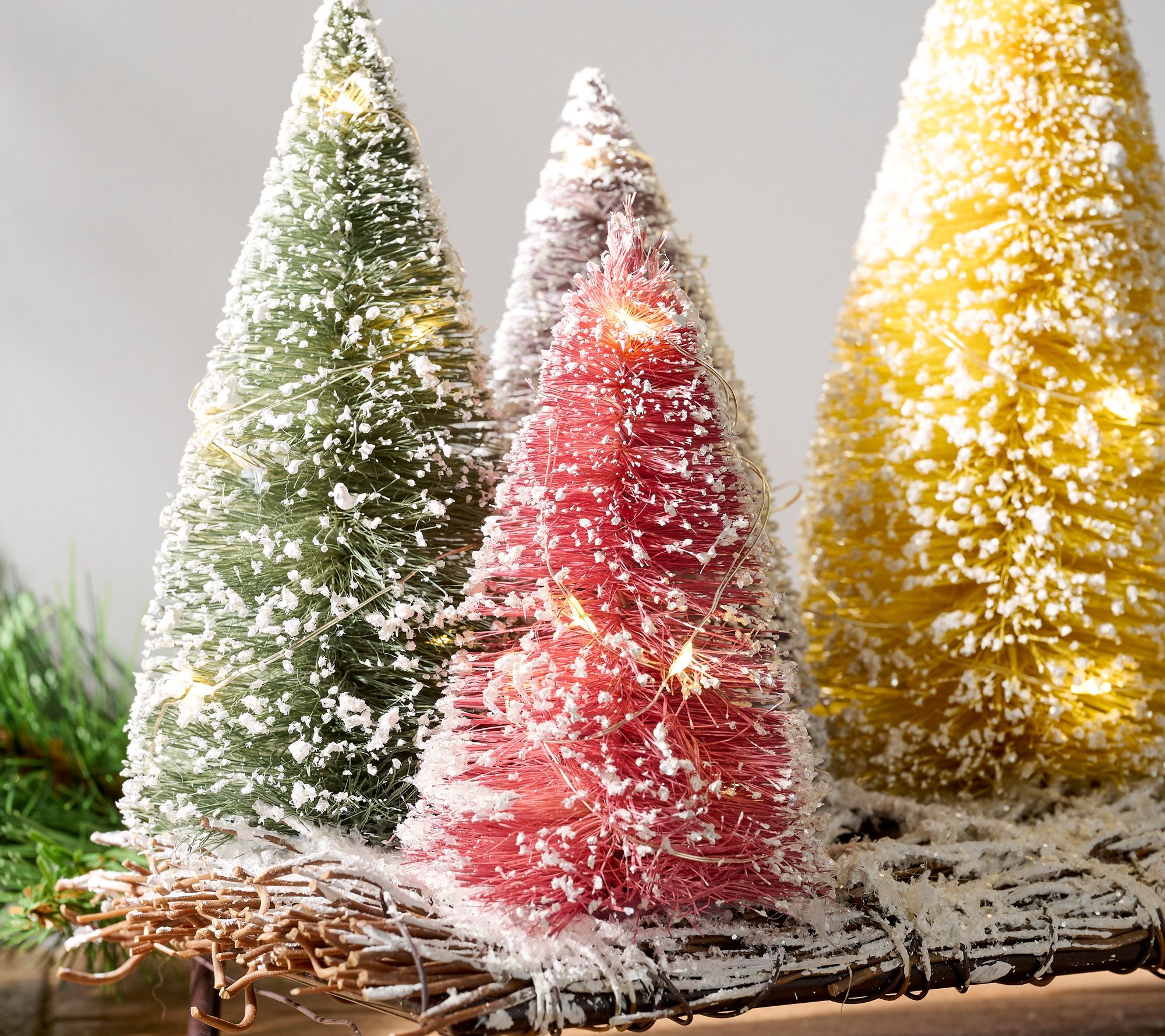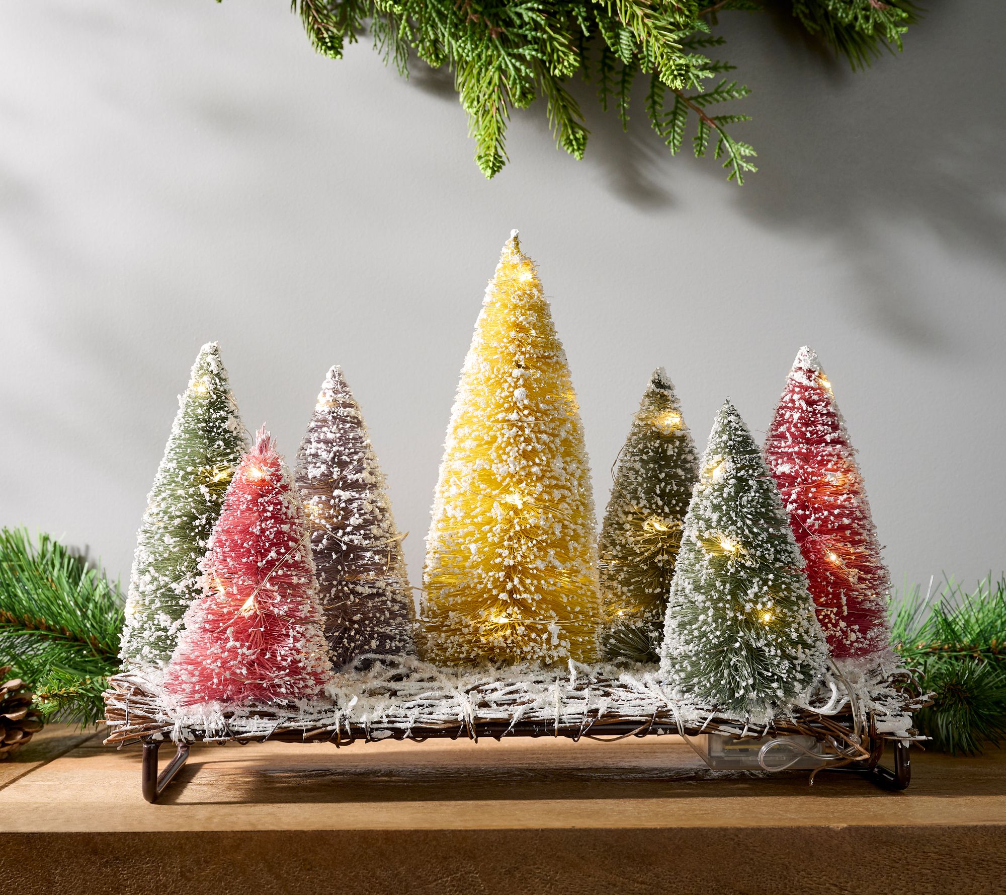 Whether placed on a mantel, dining table, or coffee table, this bottle brush tree collection is a whimsical addition to your holiday home. The string lights add a warm, inviting glow. From Barbara King.