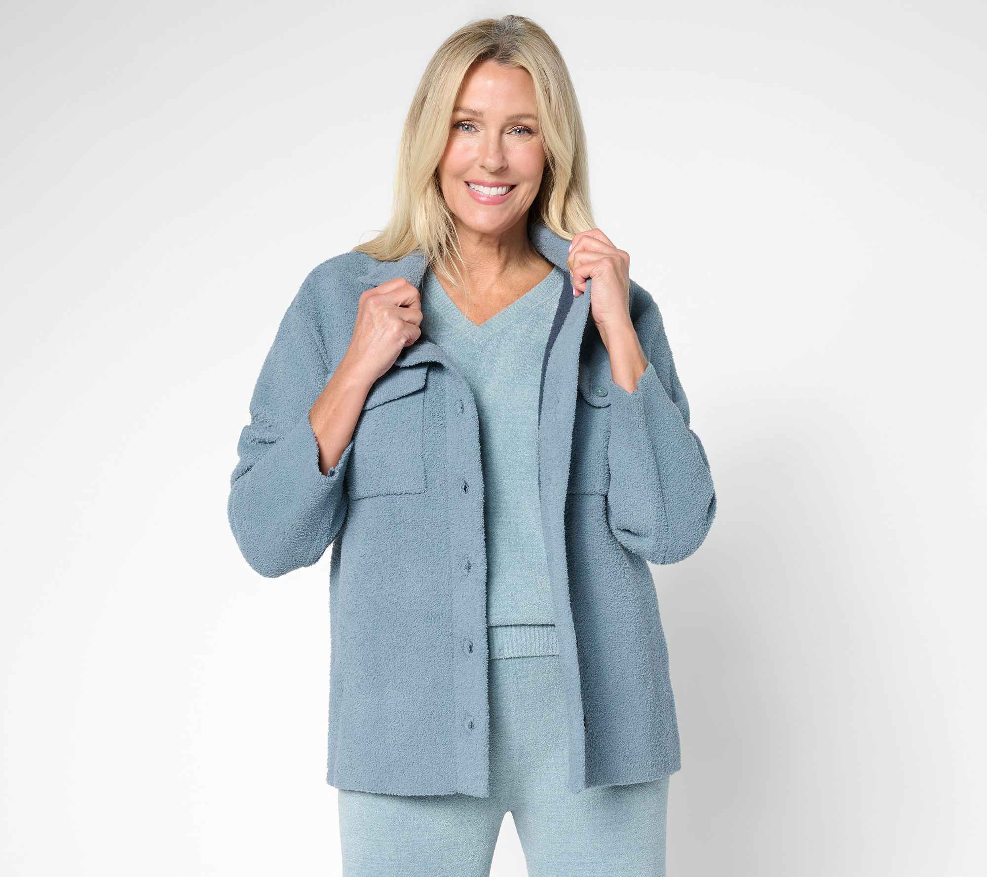 Arrive at your next outing ready for cooler temps with this double-knit jacket, effortless for layering over everything from fitted tees to casual sweaters. The button-down front, relaxed fit, and soft collar make it easy to pair with your favorite jeans, while handy chest pockets add functional style for errands or travel days. From Barefoot Dreams.