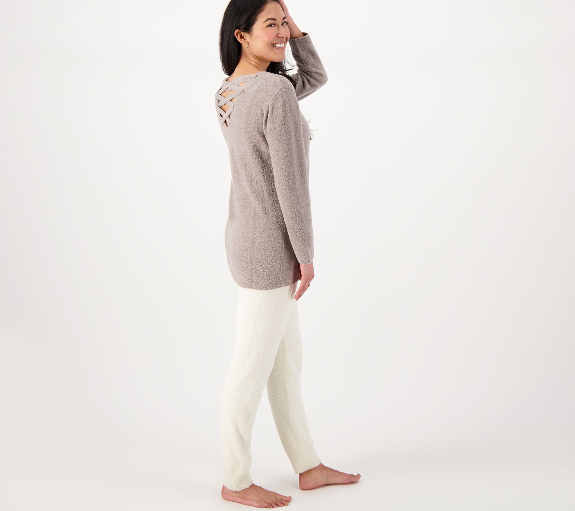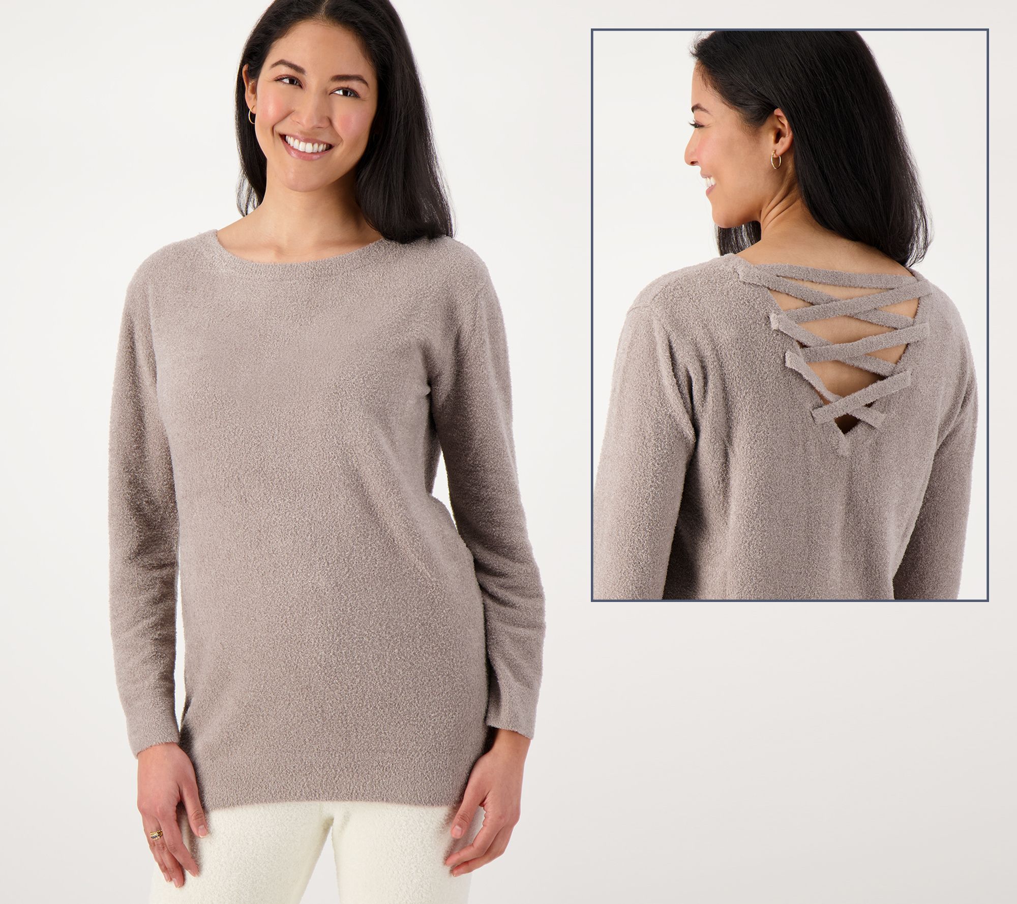 It's a total party in the back moment with this laced-up pullover in multi-season CozyChic Lite. Feminine, fresh, and so flattering, it instantly elevates dressy-ish days and casual days alike. (Layer over a sporty bra or crop top for even more edge!) From Barefoot Dreams.