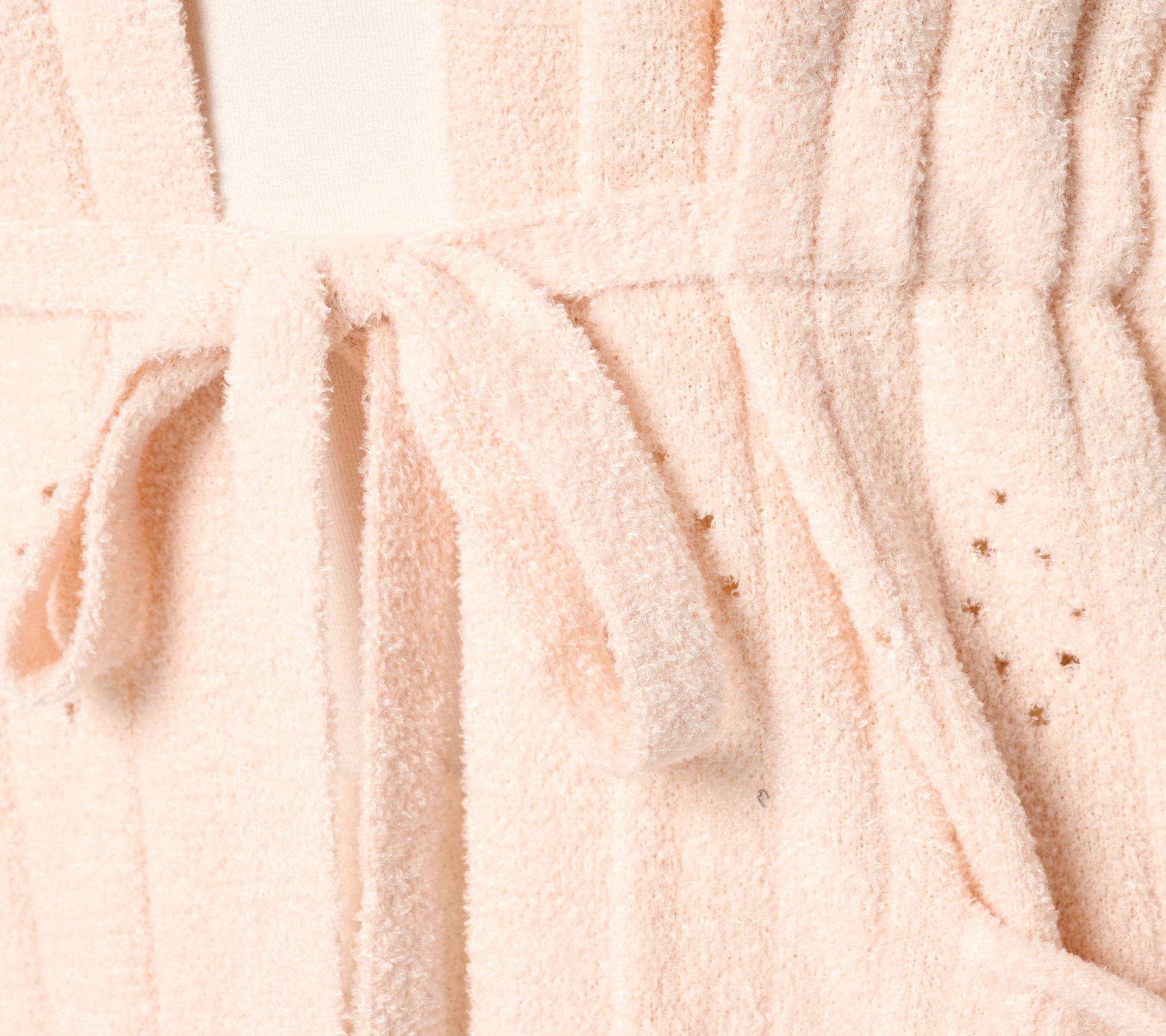 • Features: long sleeves, patch pockets, encased drawstring waist, pointelle detailing throughout body, ribbed sleeves