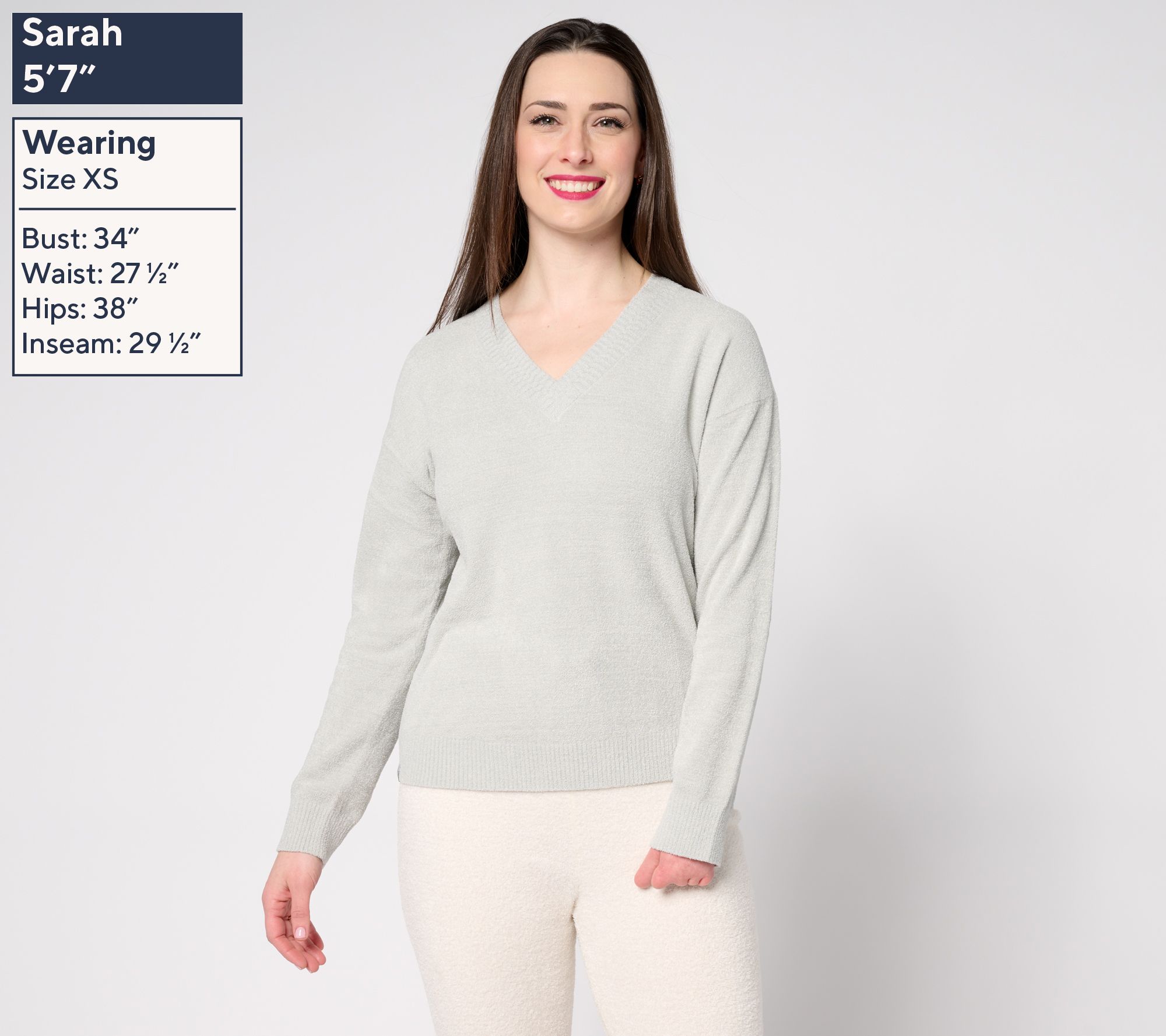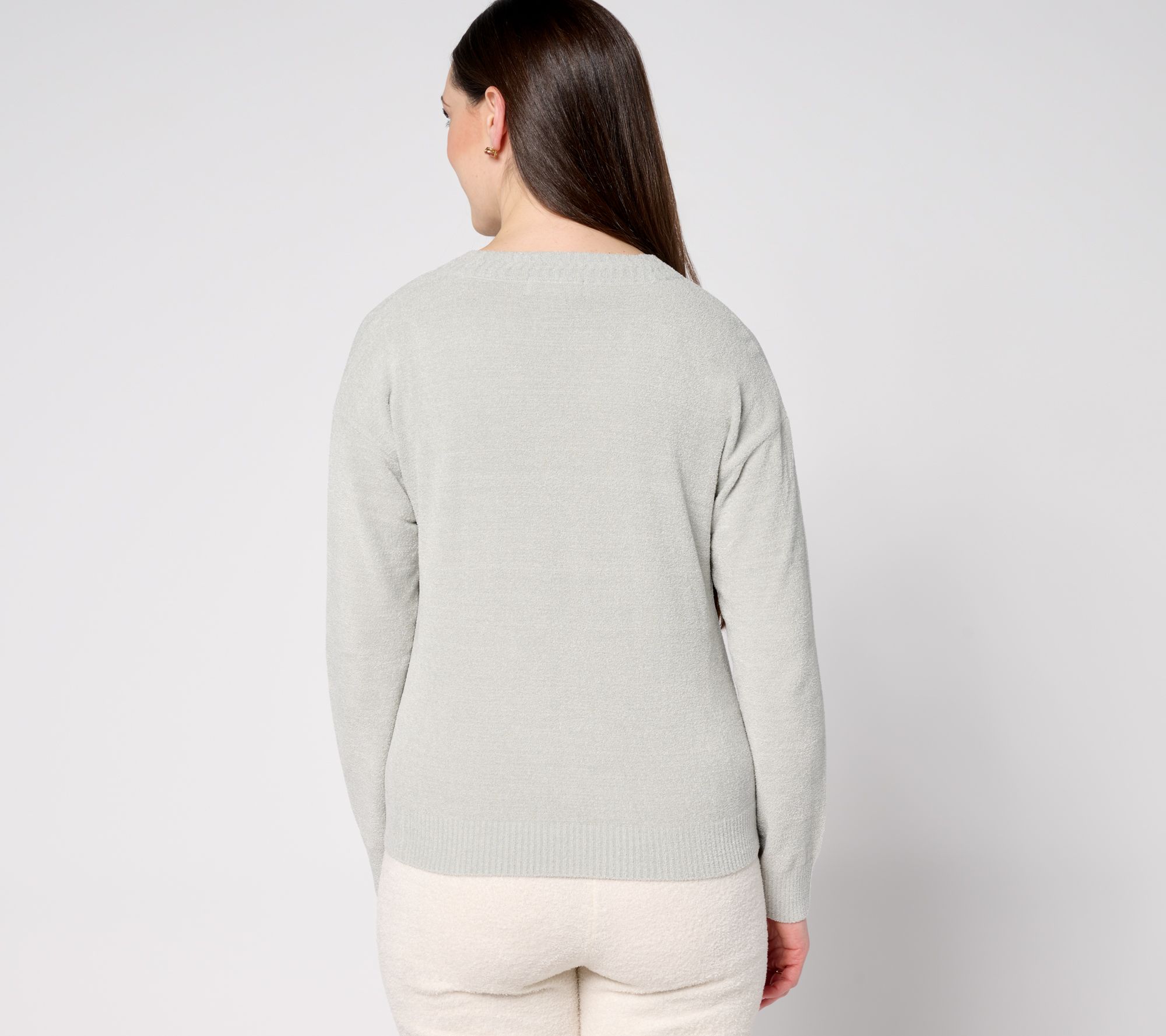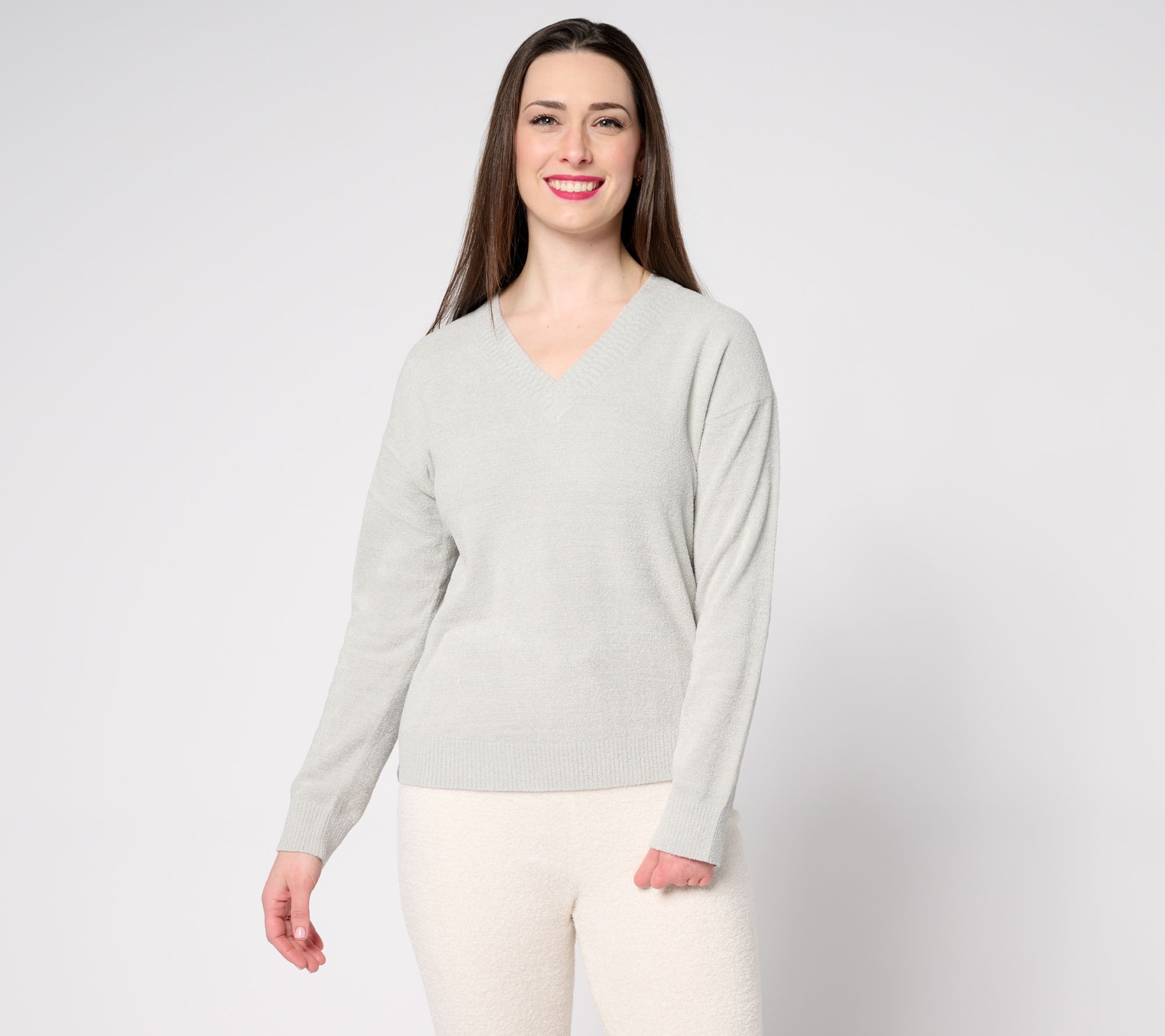 A few minutes to enjoy your coffee on the porch. An afternoon by the ocean with kids or pets. A dinner date. Feel cared for and cozy through every moment of life in this CozyChic Ultra Lite sweater. Chevron texture along the V-neckline updates the classic, easygoing silhouette. From Barefoot Dreams.