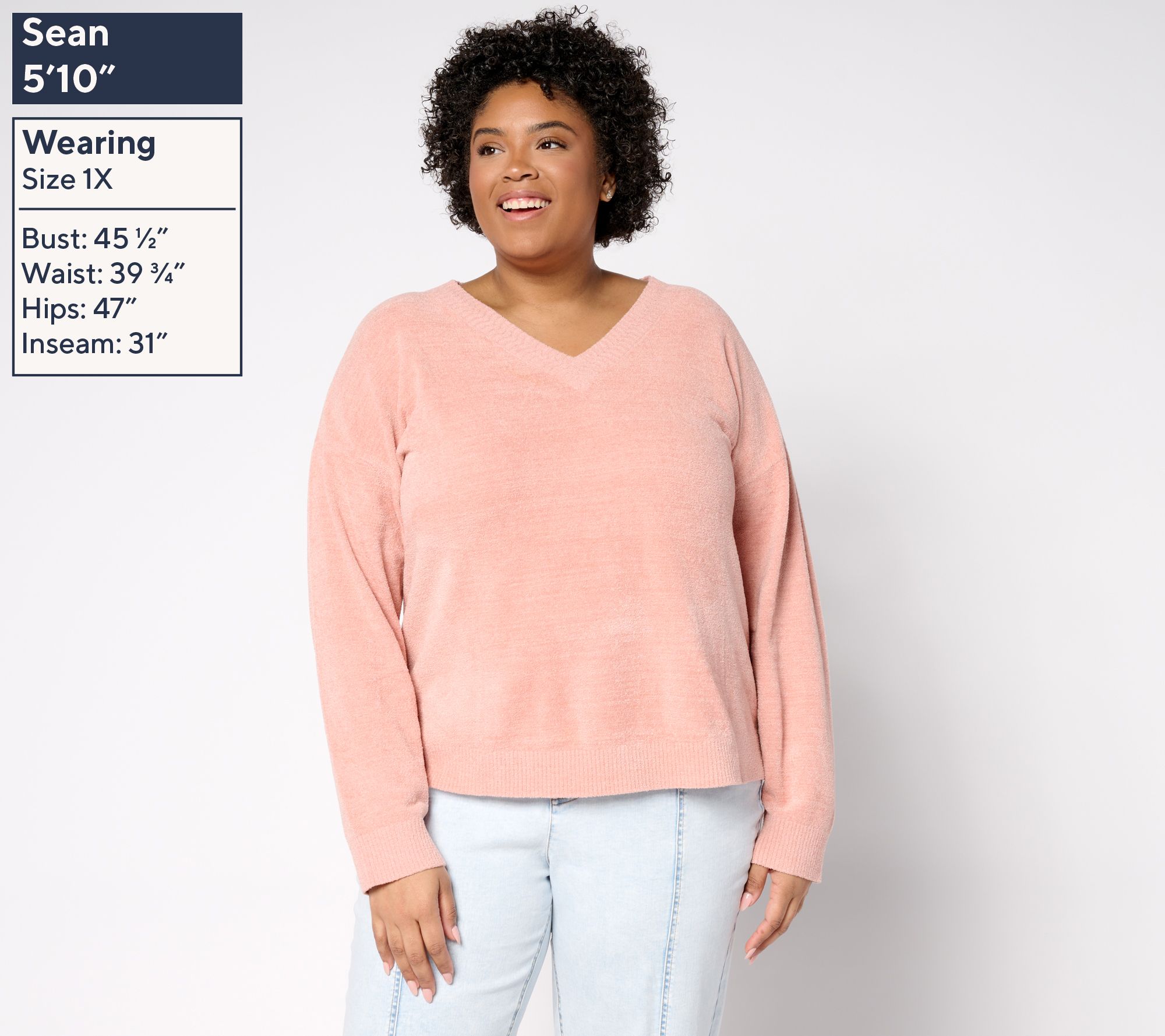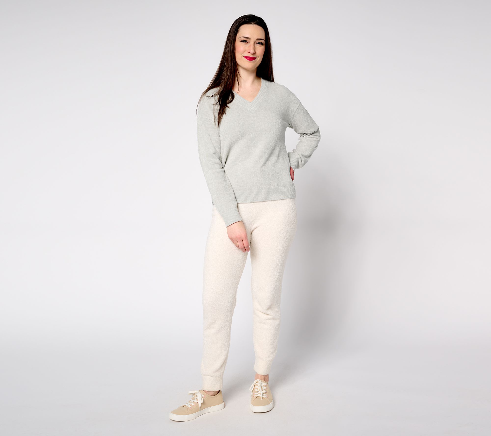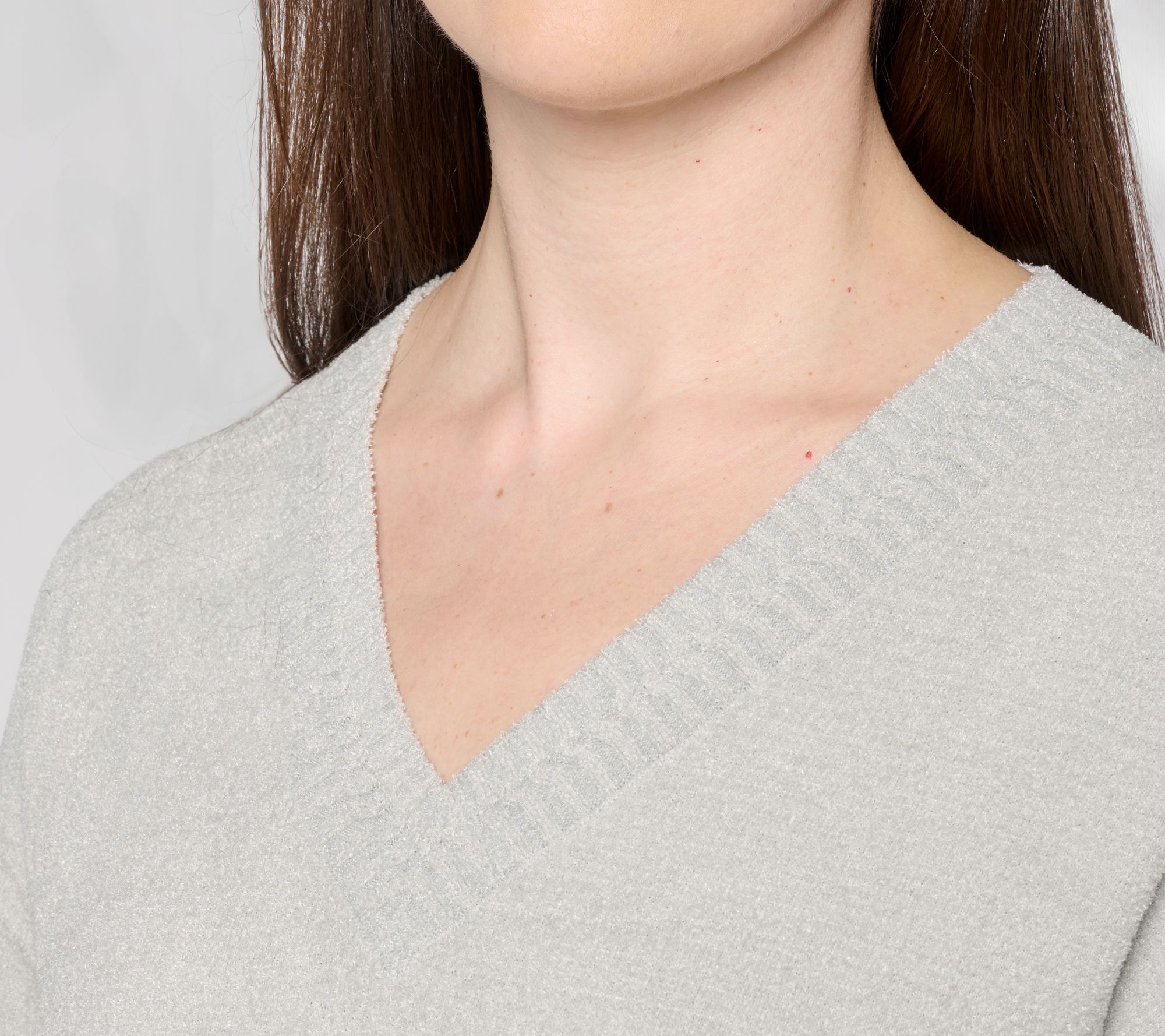 A few minutes to enjoy your coffee on the porch. An afternoon by the ocean with kids or pets. A dinner date. Feel cared for and cozy through every moment of life in this CozyChic Ultra Lite sweater. Chevron texture along the V-neckline updates the classic, easygoing silhouette. From Barefoot Dreams.