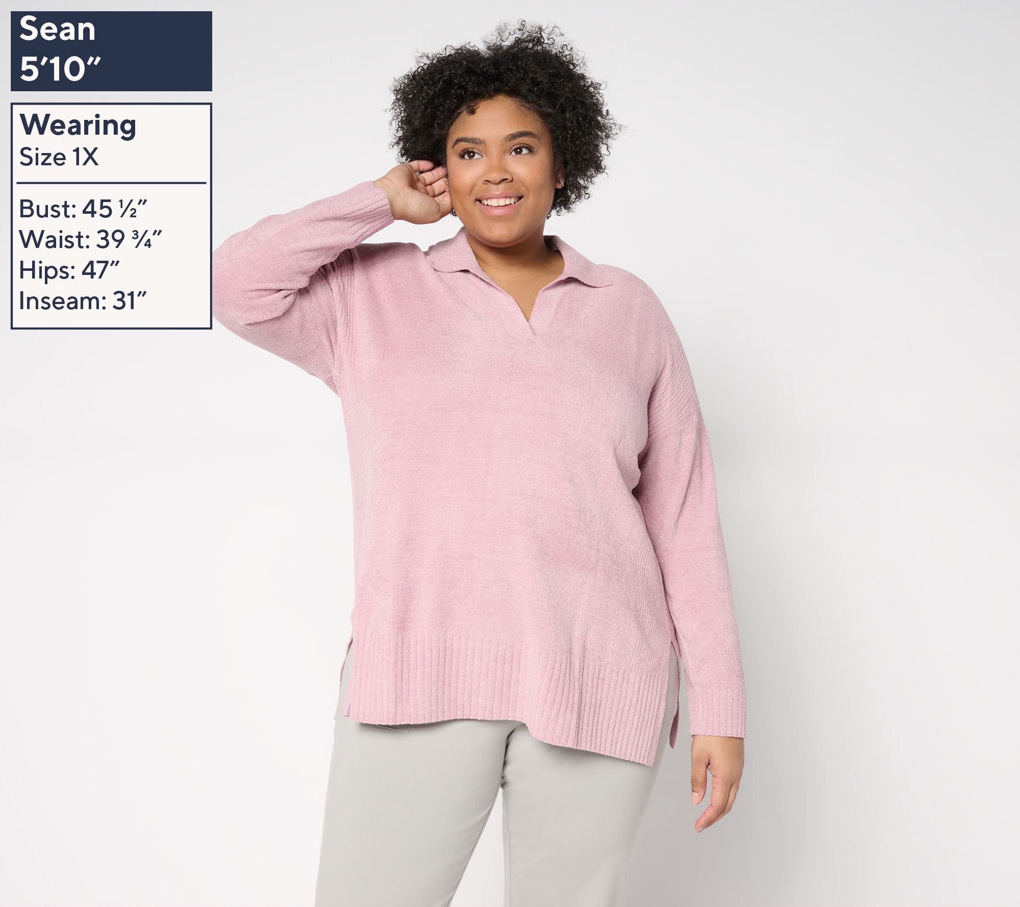 • Features: pullover style, collar with open placket, side slits, rib details