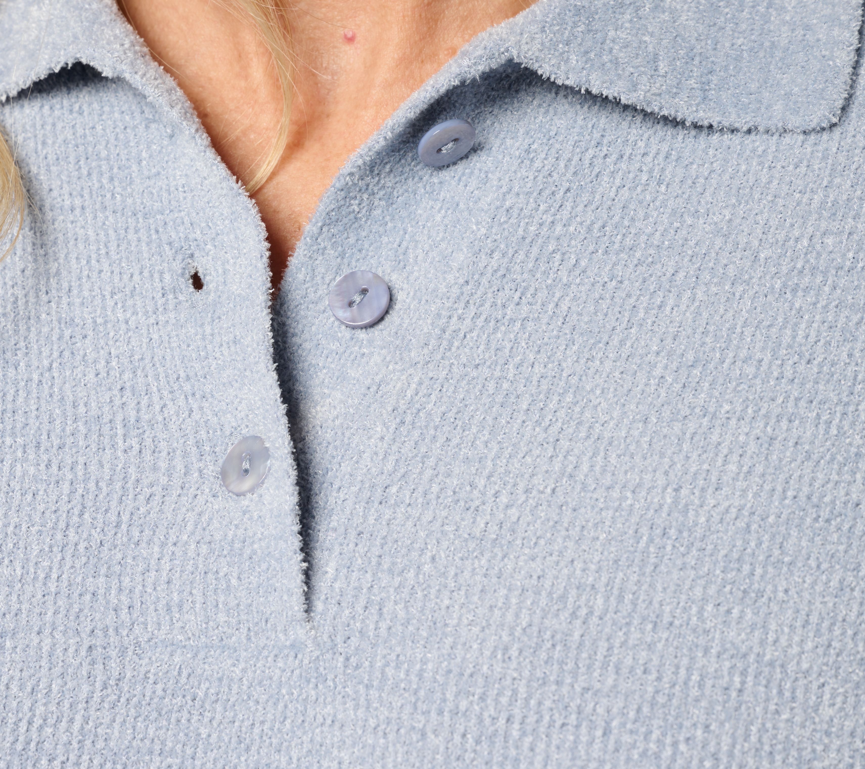 Effortlessly chic and irresistibly comfortable, this collared rib pullover is the perfect addition to your casual closet. Whether you're lounging at home or stepping out for a laid-back coffee run, its relaxed fit and plush knit make it a delightful choice for cool, cozy days. From Barefoot Dreams.