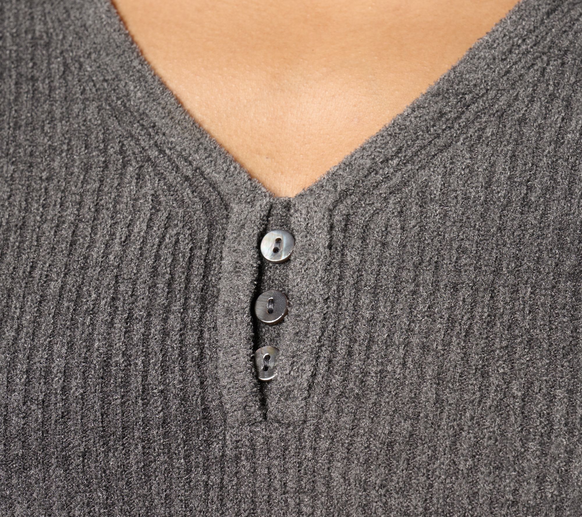 • Features: allover ribbing, button-front neckline, long sleeves, tunic length