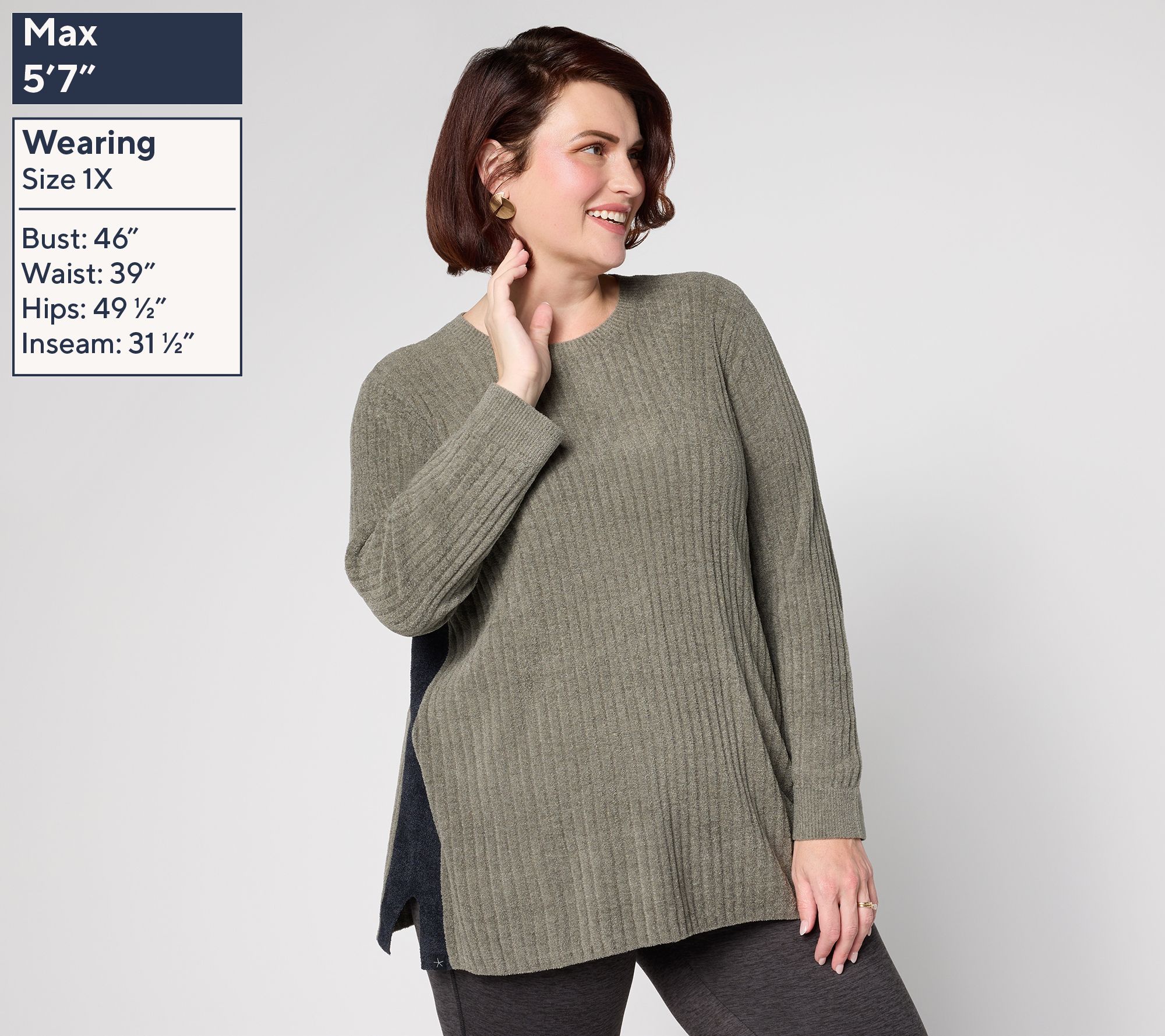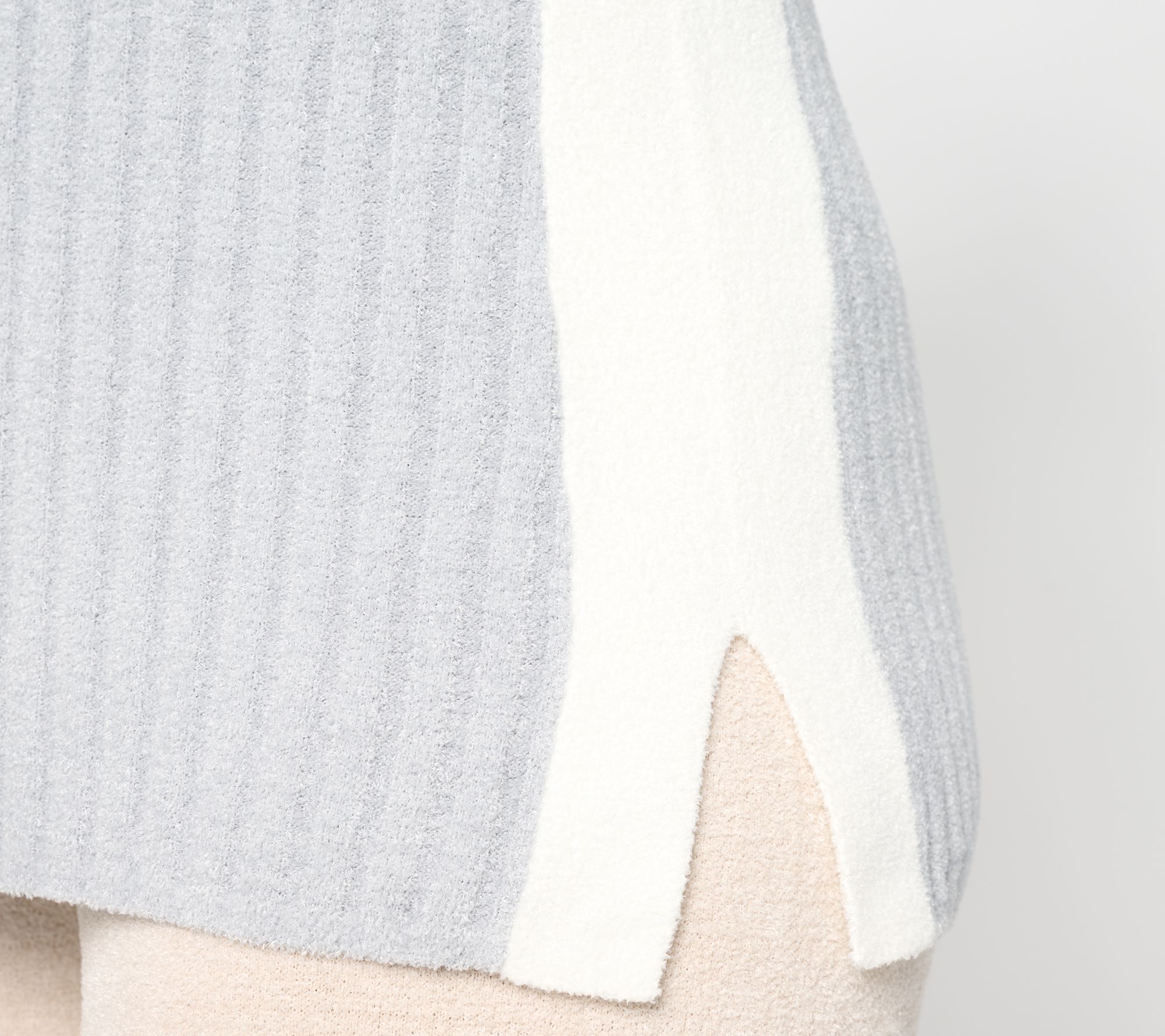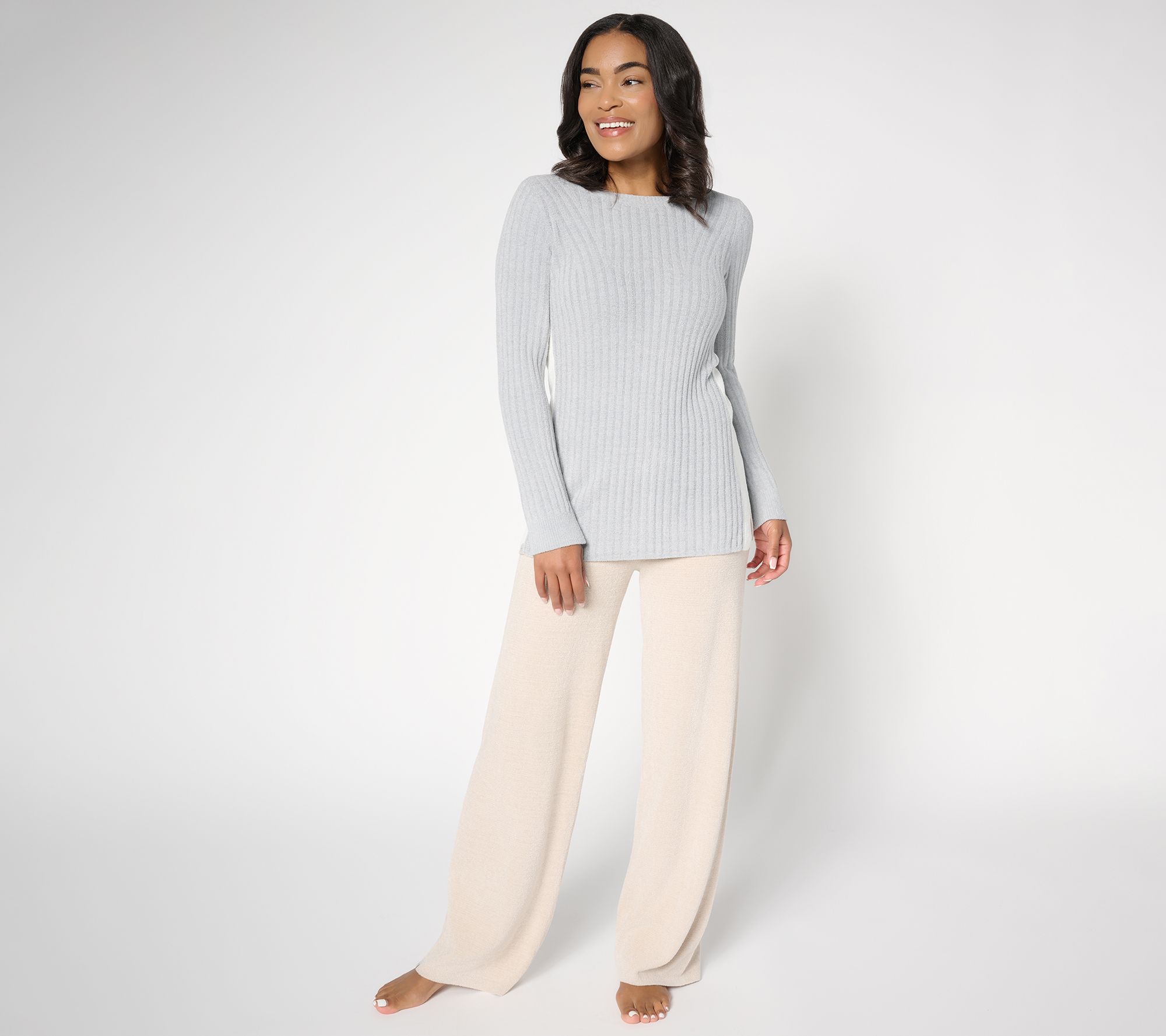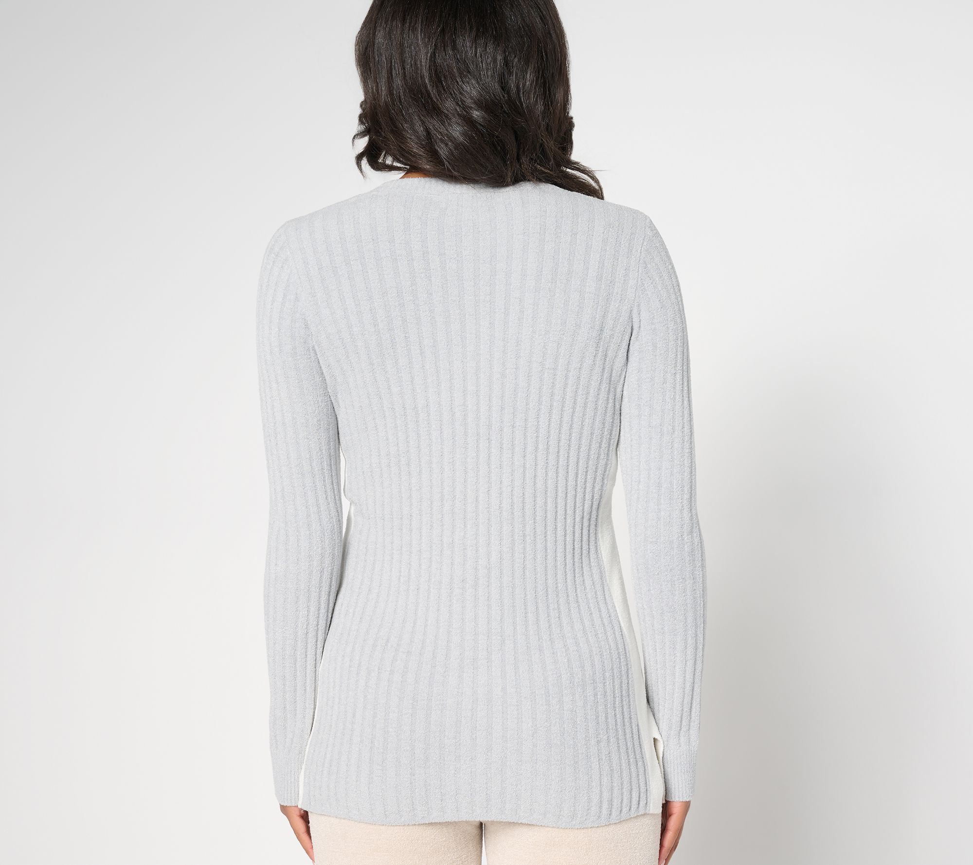 Soft knit layers are made for slow mornings and nights in, and this striped rib tunic laid-back style fits right in. Contrasting directional rib stripes along the side add a distinctive touch, while the relaxed fit and long sleeves keep you comfortable from your first cup of coffee through movie night. From Barefoot Dreams.