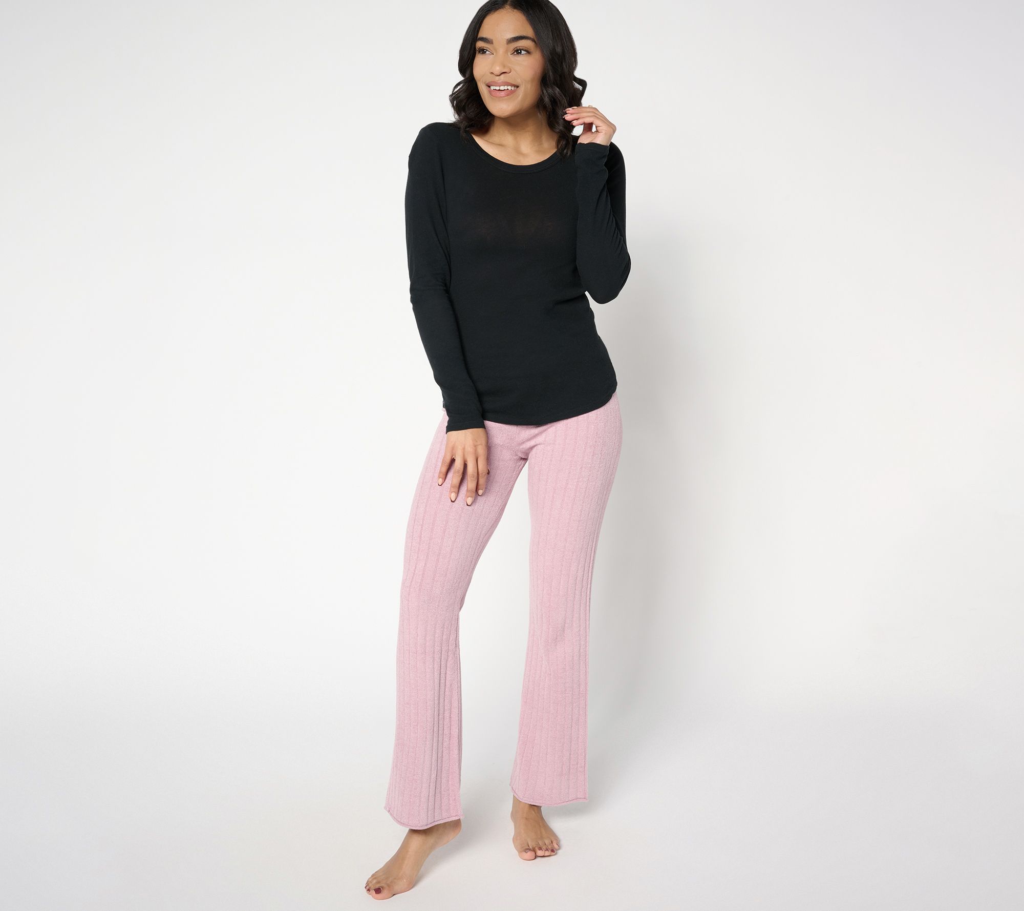 Barefoot Dreams keeps the cozy moments (and the compliments) coming. Elevated and ultra-soft, these CozyChic flared pants are quiet luxury meant for every casual-chic closet. Leg-lengthening ribbed detail and a flattering fit provide comfortable confidence, whether you're caffeinating with the coffee shop crew or settled in on the sofa. From Barefoot Dreams.