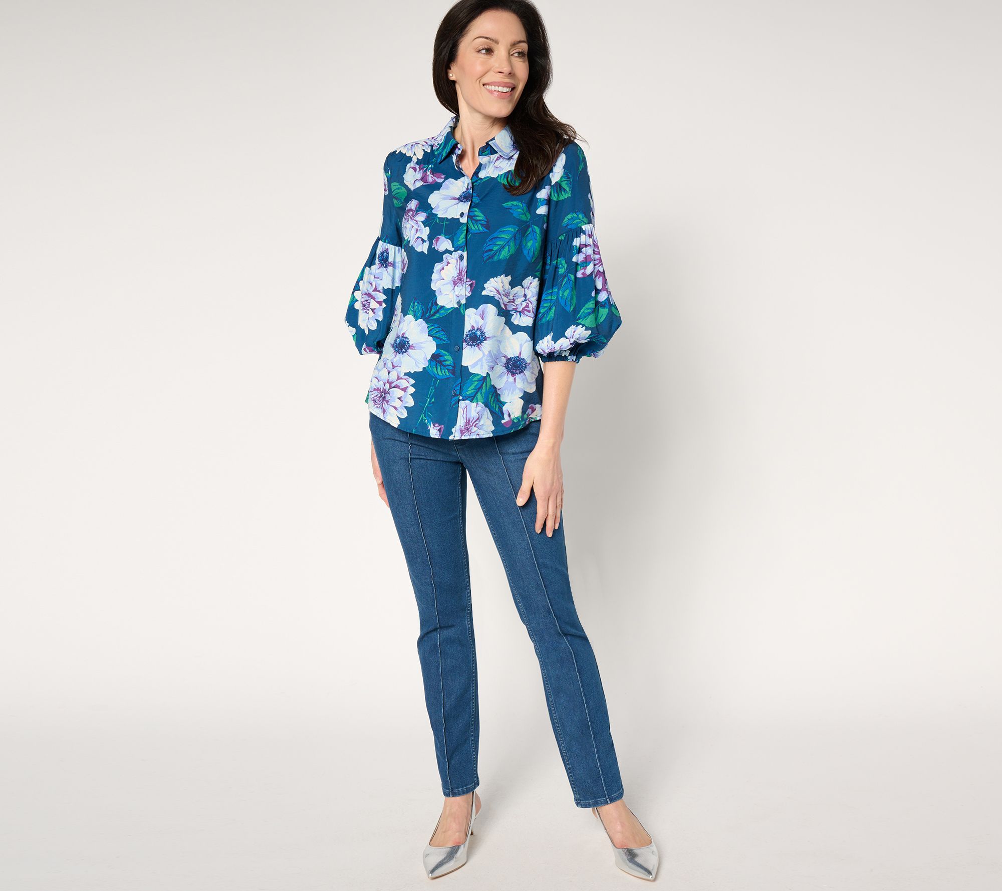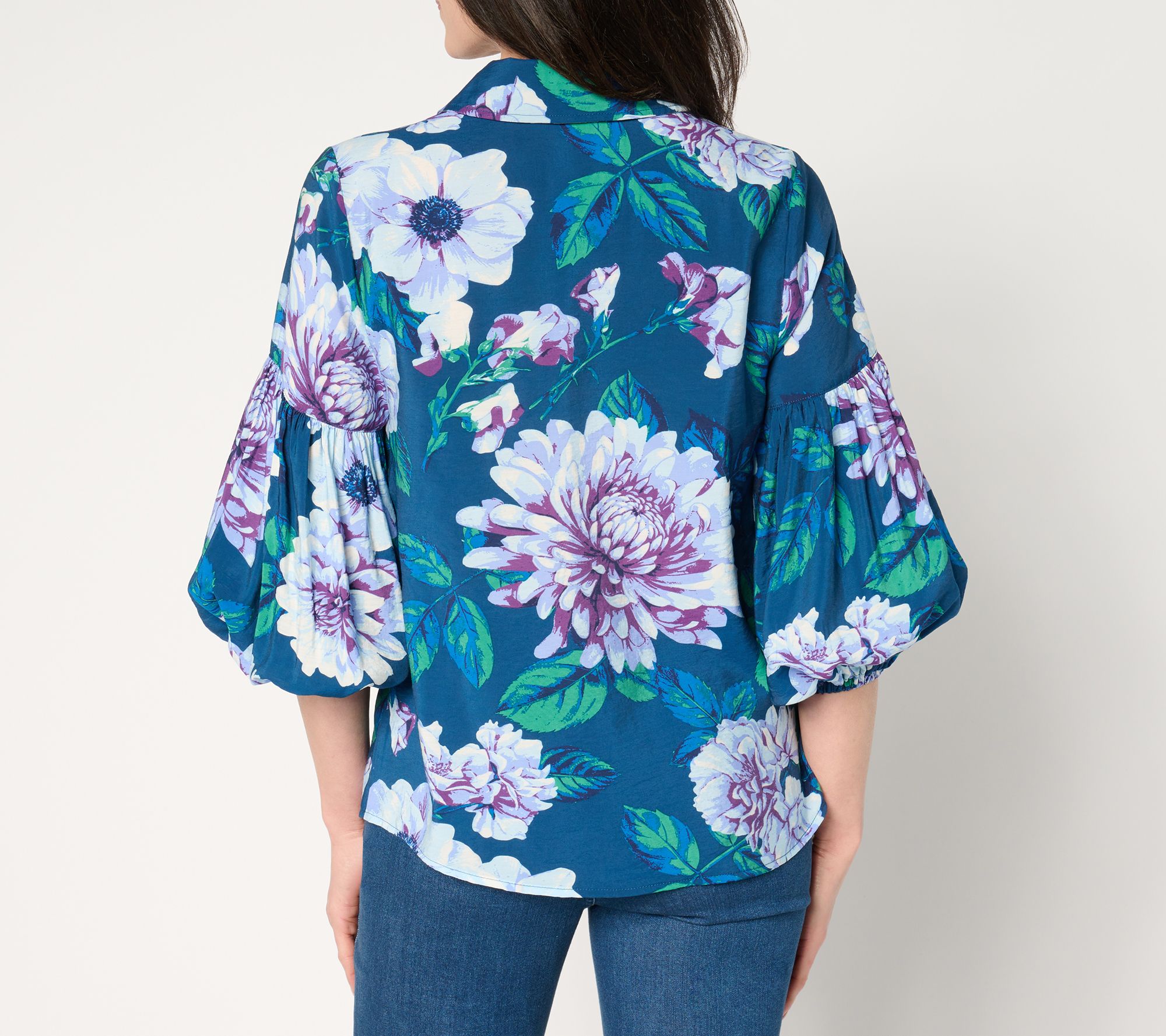 Don't wait for Mother Nature's blooms -- Lawrence Zarian gives us a haute head start on botanical beauty with this button-front shirt bursting with a bold floral print. The statement-making blouson sleeves add extra dimension and sophistication to the blossomy look. From BEAUTIFUL by Lawrence Zarian.