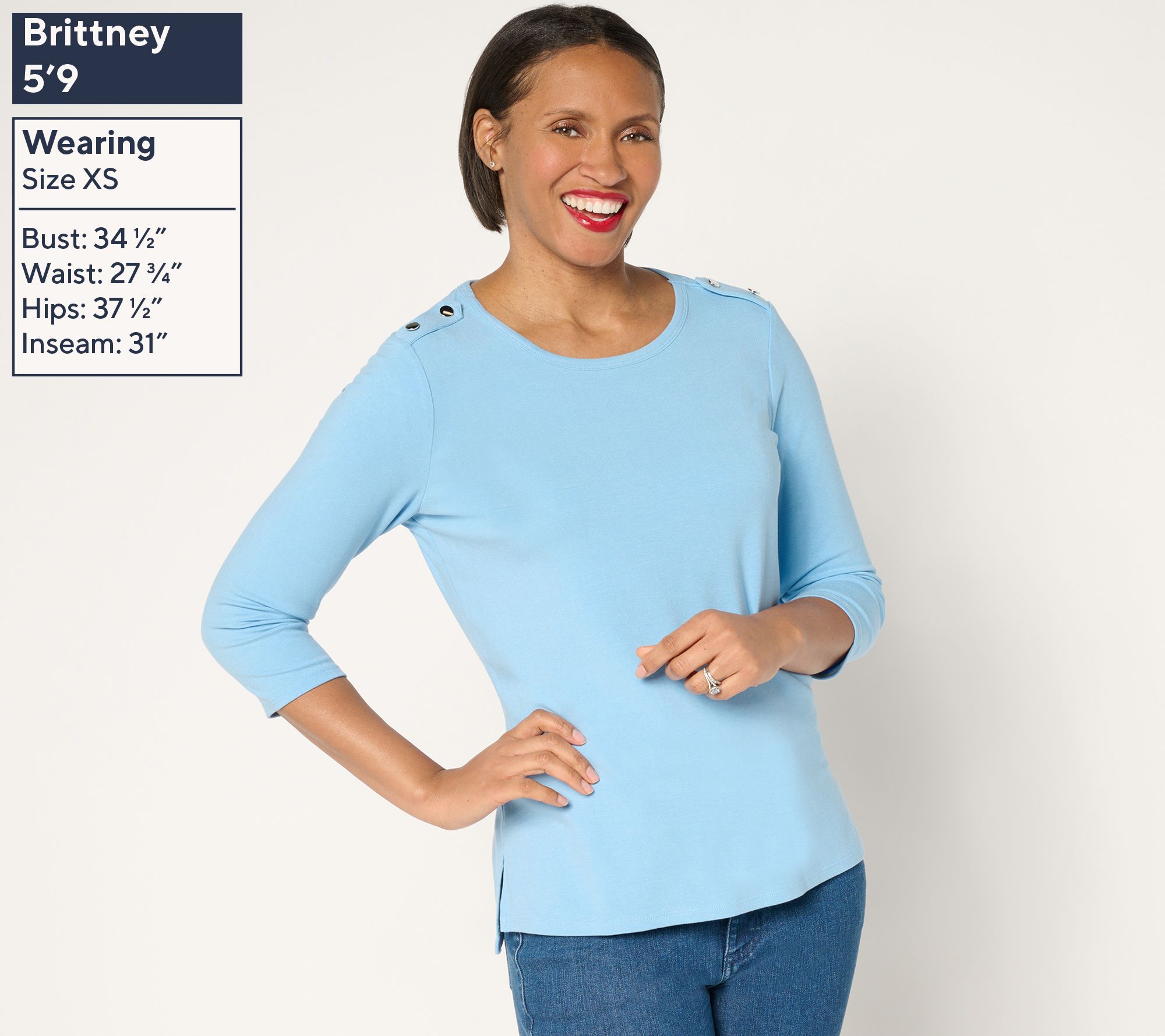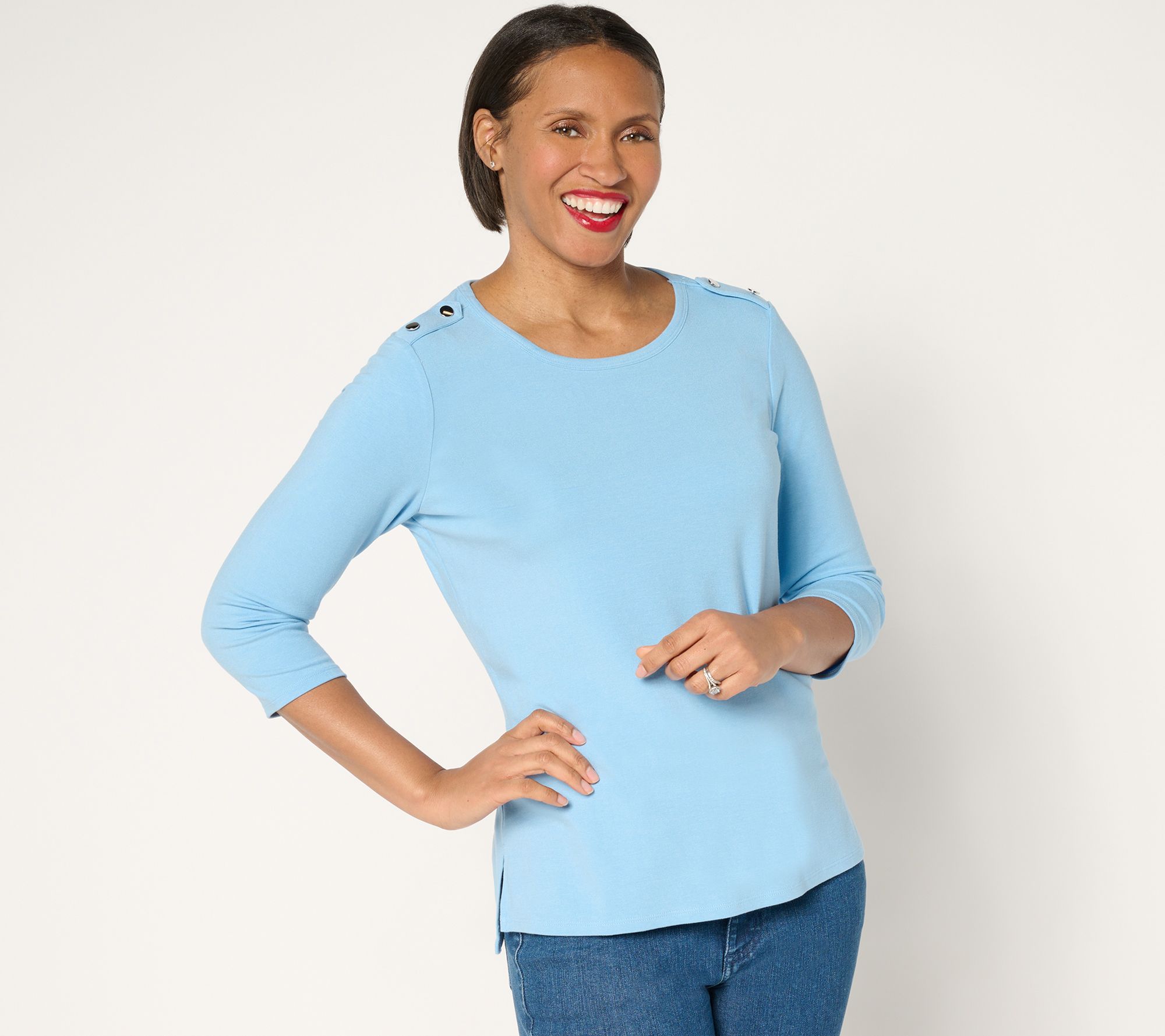 It's the little things -- like the button-detailed shoulder tabs of this cross-seasonal top -- that make your everyday outfits stand out from the crowd. From BEAUTIFUL by Lawrence Zarian.