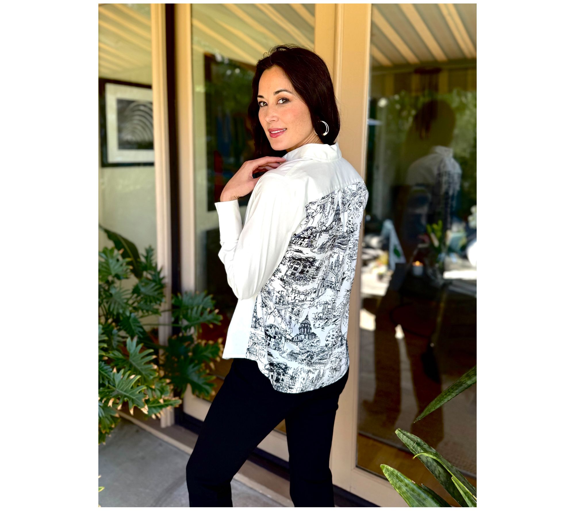 "As Is" BEAUTIFUL by Lawrence Zarian Button Front Shirt w/ Print