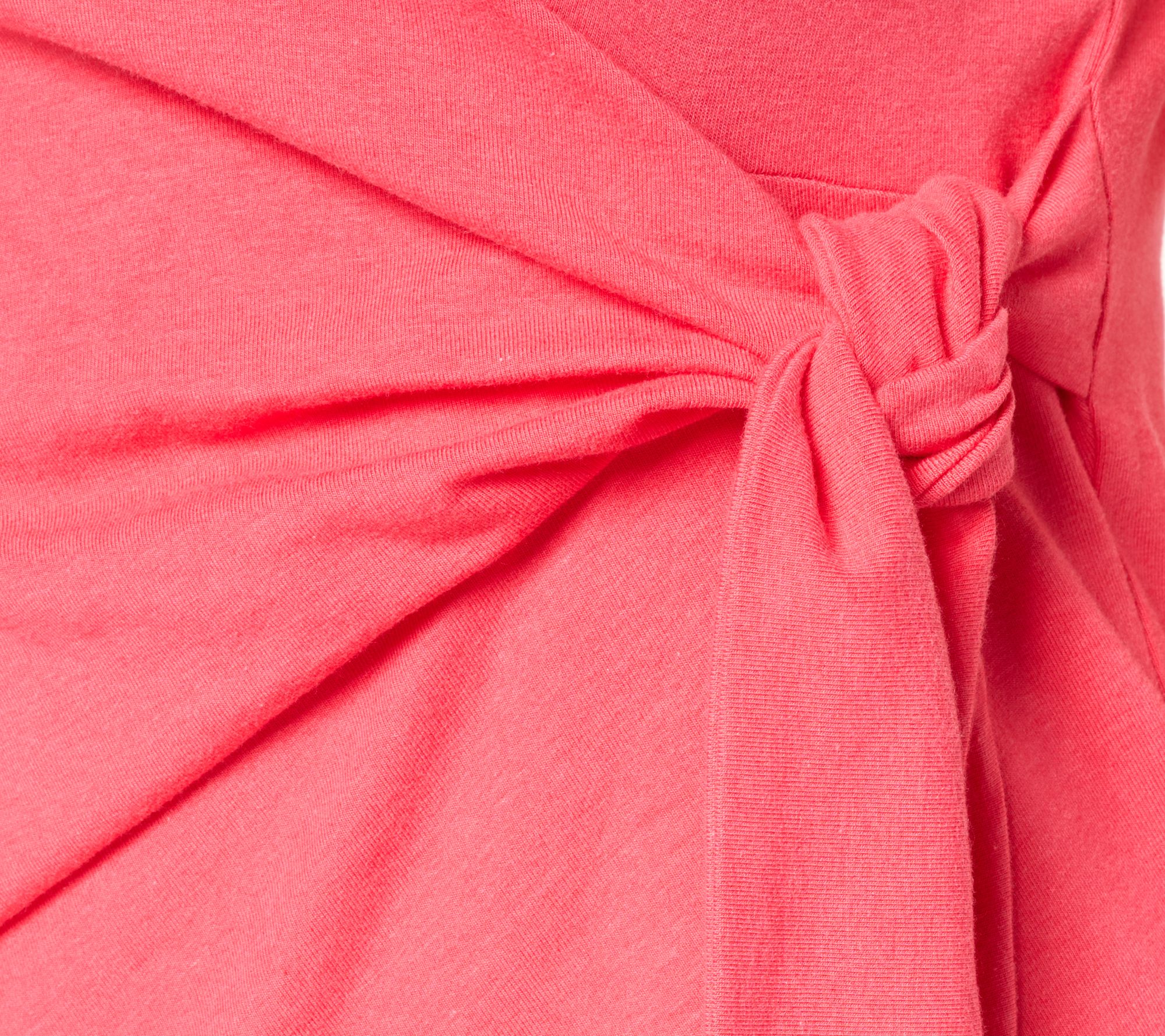 • Features: neckband, functional self-tie gathered on wearer's left side
