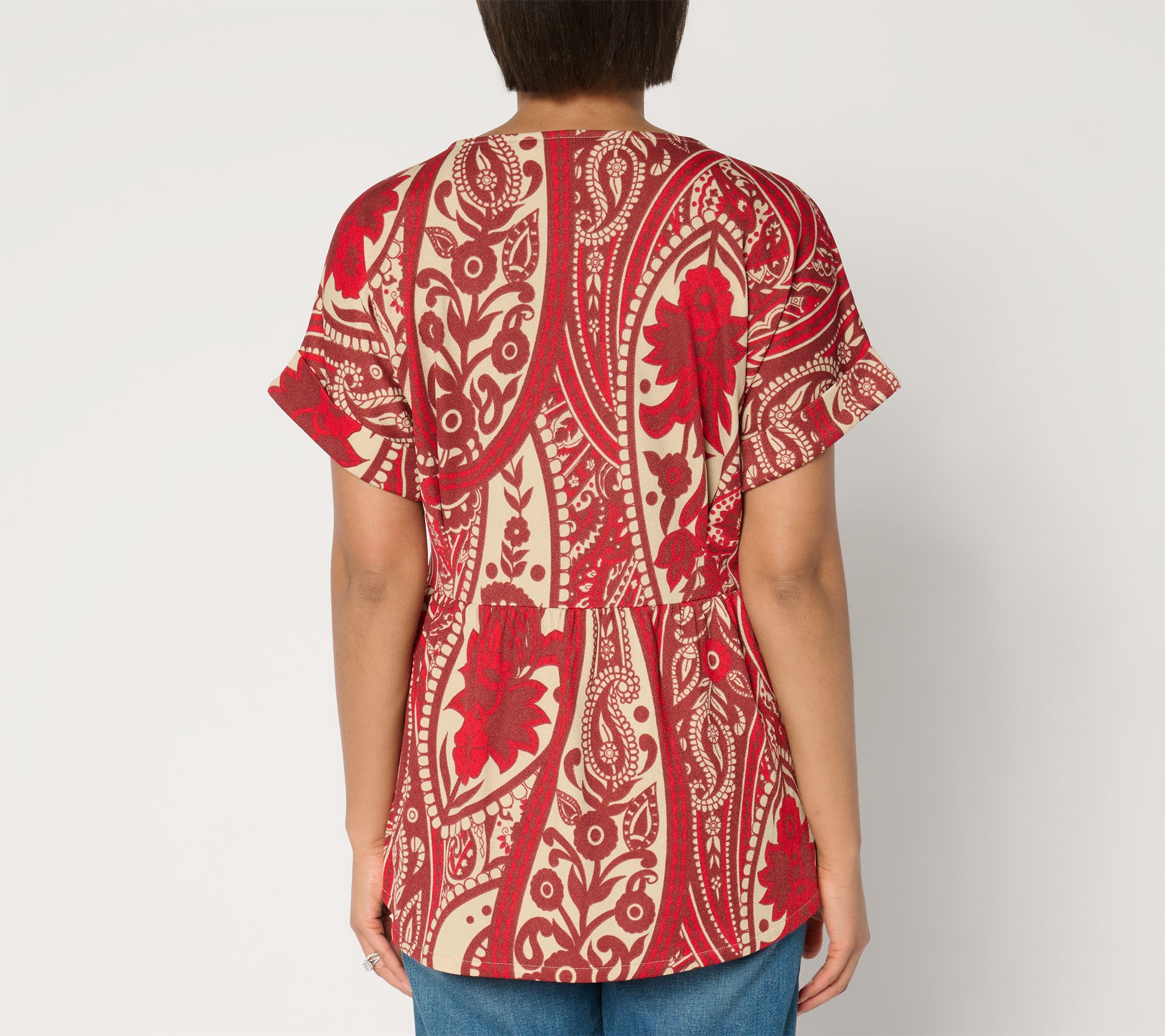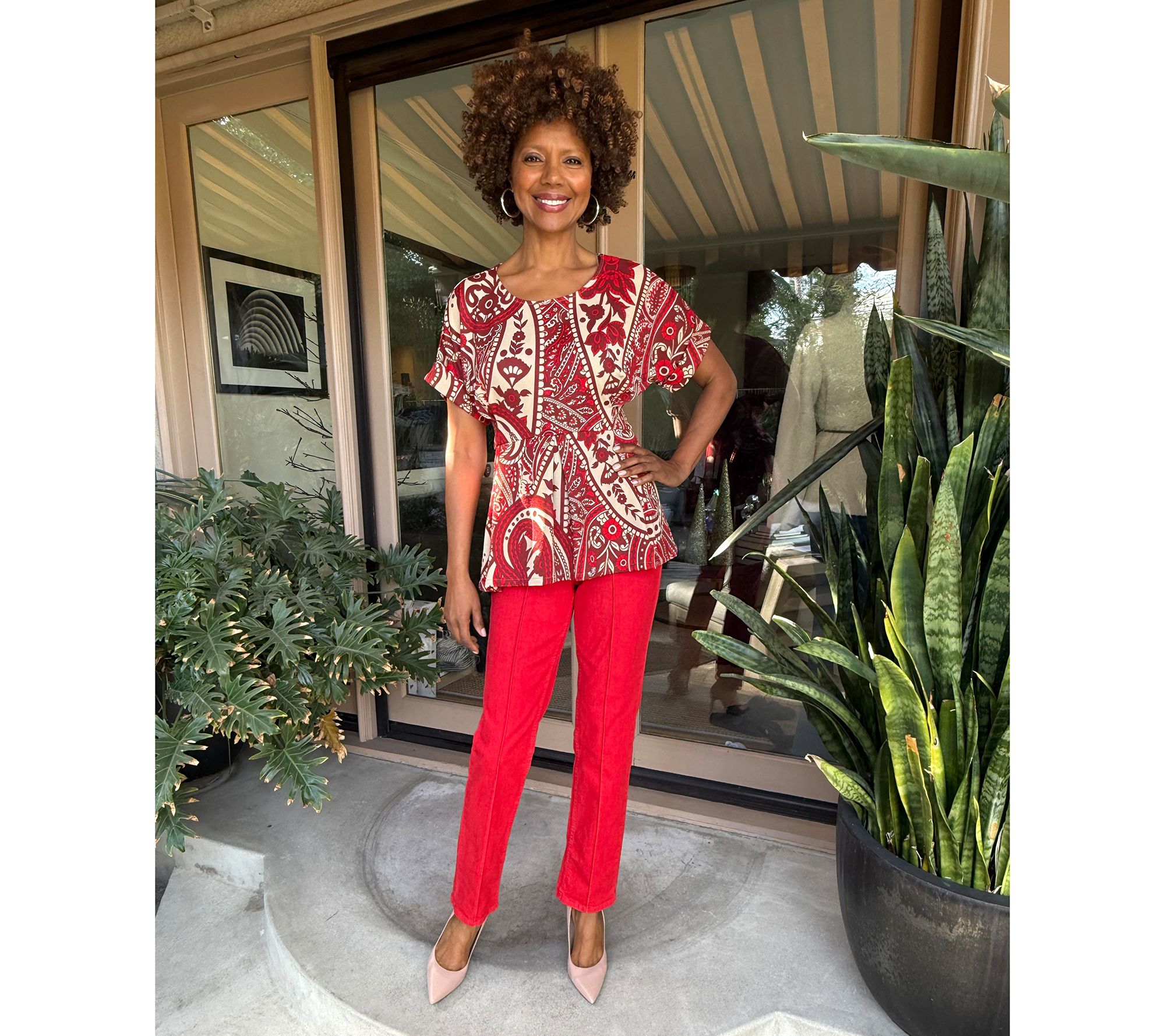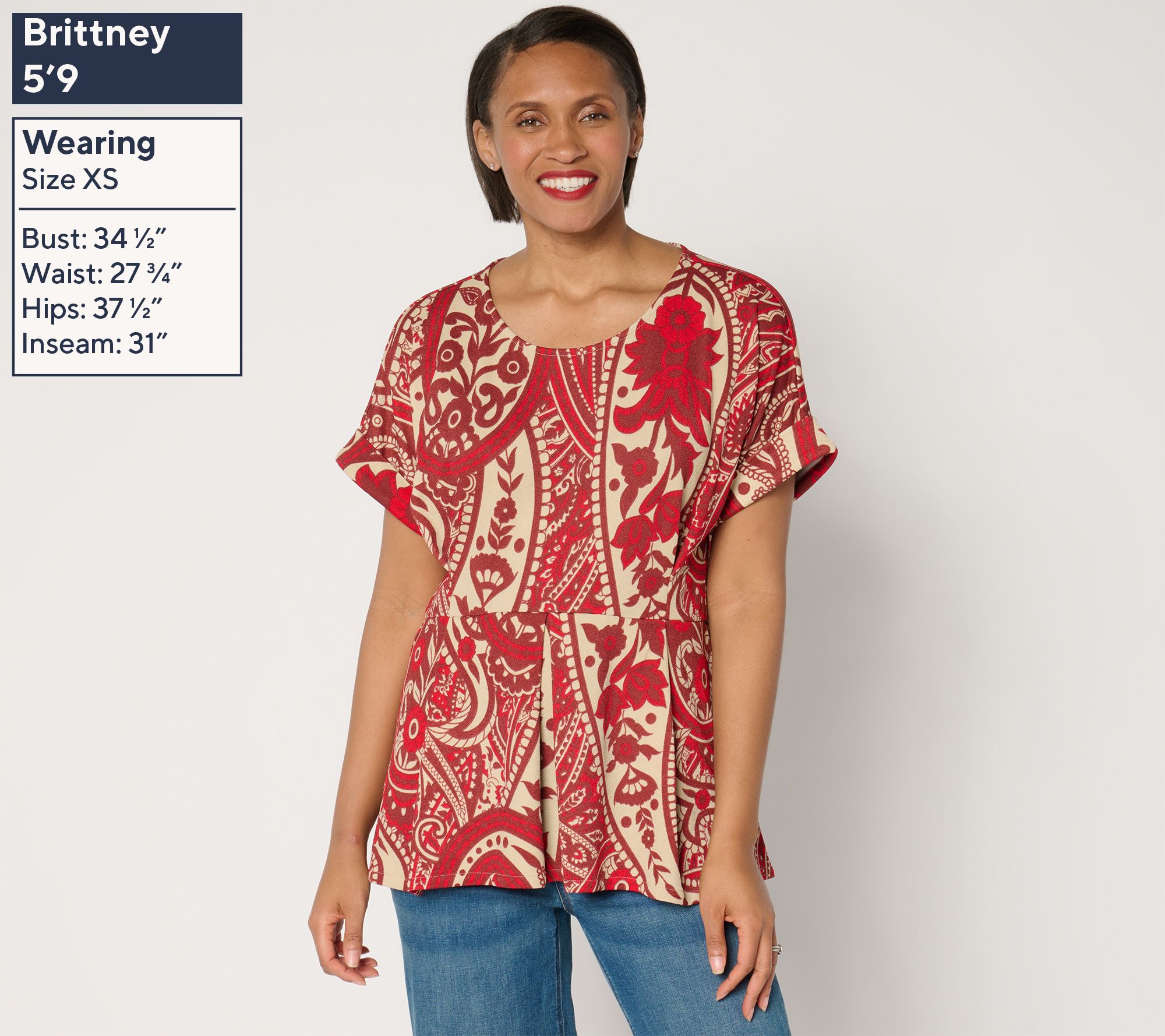 Head-turning style and all-day comfort come together in this dolman sleeve top. Perfect for brunches, meetings, or casual outings, it boasts a scoop neckline, inverted pleats, and a relaxed fit for ease. From Beautiful by Lawrence Zarian.