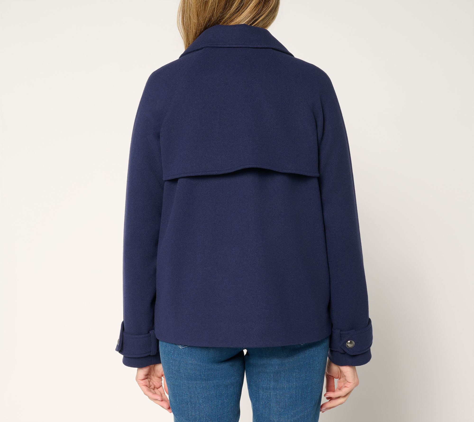 Crisp breeze? Your coat is calling, and this short double-breasted peacoat answers -- with modern style and timeless appeal. A notch collar and lapel pair perfectly with tailored lines, while functional touches like side seam pockets and sleeve tabs keep things practical for workdays or weekends. From BEAUTIFUL by Lawrence Zarian.