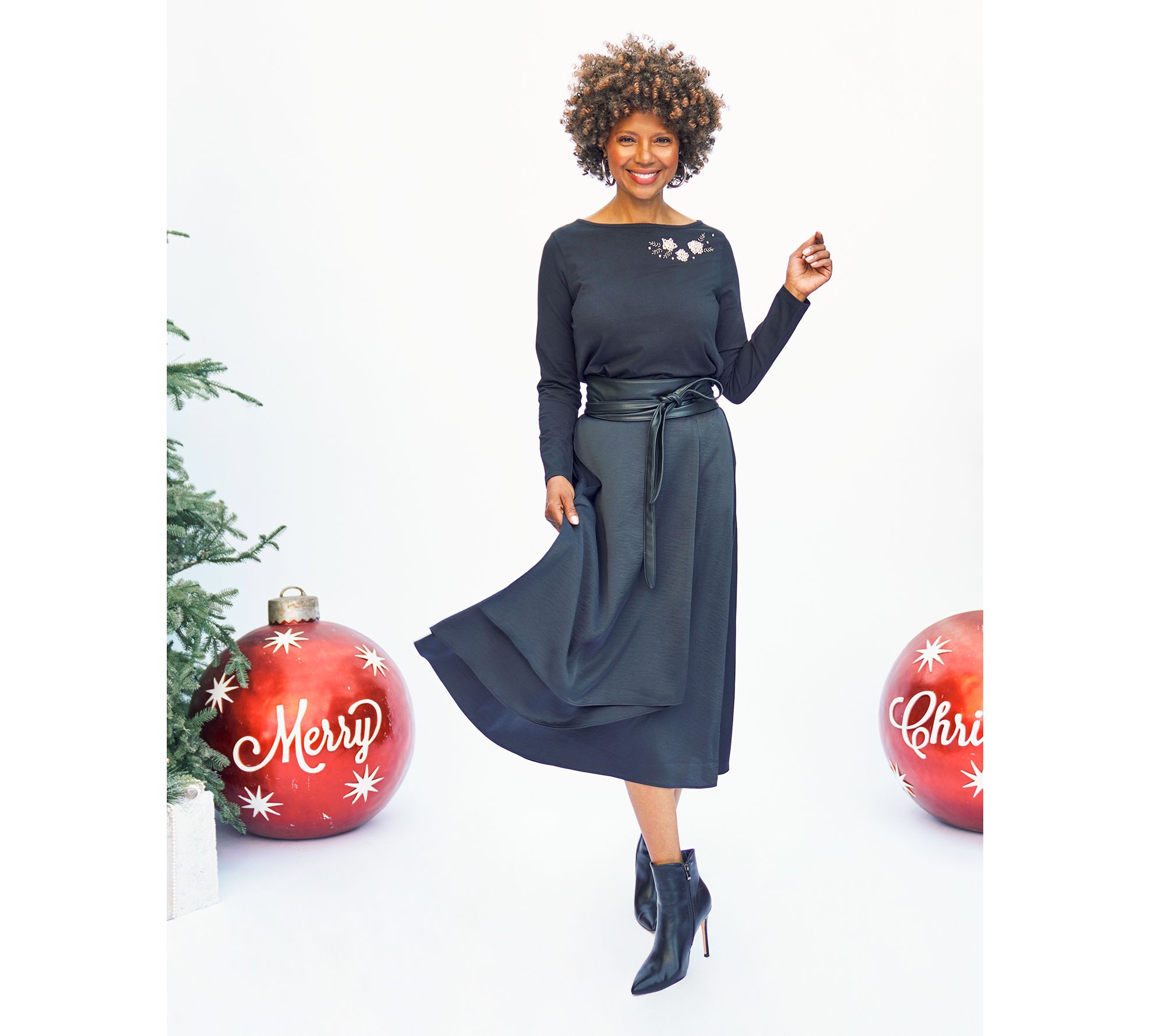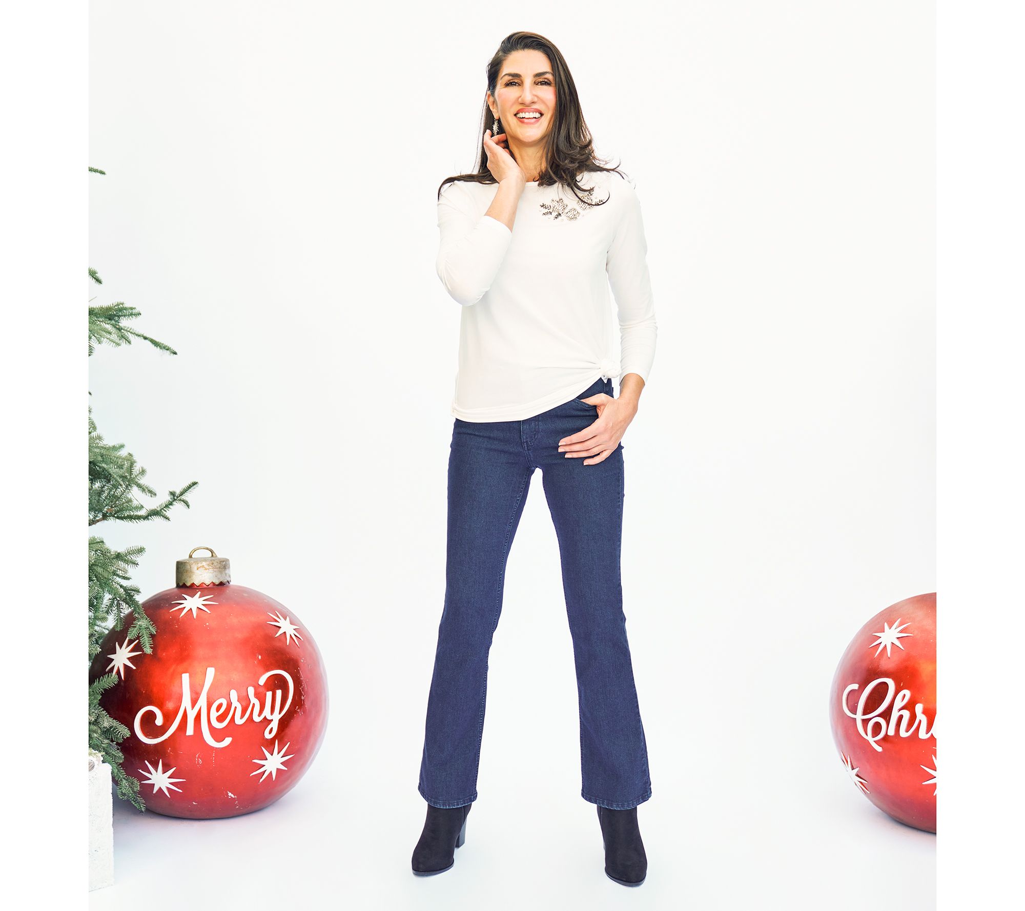 Getting ready for a busy day around town or an evening out with friends? Lawrence Zarian has just the long-sleeve knit top you need to shine at any hour. A neatly finished crew neckline and embellished details give it a polished appearance and make it perfect for pairing with your favorite jeans or a chic skirt. From BEAUTIFUL by Lawrence Zarian.