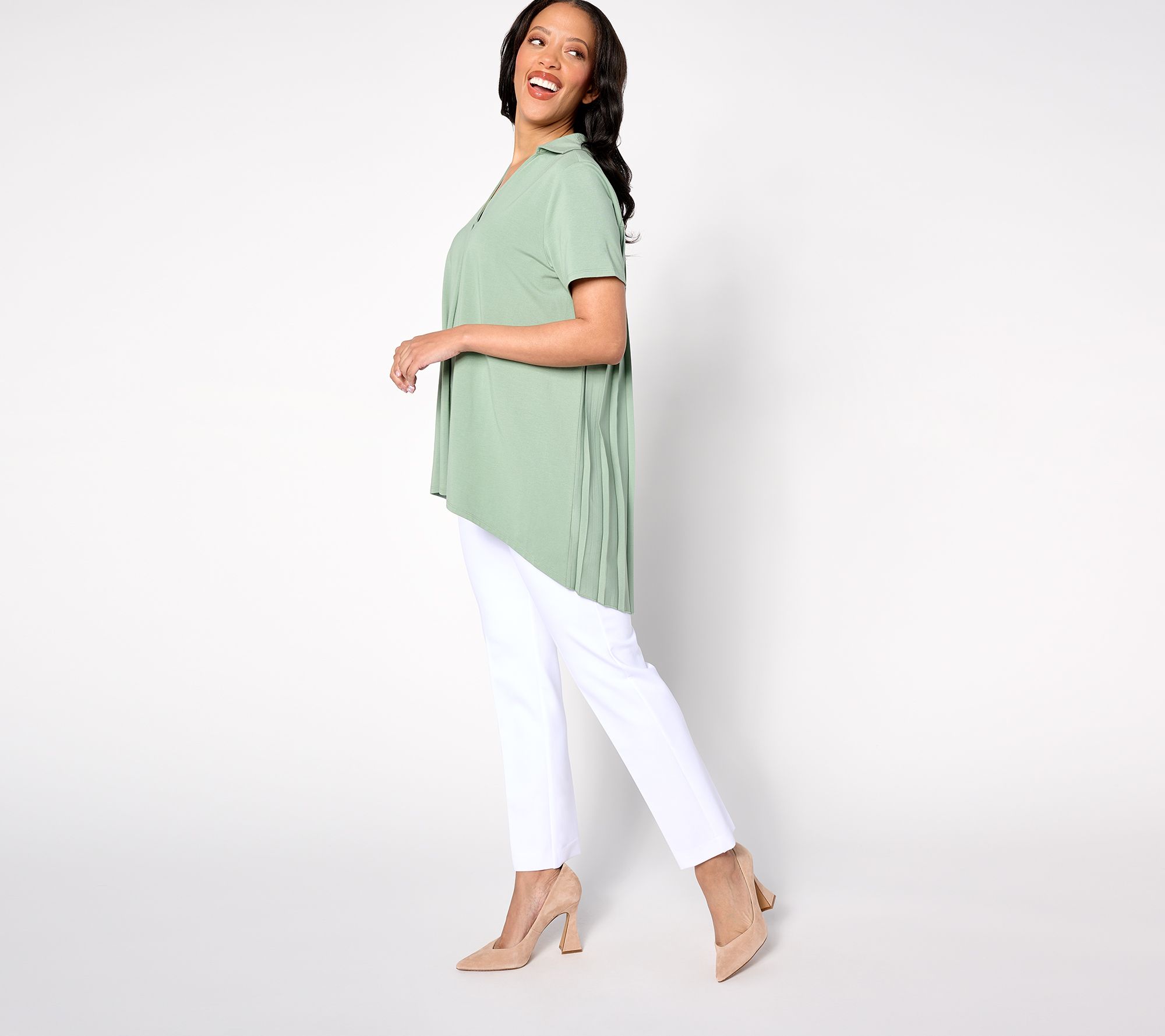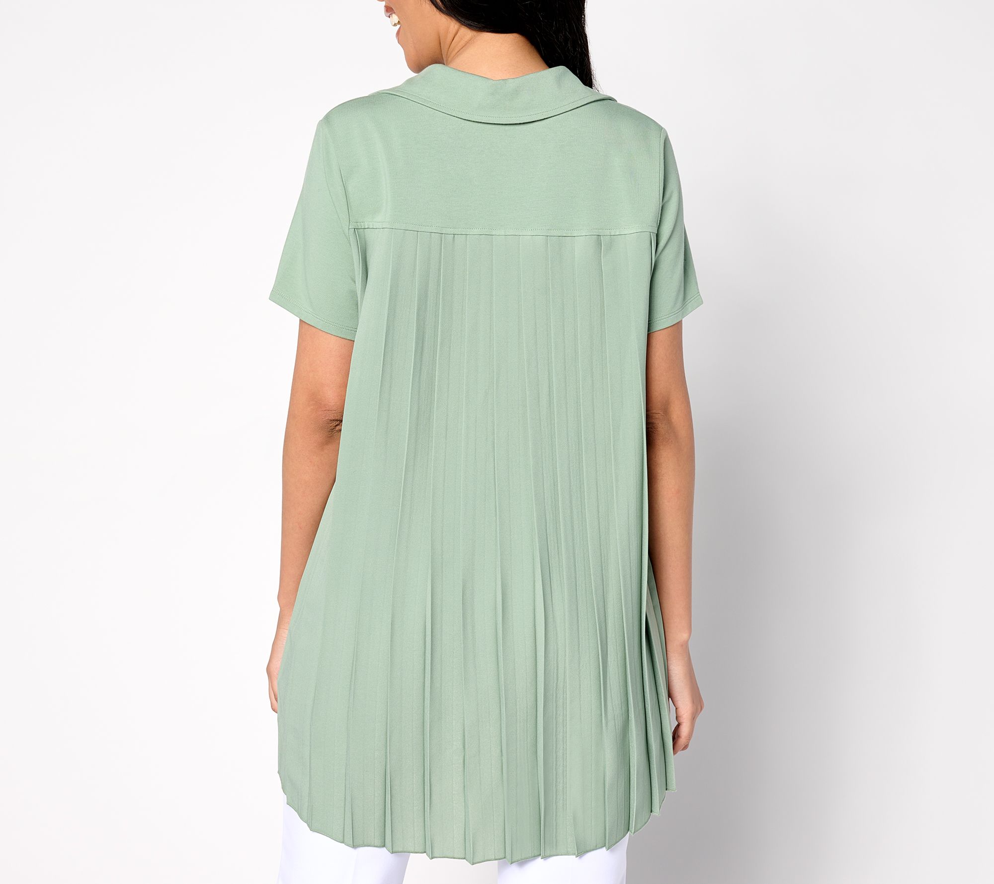 And just like that, Lawrence Zarian captures our attention with something chic and unique! Say hello to this hi-low tunic with pretty pleating in back that makes your exit as head-turning as your entrance! From BEAUTIFUL by Lawrence Zarian.