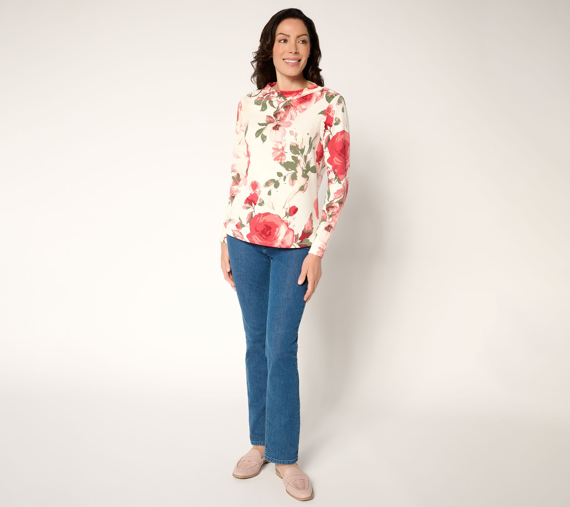 A bold twist on an everyday essential, this scuba-knit pullover showcases a striking print and pleated funnel neckline for effortless fashion whether you're meeting friends or adding flair to your work-from-home look. Soft stretch fabric and long sleeves provide all-day comfort, making it easy to style with anything from tailored trousers to your favorite jeans. From BEAUTIFUL by Lawrence Zarian.