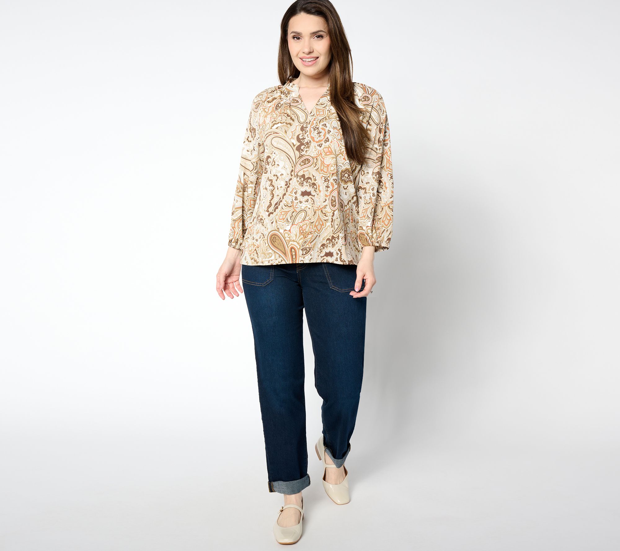 "As Is" BEAUTIFUL by Lawrence Zarian Printed Stretch Sateen Blouse