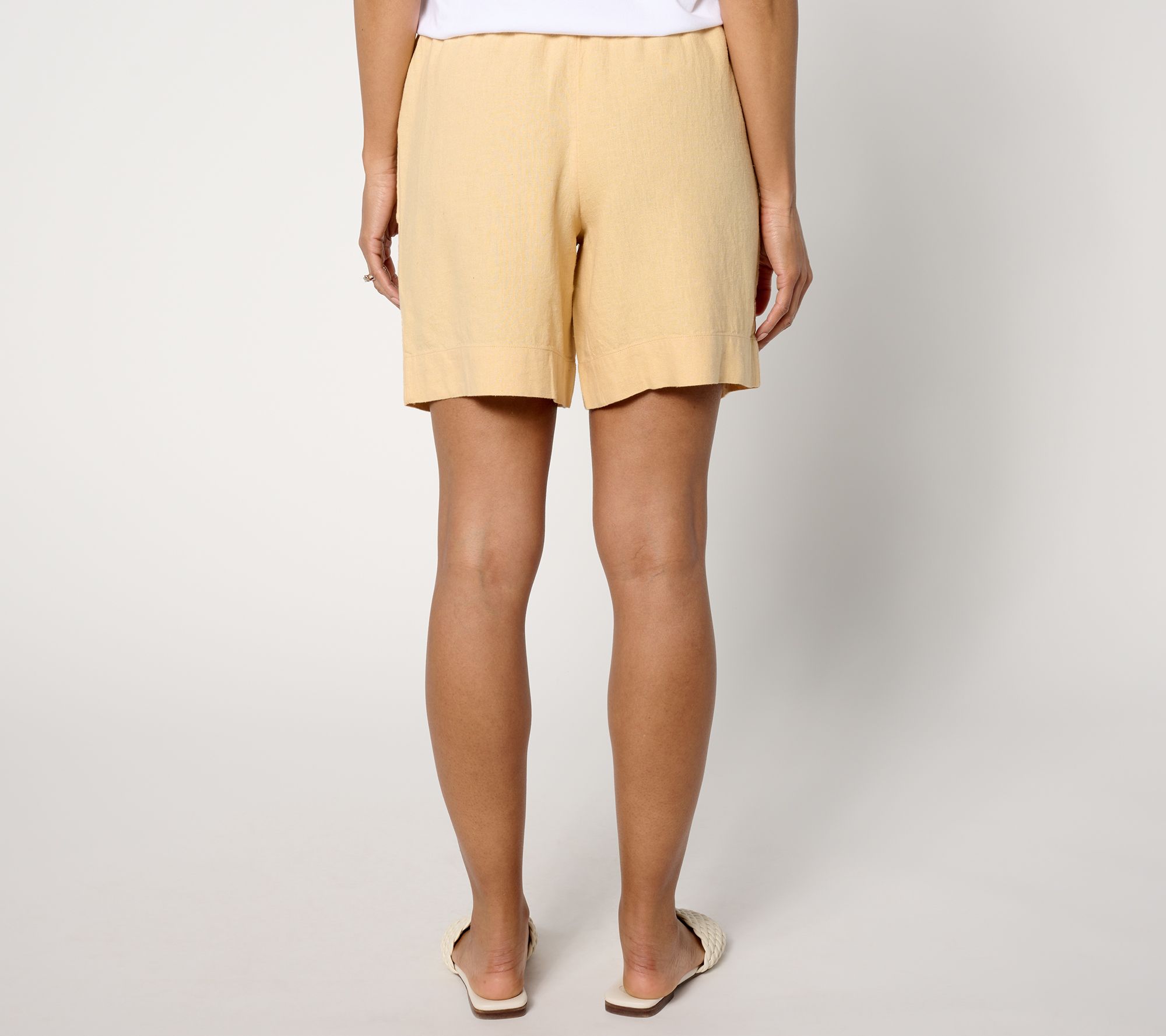 This isn't your mother's linen! Gone are the days of that stiff and scratchy summer-weight fabric. These straight-leg linen-blend shorts offer a soft and lightweight hand with pull-on ease -- exaclty what you want for sun-soaked days. Plus, they have a beautiful drape that can be dressed up for sultry nights. From BEAUTIFUL by Lawrence Zarian.