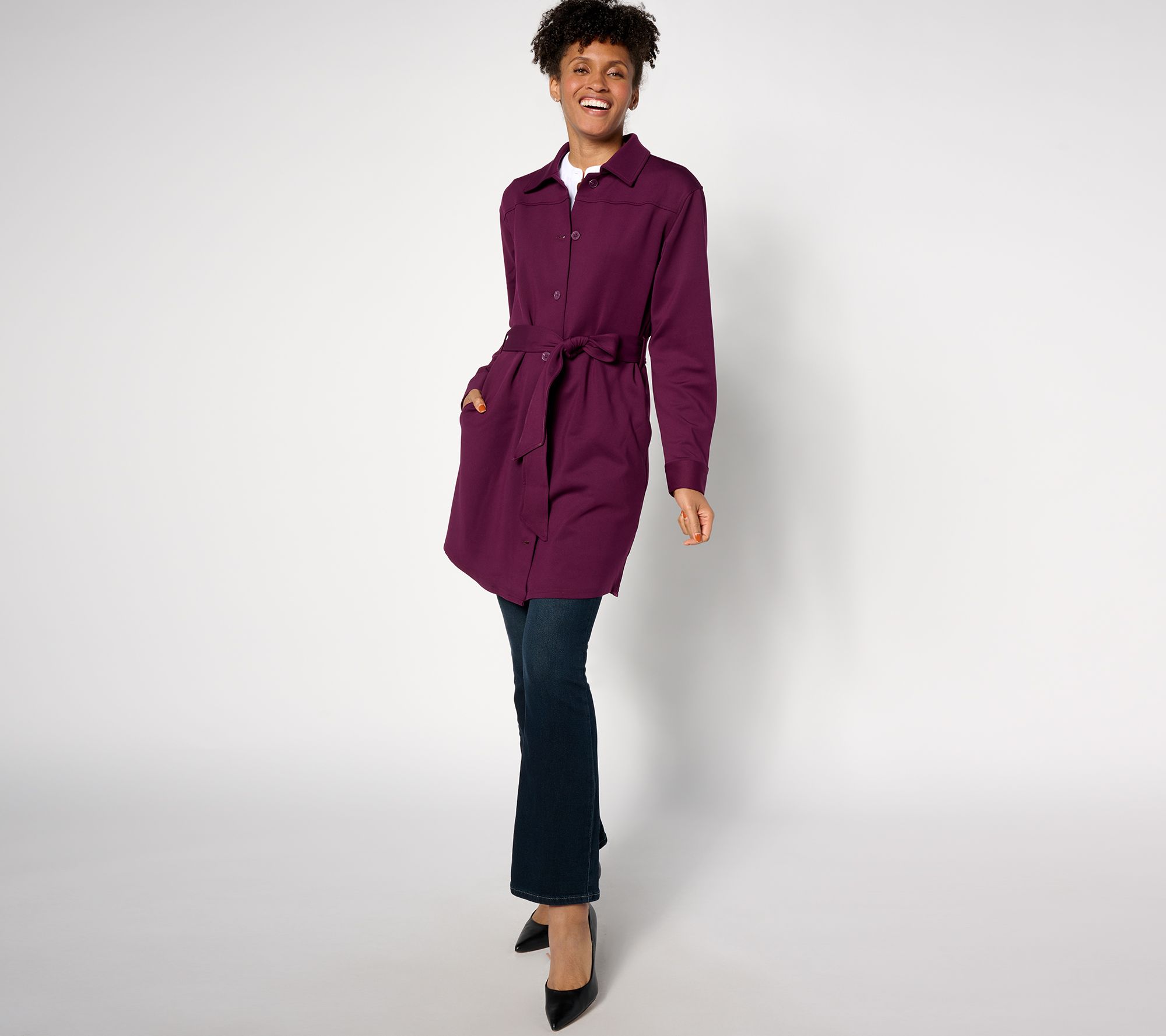 Dressing in layers? Who knew it could look so refined? Lawrence Zarian did! He thoughtfully structured this button-front jacket in sturdy ponte knit, to take the leggings, trousers, and tops you already own (and a few new pieces) to the next level of pulled together. From BEAUTIFUL by Lawrence Zarian.