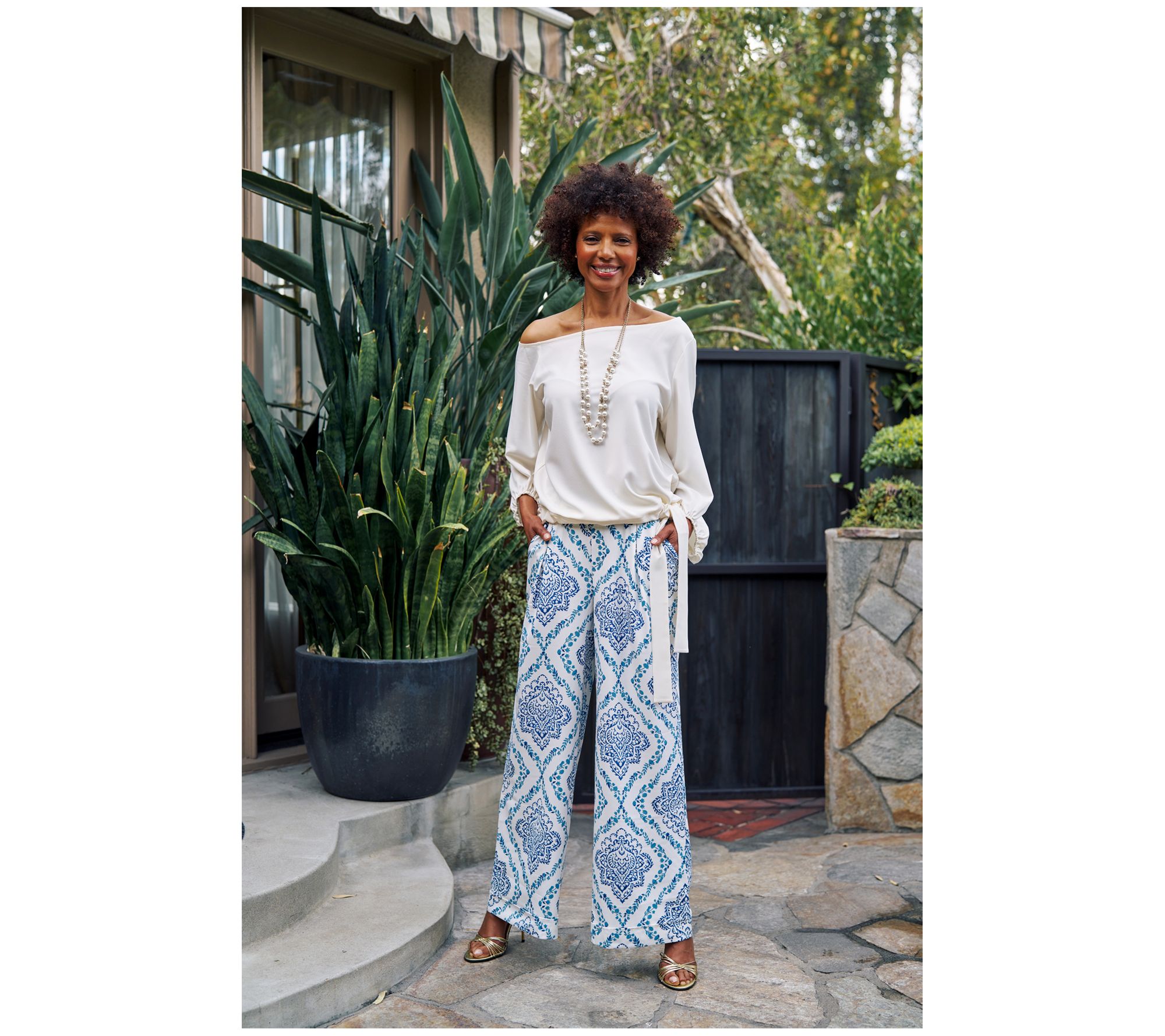 Who needs a little black dress? These wide-leg pants are how we're looking (and feeling) our most glamorous now -- day or night! From BEAUTIFUL by Lawrence Zarian.