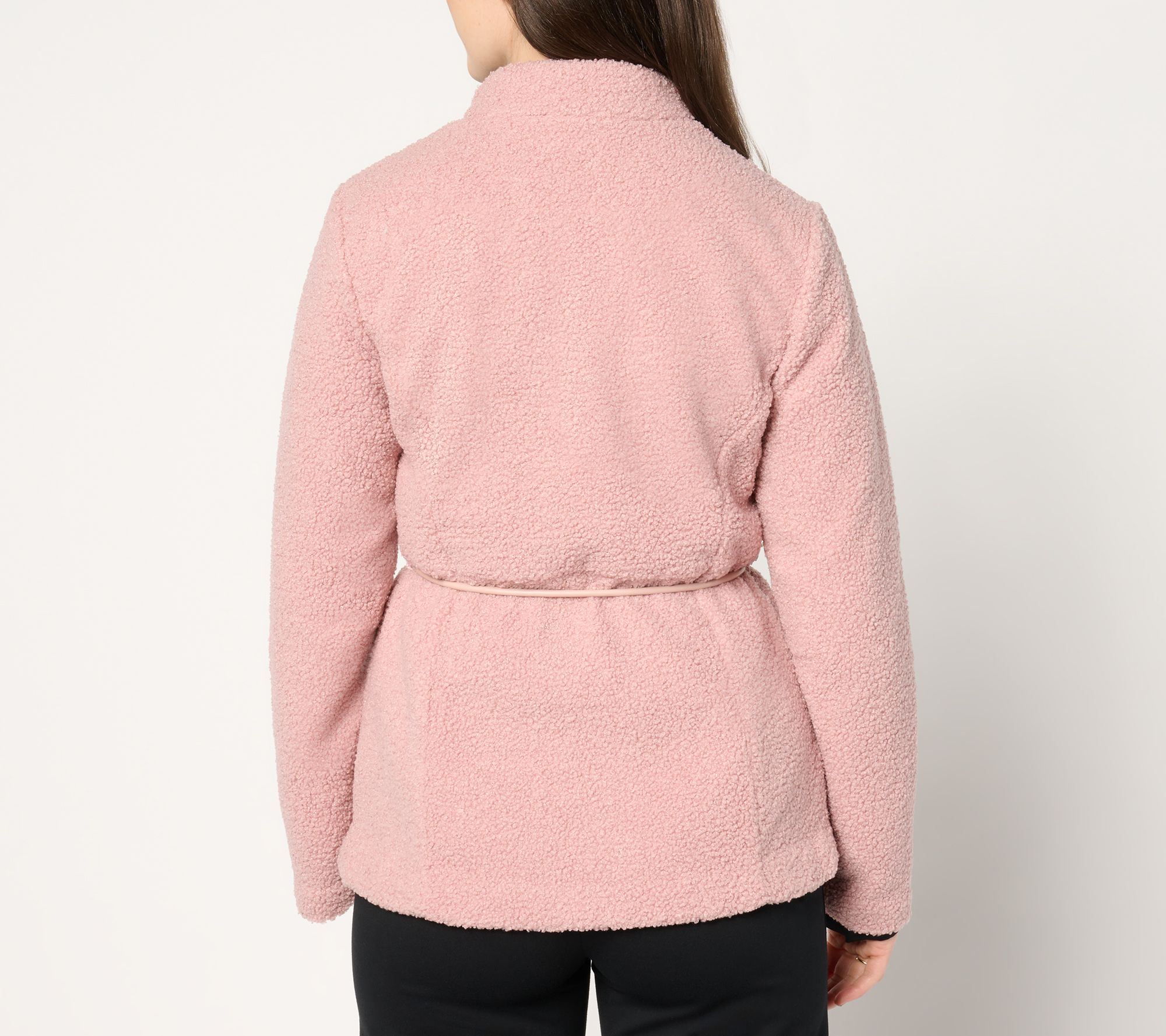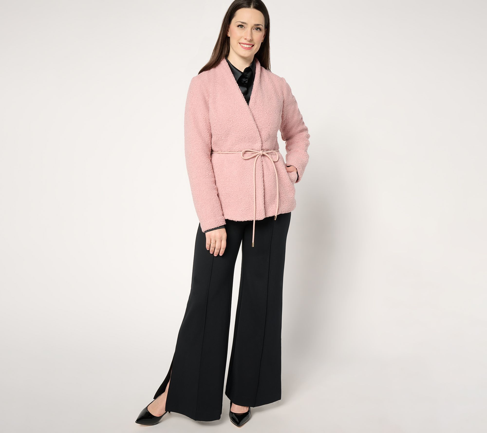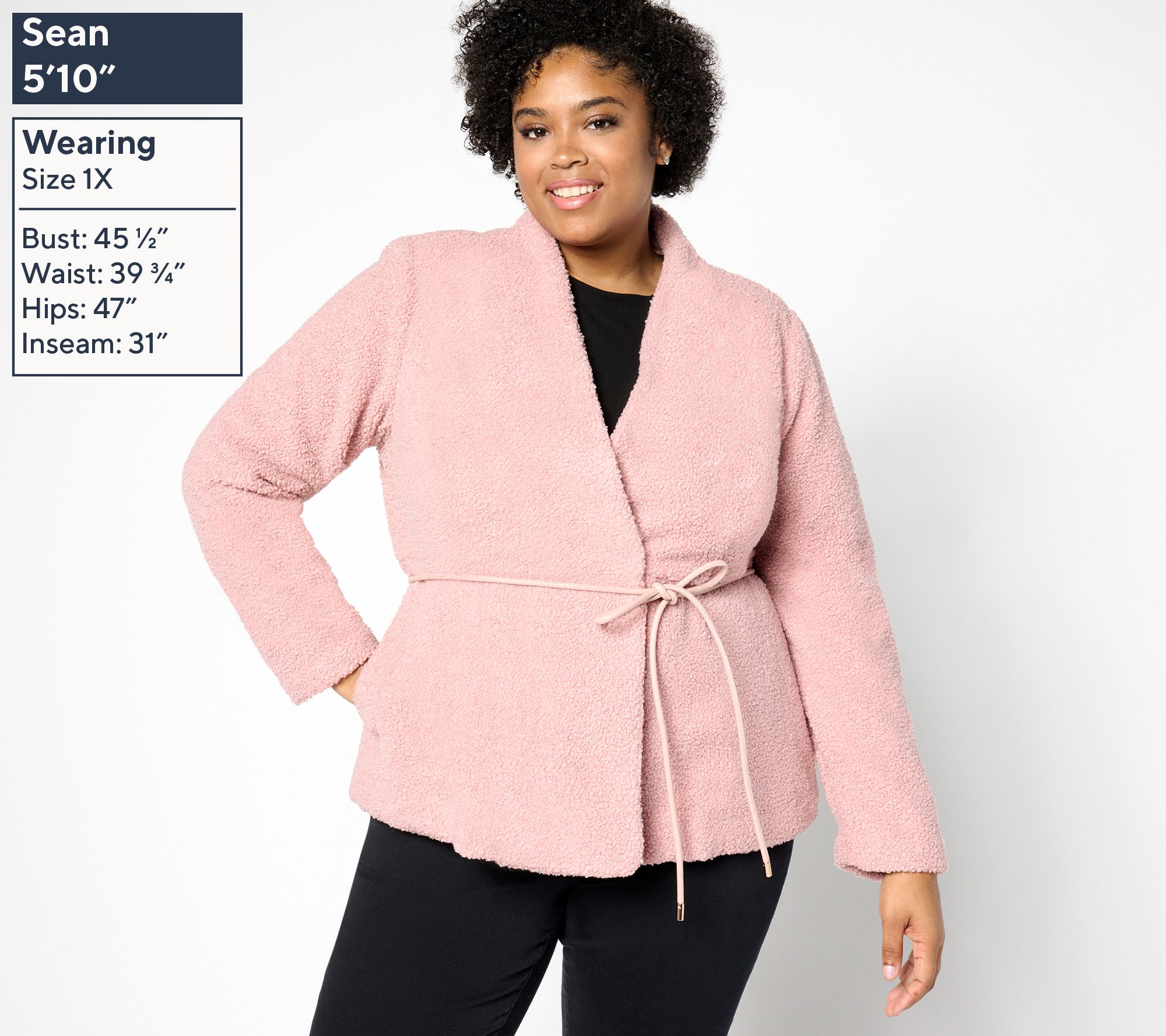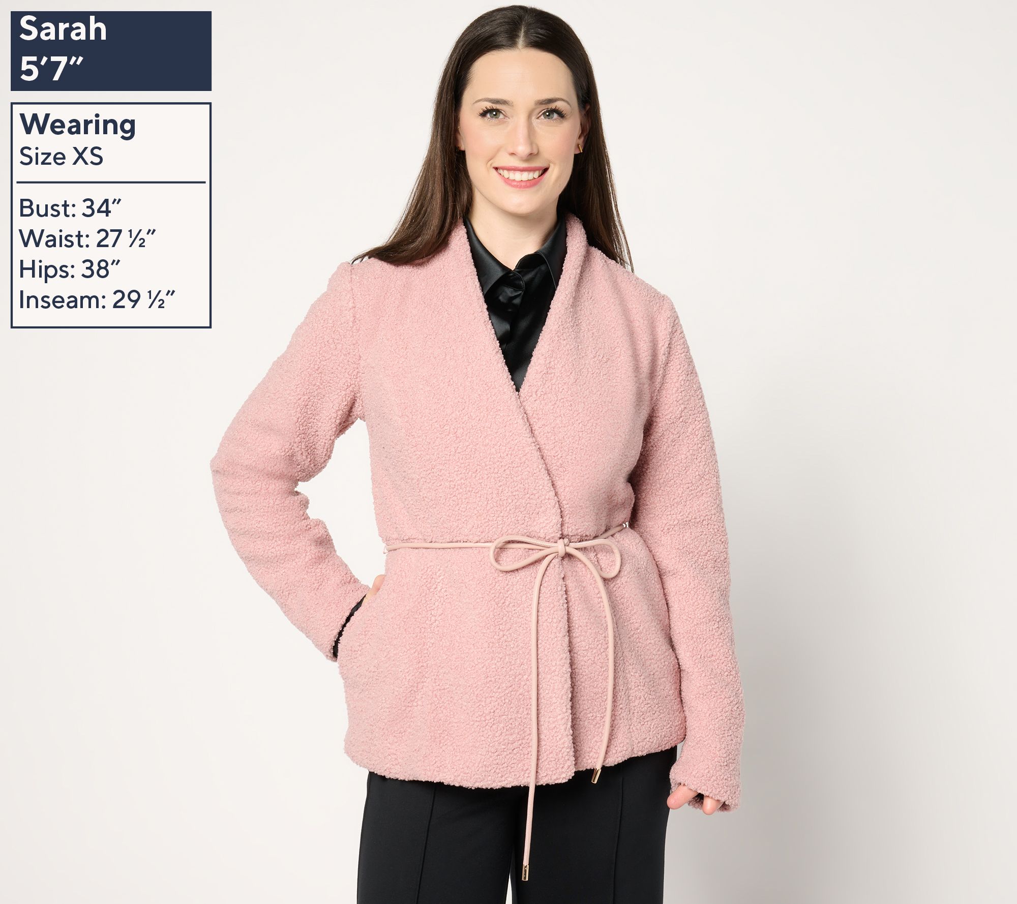 Cozy sherpa breaks from its casual reputation with this beautiful belted jacket in a sophisticated silhouette. Layer it over a silky dress, a crisp button-front, or a ribbed sweater for an interesting, high-style contrast of textures. From BEAUTIFUL by Lawrence Zarian.