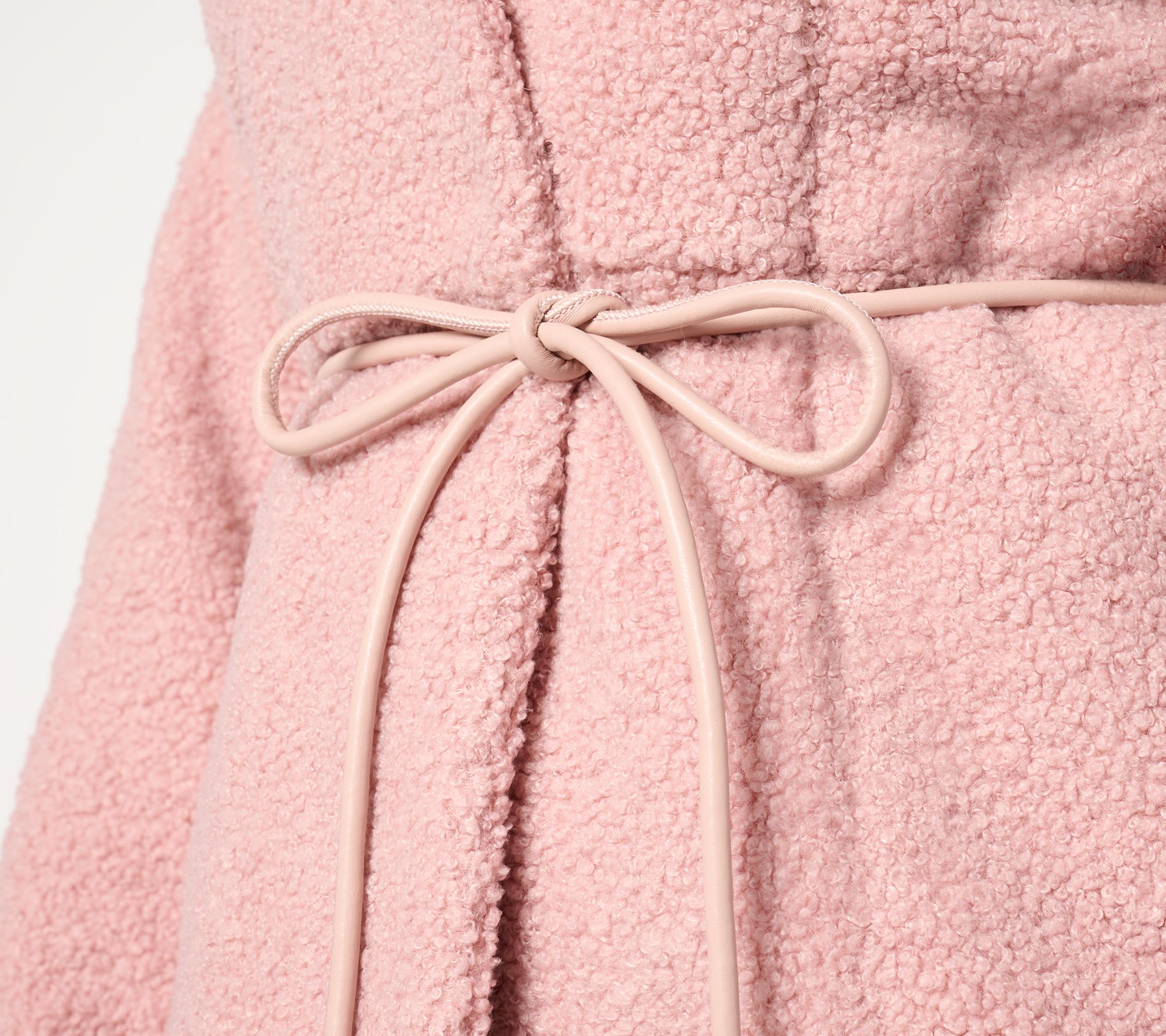 • Fabrication: knit sherpa body, faux-leather self-tie belt