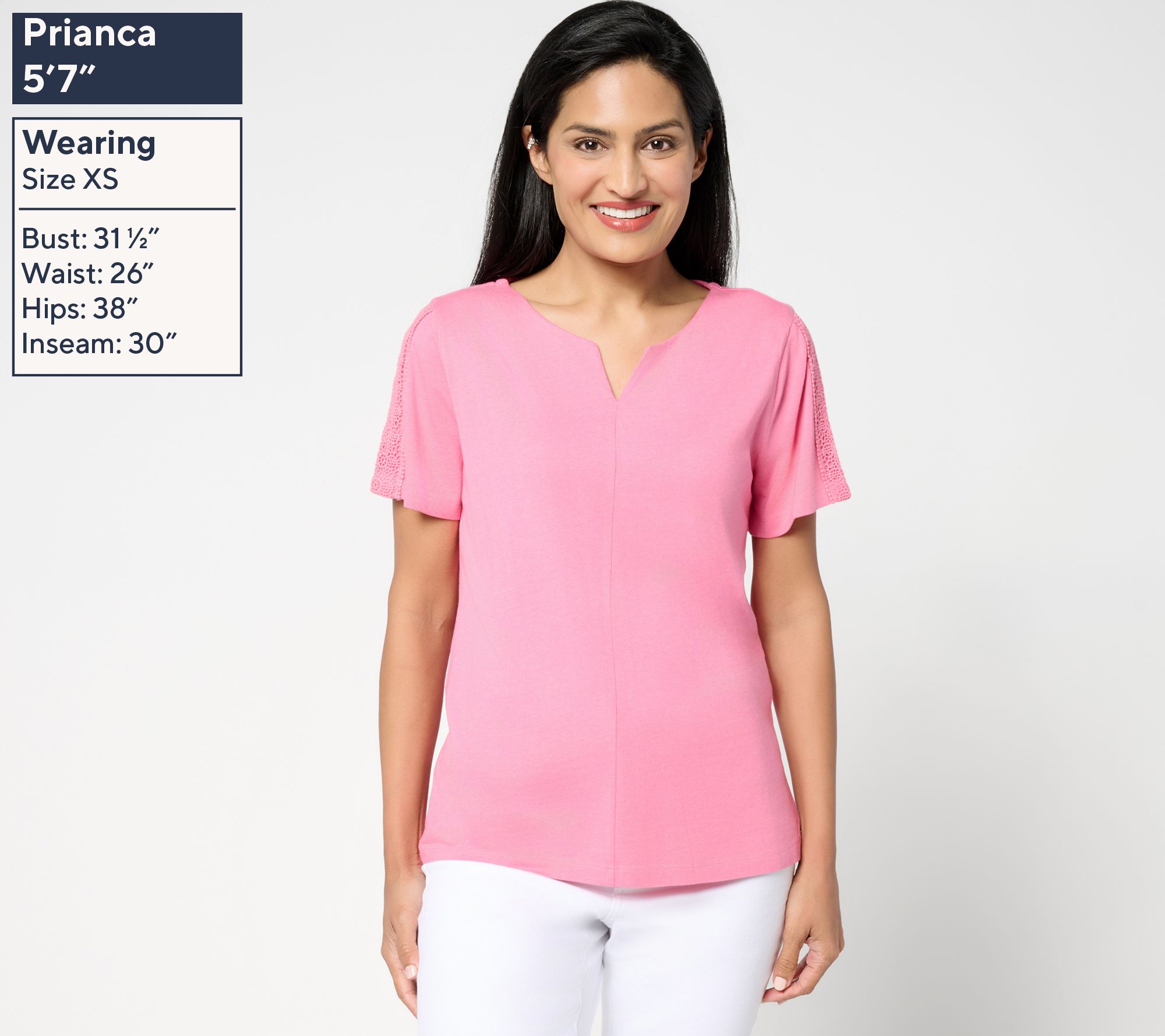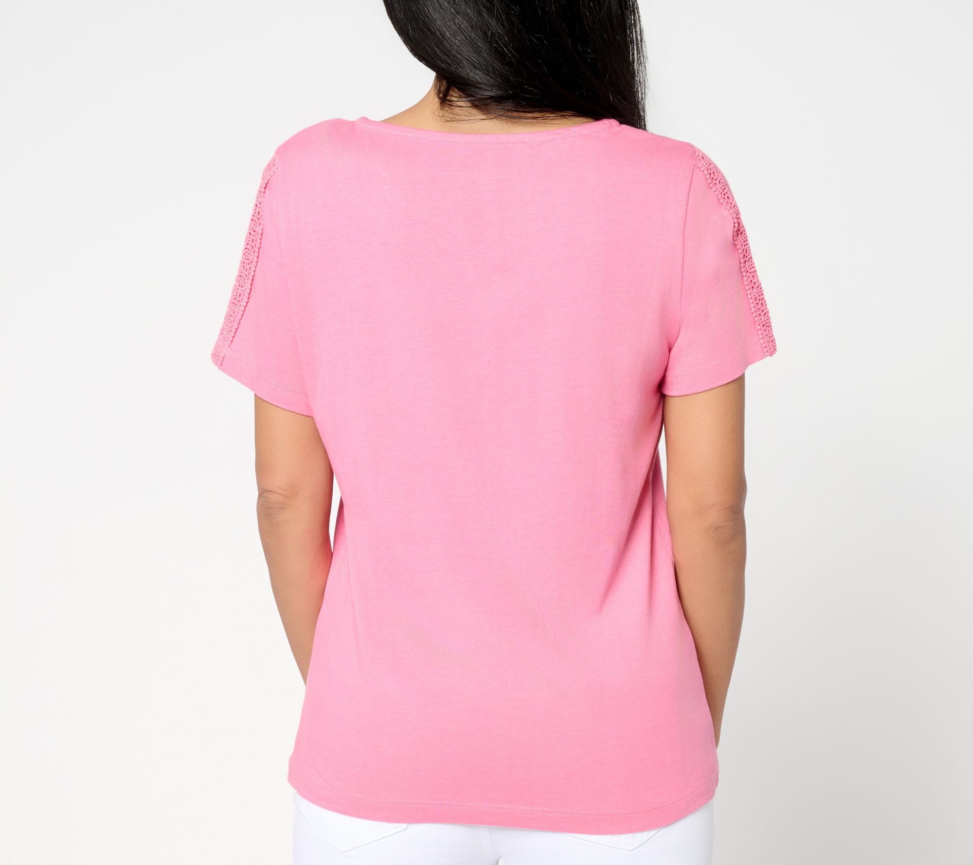 "As Is" BEAUTIFUL by Lawrence Zarian Short Sleeve Knit Top w/Lace