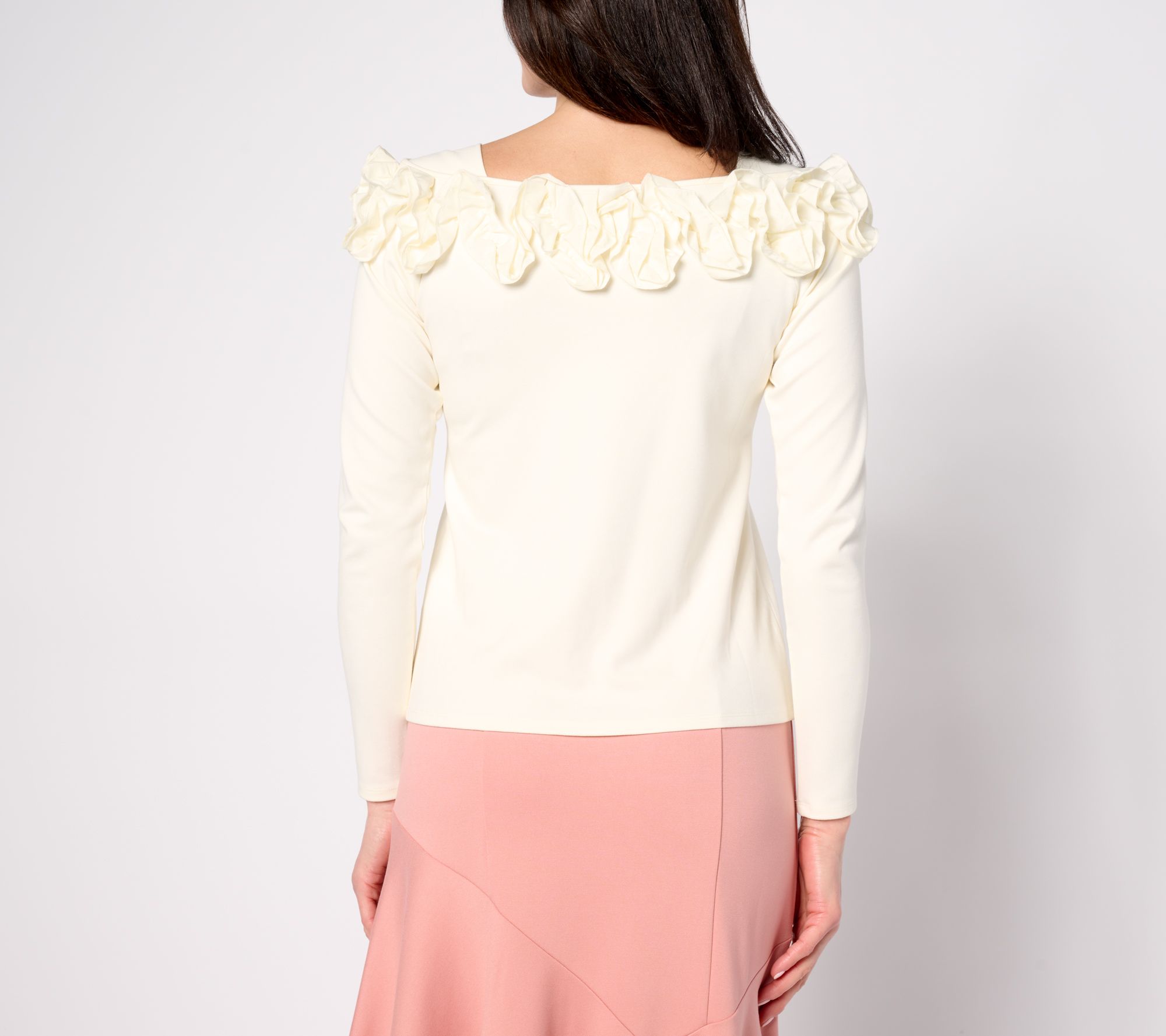 Whether you want to charm the room or just your dining companion, a little drama at the neckline never hurts. In a silky, feel-good ponte knit, this top is an elevated substitute for the usual tees and tunics -- but just as effortless to pair with a variety of pants and skirts. From BEAUTIFUL by Lawrence Zarian.