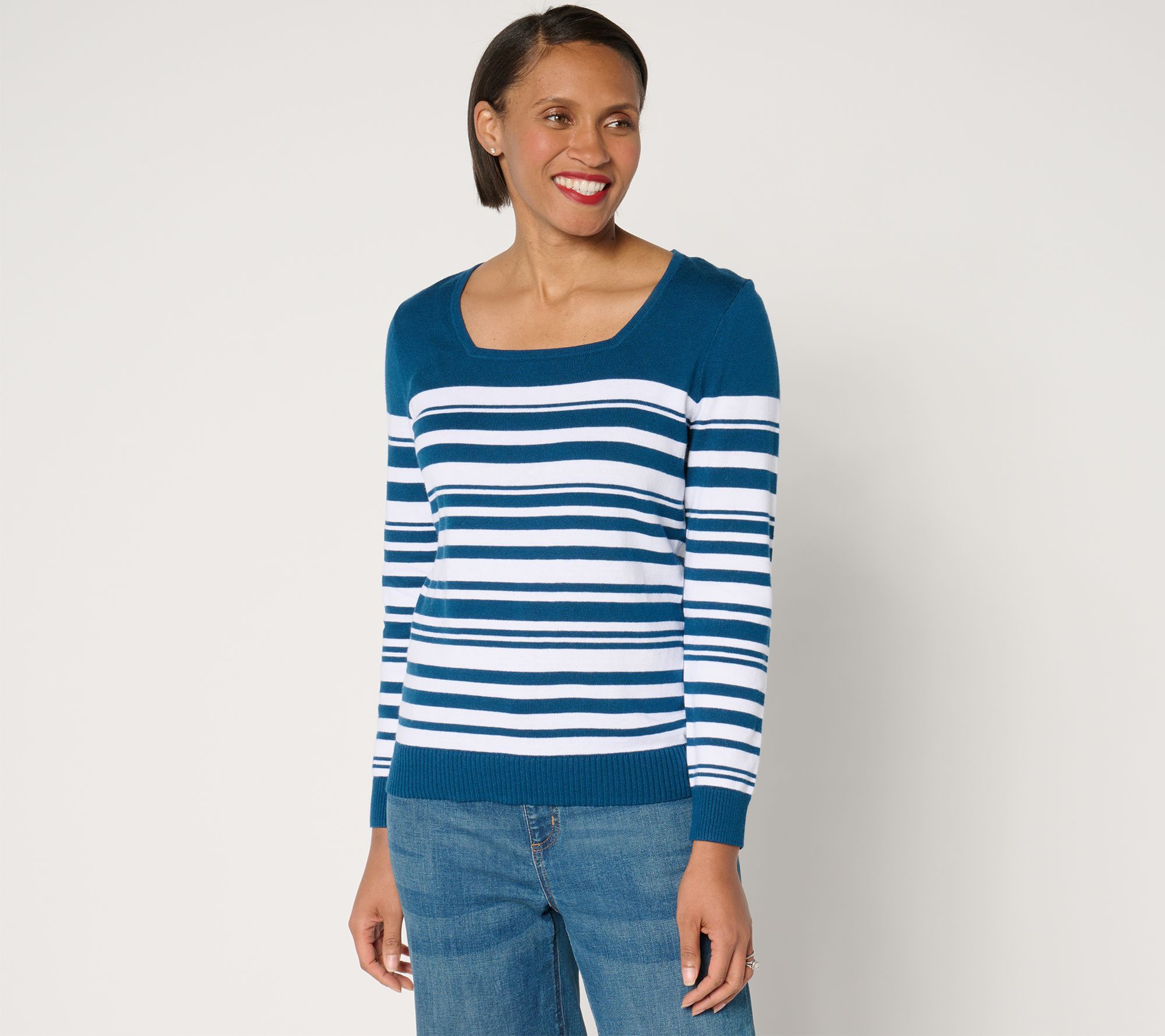 "As Is" BEAUTIFUL by Lawrence Zarian Square Neck Striped Sweater