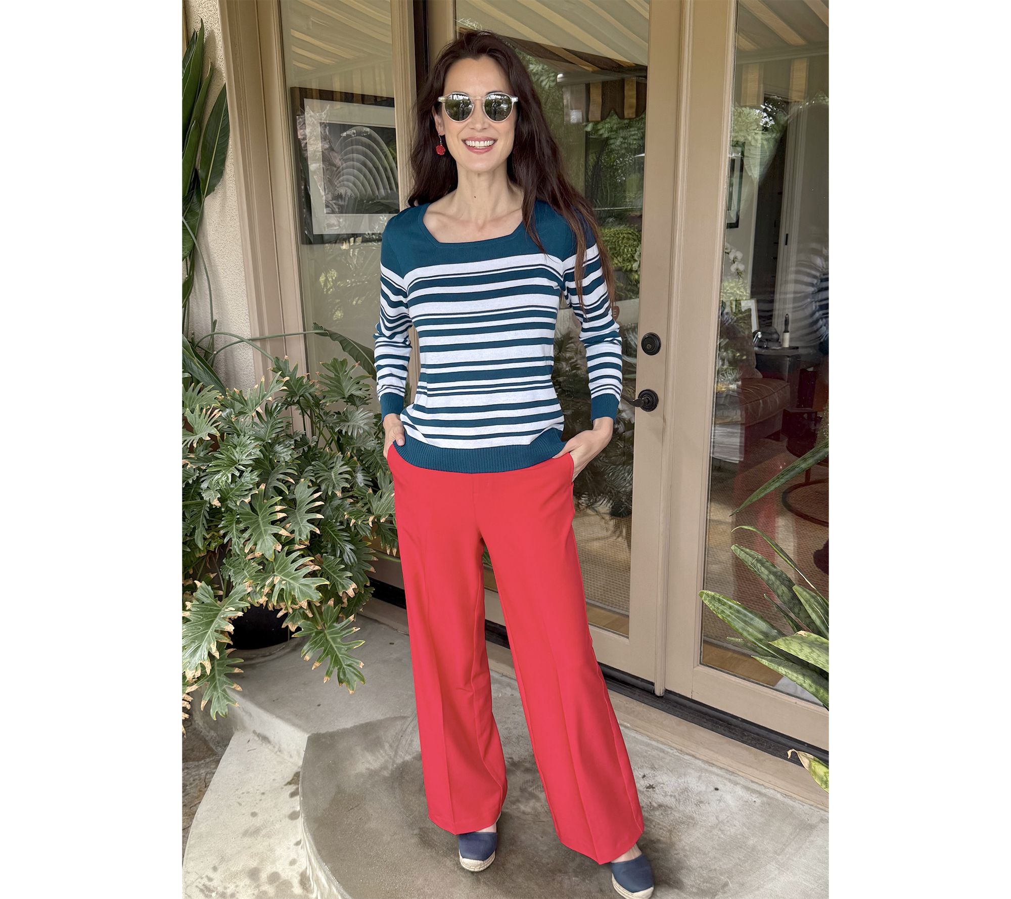 Why save style for special occasions? This BEAUTIFUL by Lawrence Zarian square-neck striped sweater offers a chic yet everyday elegance. Its smooth jersey tubular finish around the neckline and 2x2 flat back rib at the hem and sleeve opening make it a versatile piece for pairing with jeans, skirts, or wide-leg trousers. From BEAUTIFUL by Lawrence Zarian.