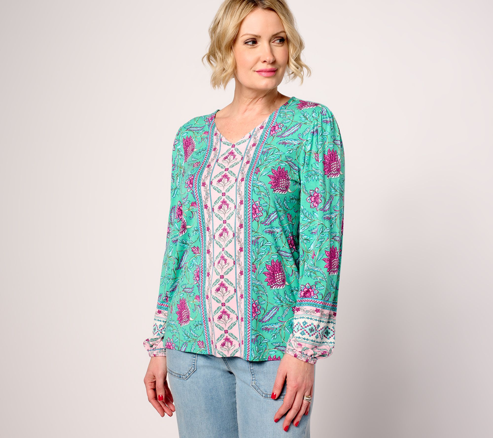 Embrace the bold style and charming personality of this standout blouse, complete with an eye-catching border design for a fabulous flourish. From Belle by Kim Gravel.