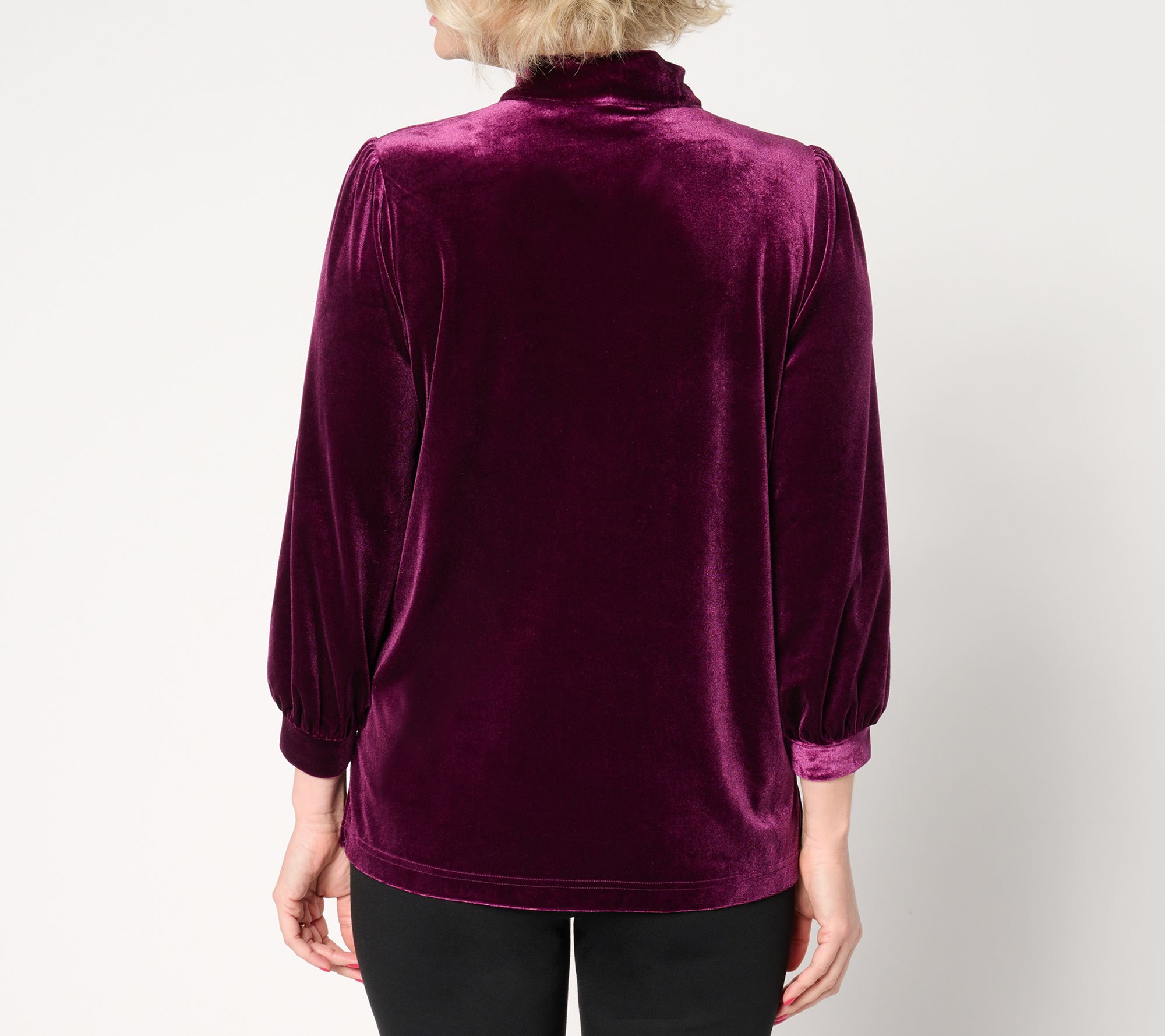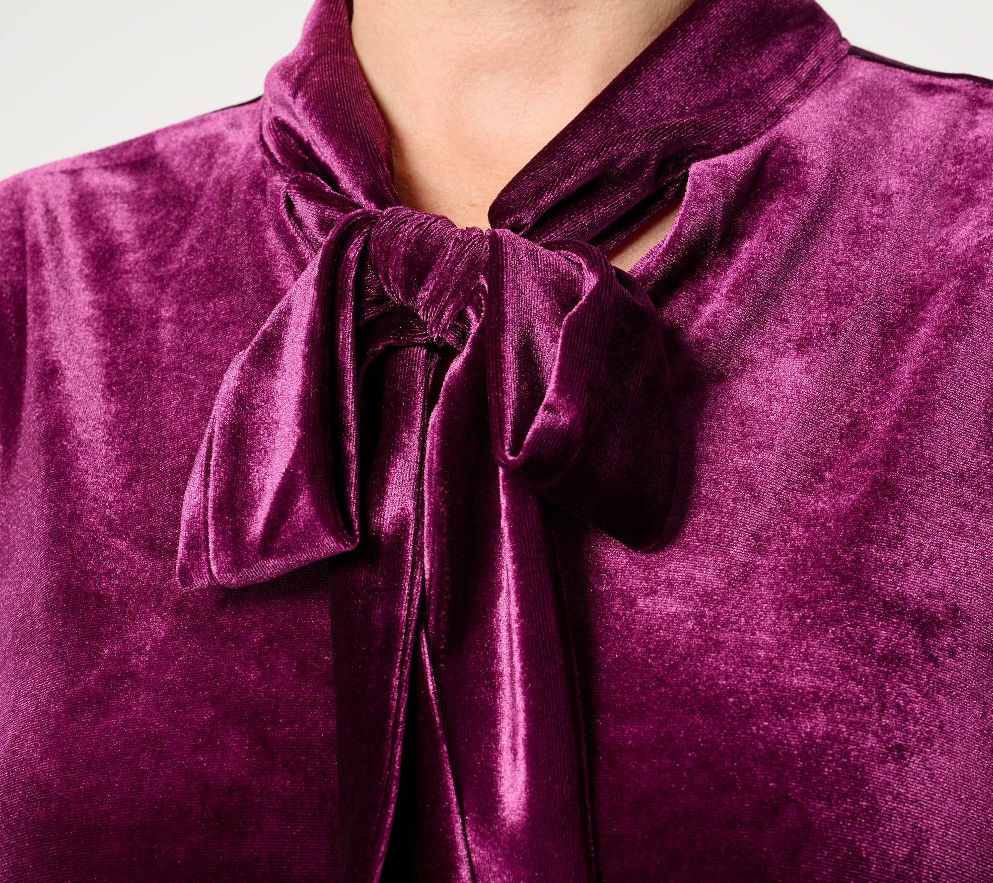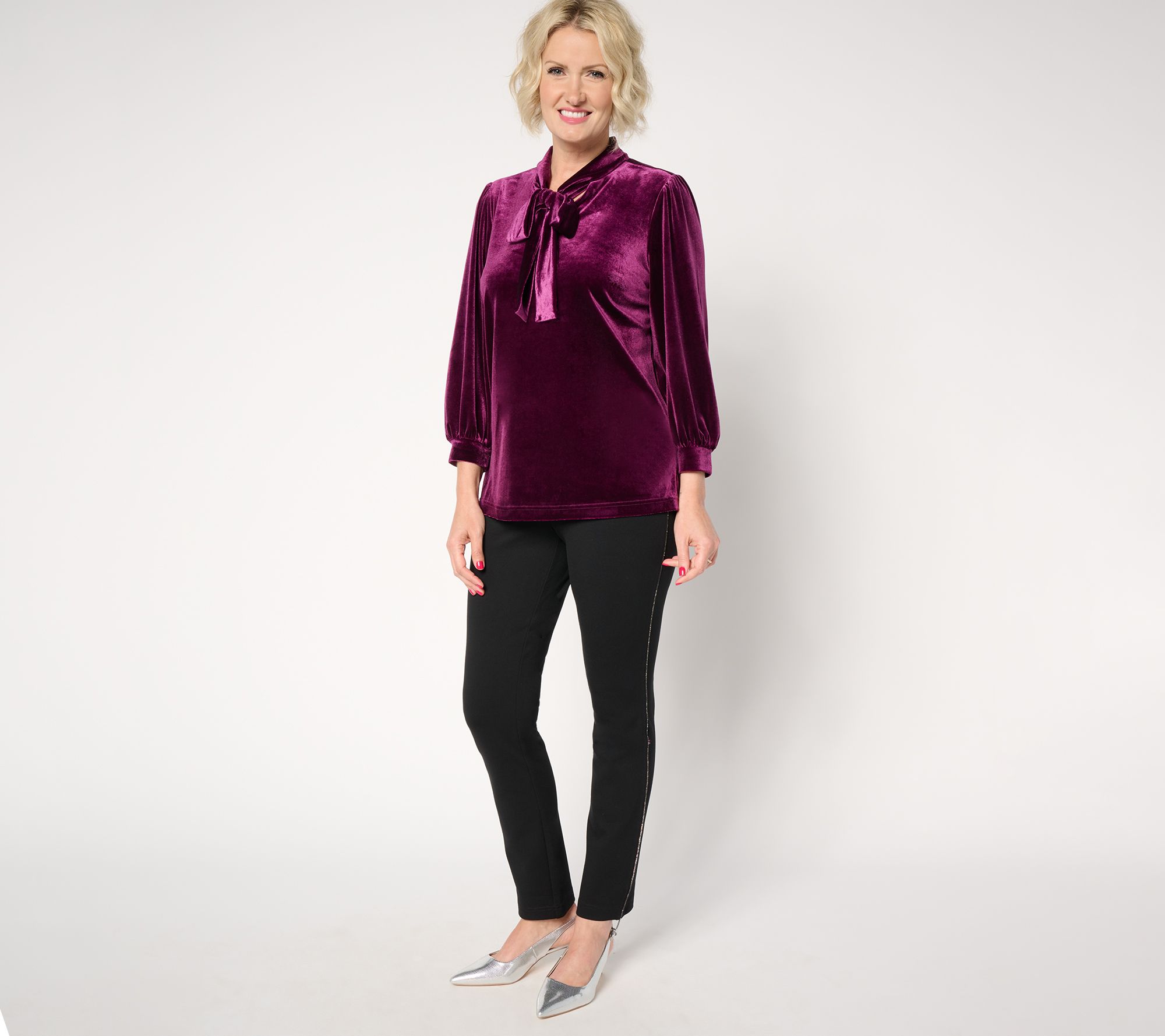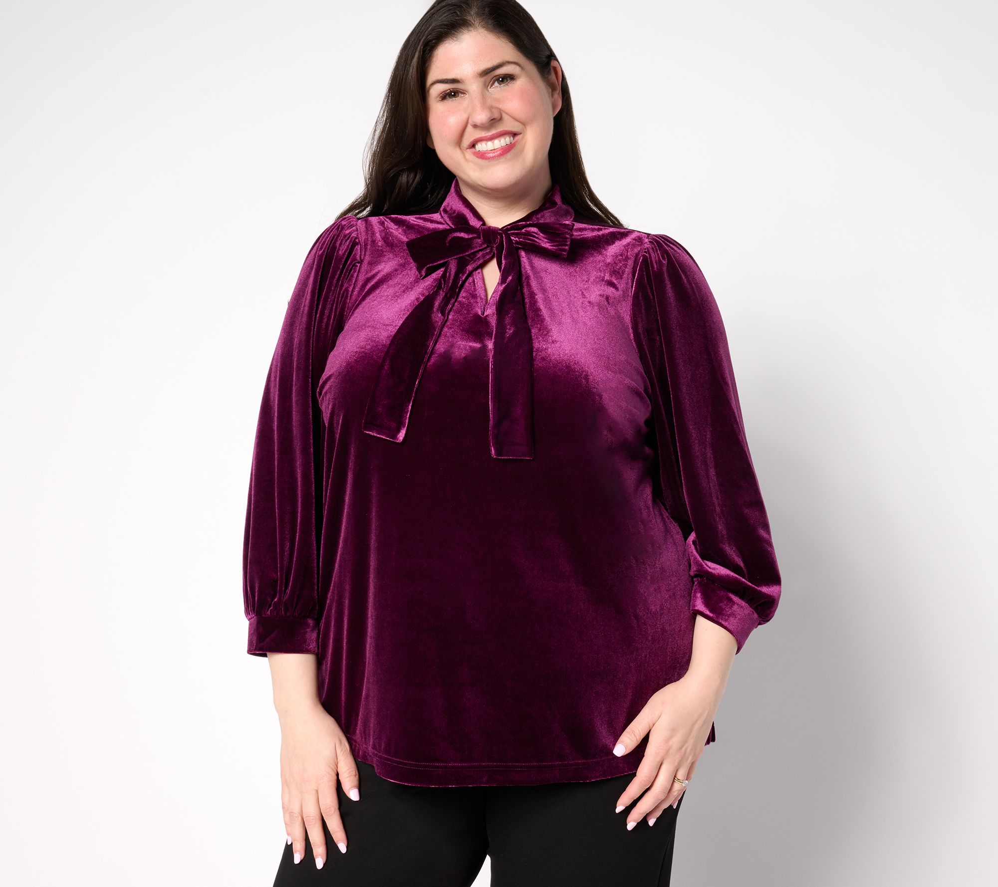 We've got a Bellevet crush on this blouson-sleeve top. Wear it to the office holiday party or a festive Friendsgiving with leggings and a pair of pumps. The neck tie detail adds a sophisticated finishing touch. From Belle by Kim Gravel.