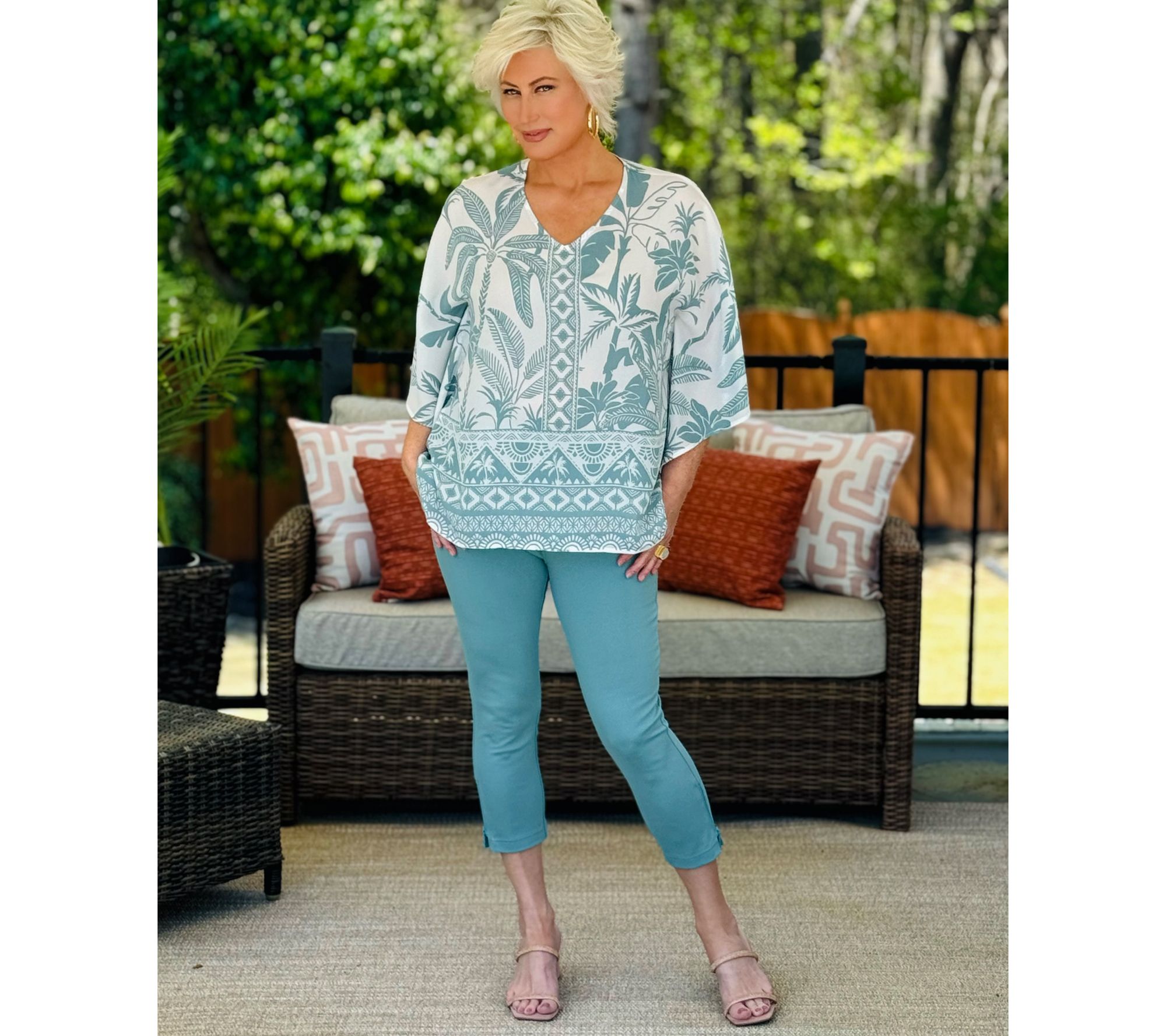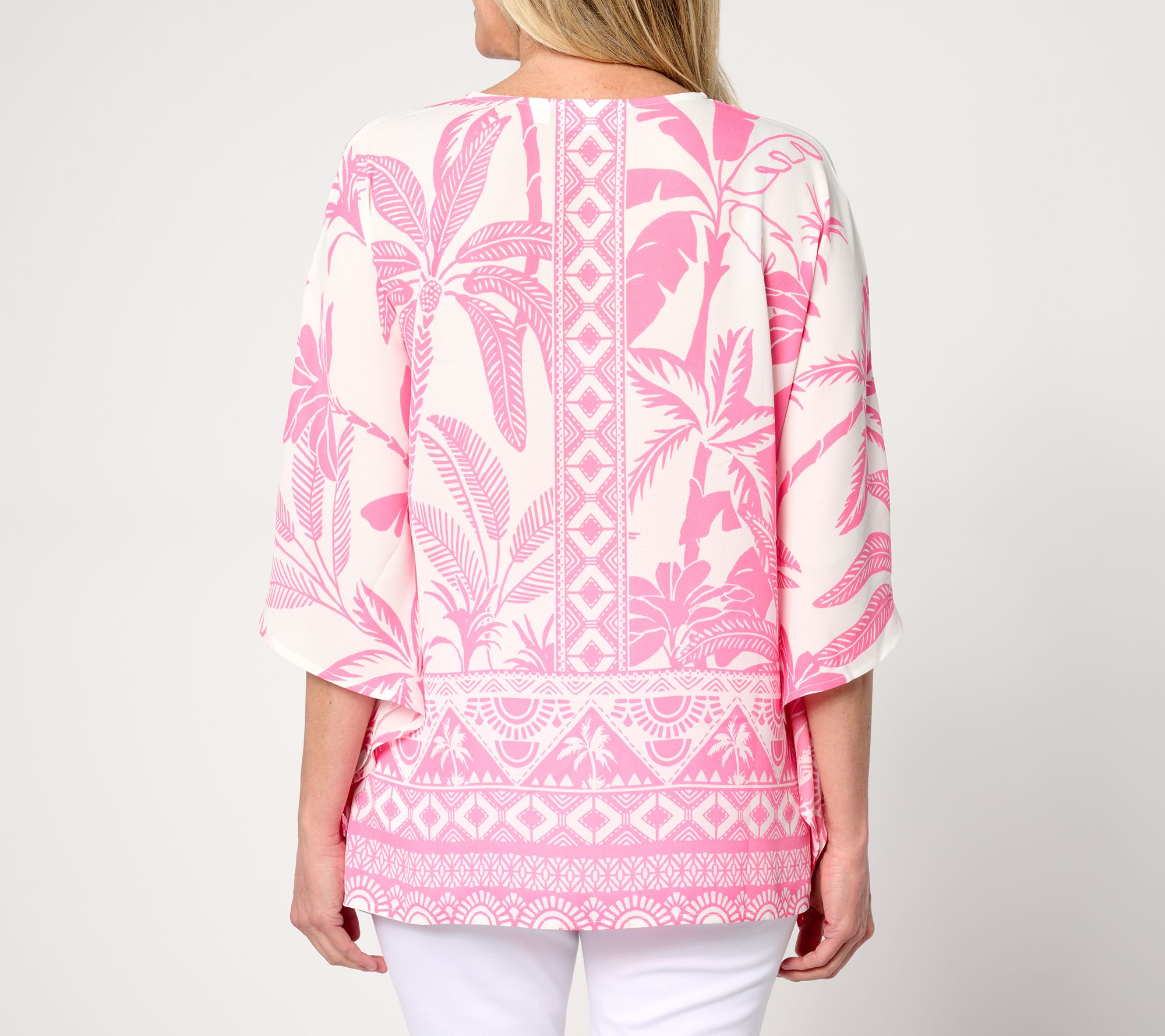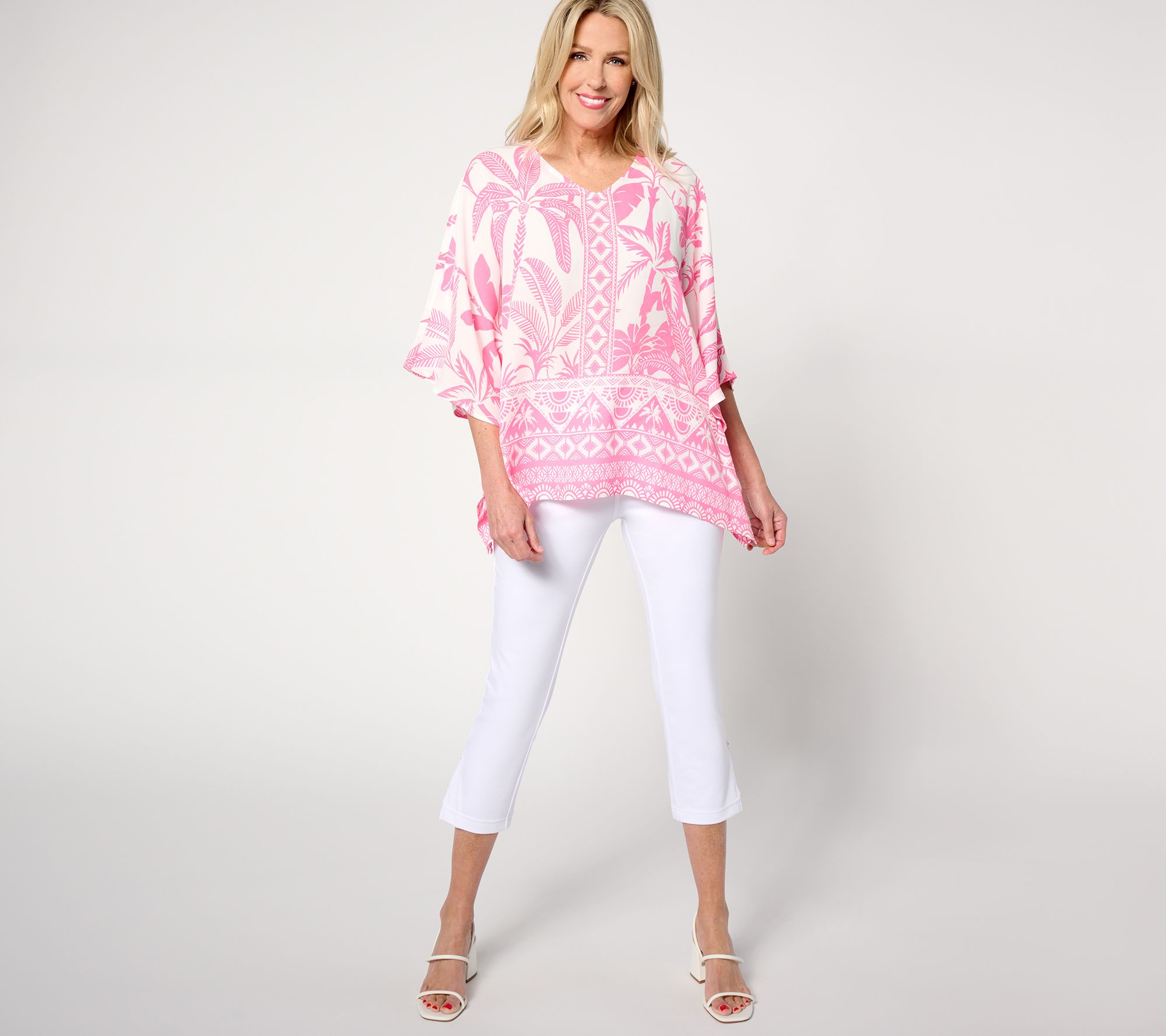 Vaca-ready, this paradise poncho pairs perfectly with anything from crisp white capris to sweet shorts. Dress it up with some favorite accessories. From Belle by Kim Gravel.
