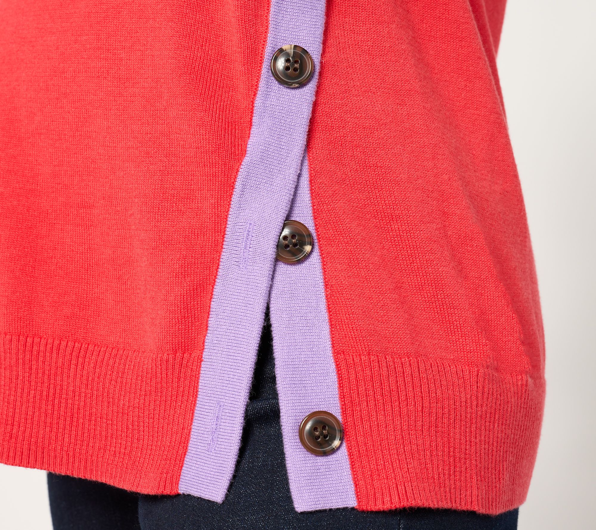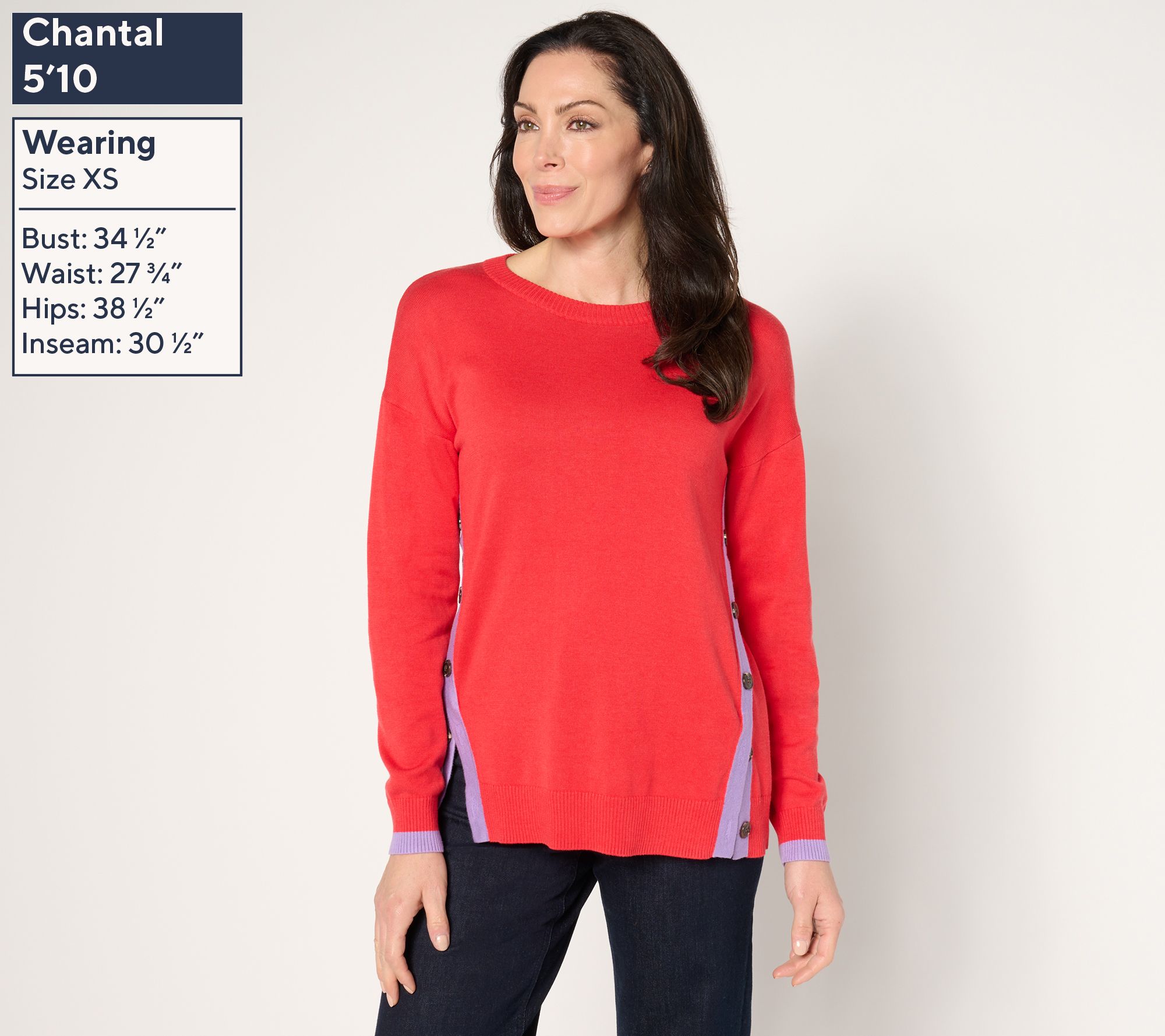 Your bright side is showing! Embrace positivity -- and flexible comfort -- in this cheerful side-button sweater, an equally pretty pick for appointments or your social life. From Belle by Kim Gravel.