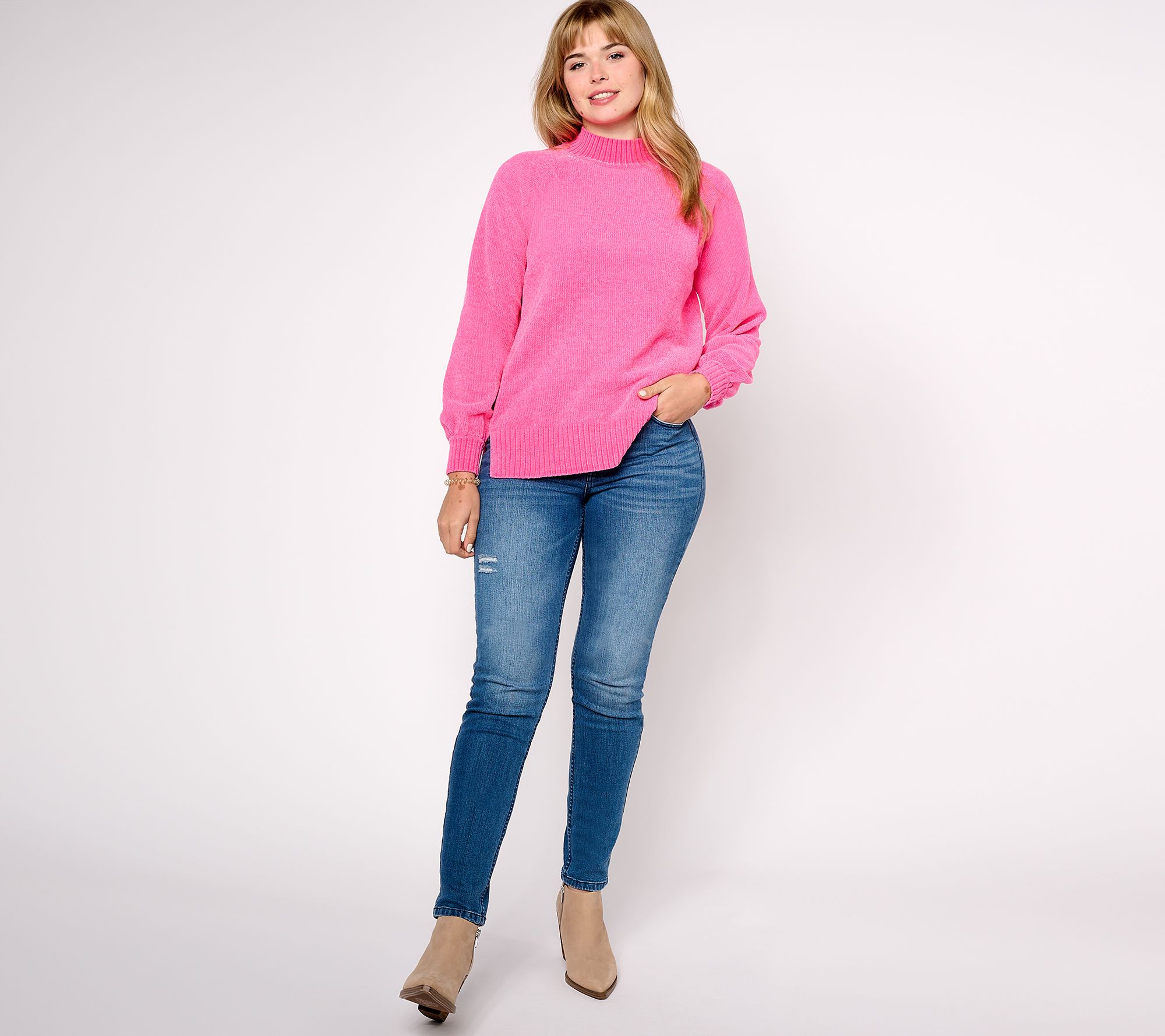 "As Is" Belle by Kim Gravel Chenille Raglan Mock Neck Sweater